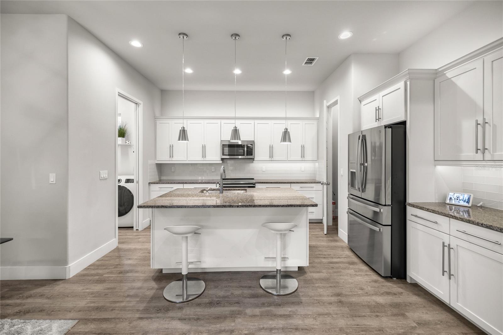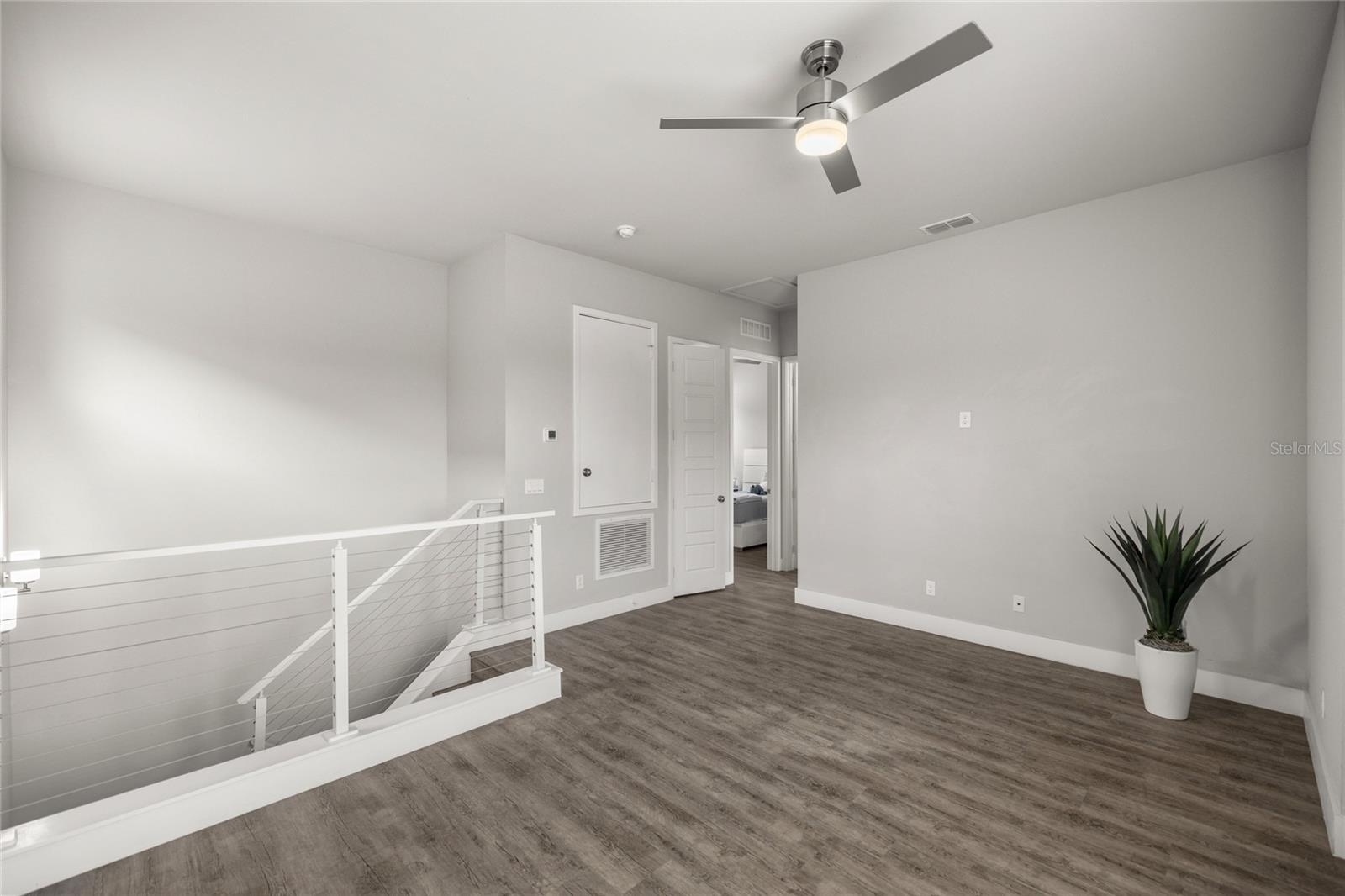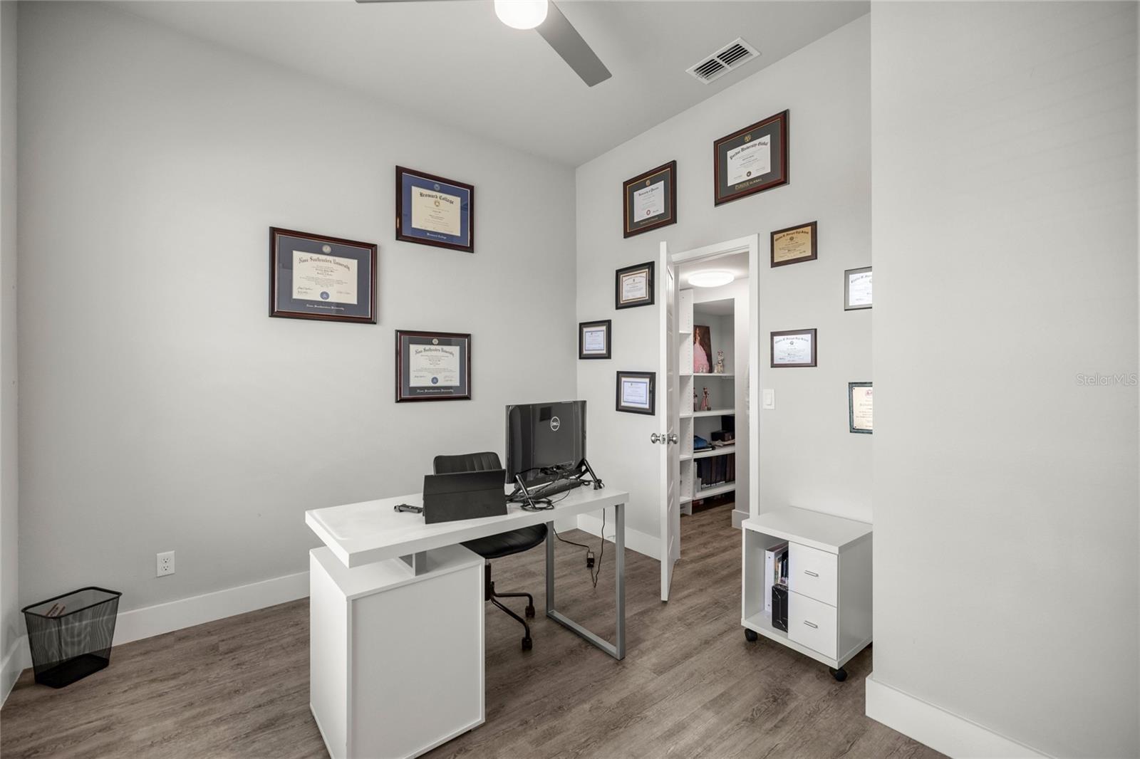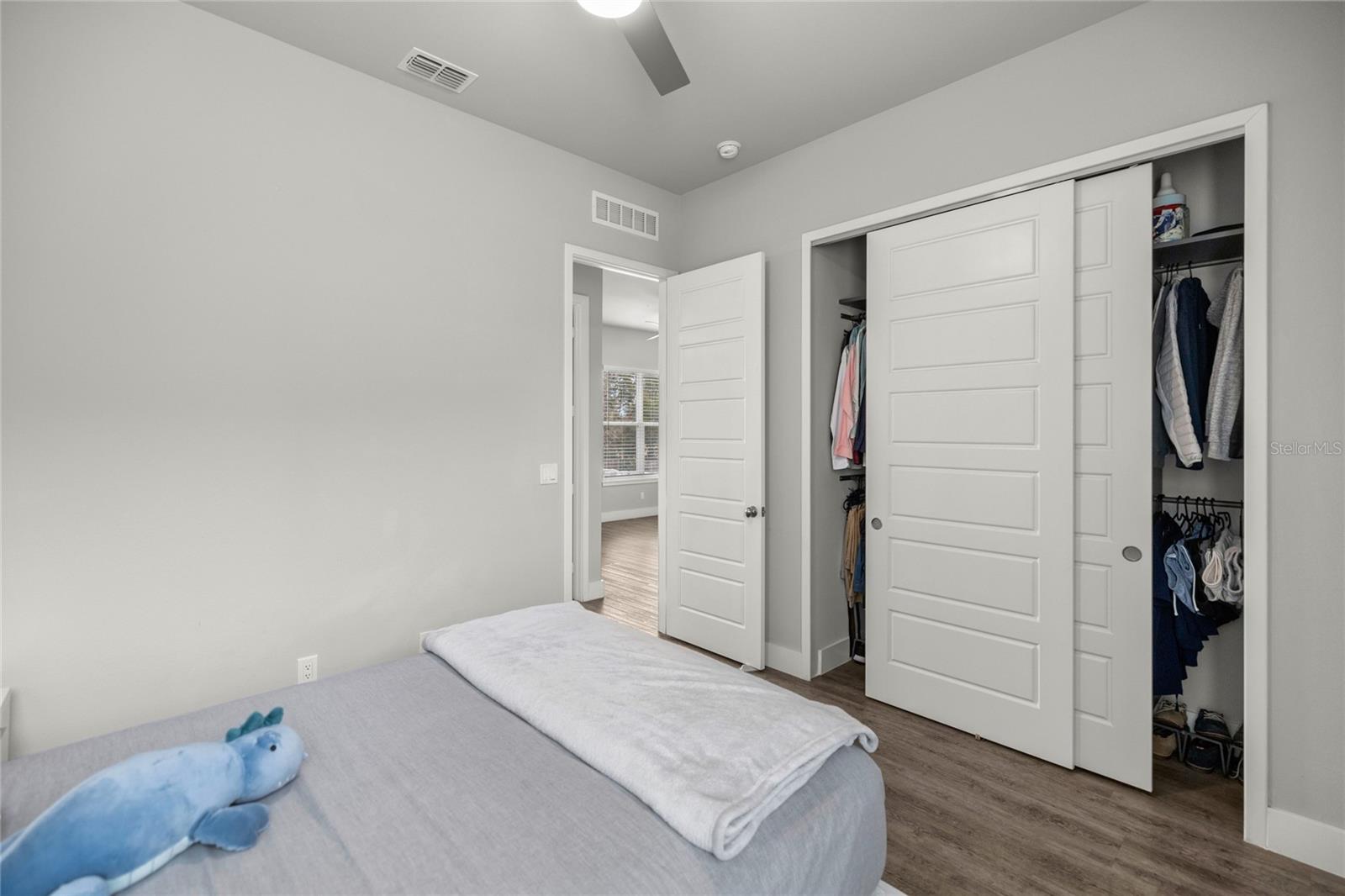 Experience modern living at its finest in the sought-after Grand Preserve community with this Pearl floor plan built by Skobel Homes. This Energy Star-certified 4-bedroom, 2.5-bath home is designed for efficiency and comfort, featuring spray foam attic insulation, a tankless gas water heater, and vinyl low-e insulated windows. The property is fully equipped as a Smart Home, with app-controlled doors, thermostats, alarms, and lighting for both floors, all voice-recognition enabled. The primary bedroom and a study are conveniently located on the main floor, while two additional bedrooms, a loft, and a full bath are on the upper level. The great room features an 11-inch tray ceiling with crown molding, adding an elegant touch to the spacious design. LVP flooring throughout the home ensures durability and comfort year-round, with no carpet present. A two-car garage offers sheltered parking, complemented by ample street parking for guests. The screened porch, equipped with sliding screen doors, provides additional functionality. The HOA fee includes lawn maintenance, high-speed fiber-optic internet, and full cable TV service with DVR, offering a low-maintenance lifestyle. Community amenities include a clubhouse, pool, workout room, playground, paved jogging trail, and Clay Electric services. This meticulously maintained home is better than new, combining luxury, efficiency, and a vibrant community atmosphere—an opportunity you won’t want to miss.