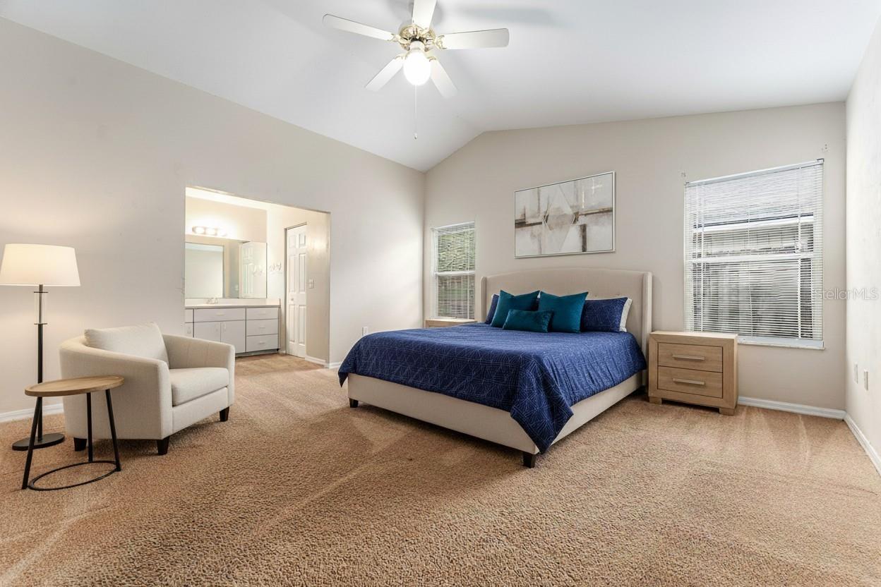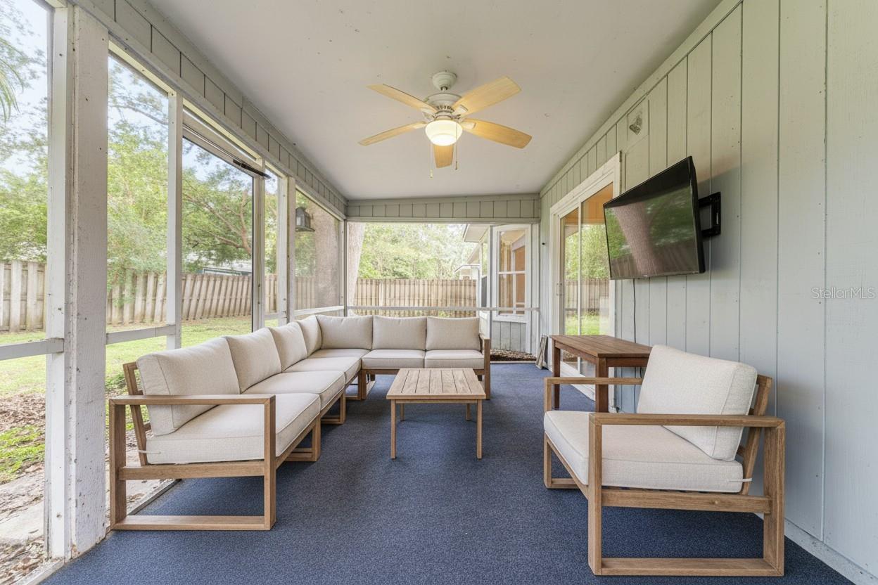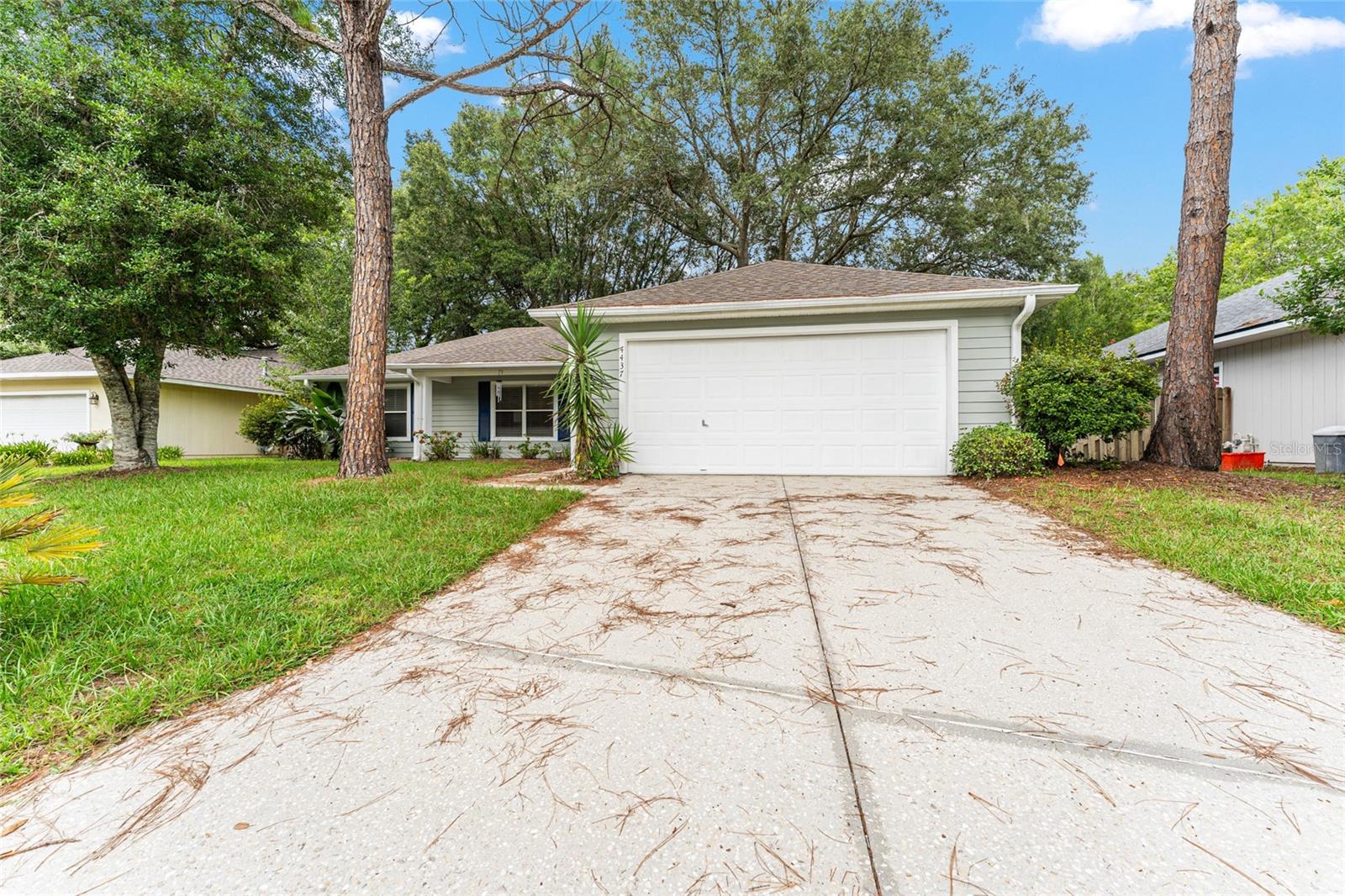 Come on and see me, located on a cul de sac. As you walk into the home, you are greeted with a large great room with patio doors leading out to a screen covered patio, over looking a large backyard. Inside the split floor plan ensures privacy, while the additional bedrooms offer flexibility for guests or a home office. You'll love the spacious primary suite featuring a walk-in closet, double vanity sinks, and separate shower area. There is a large eat in kitchen with a breakfast nook overlooking the backyard, brand new stove, microwave and fridge. Loys of cabinet space for storage. Living in Capri is a lifestyle. Enjoy access to a resort-style pool and hot tub, freshly refinished tennis and basketball courts, a gym, and a clubhouse available for private events. Wander the tree-lined walking trails or relax knowing the HOA takes care of neighborhood upkeep, including leaf and debris clearing from the roads. And all of this comes with a surprisingly low monthly fee of $94. Conveniently located just off NW 34th Street, roof is 2017, A/C is 2021 and water heater is brand new. Some photos are virtually staged.