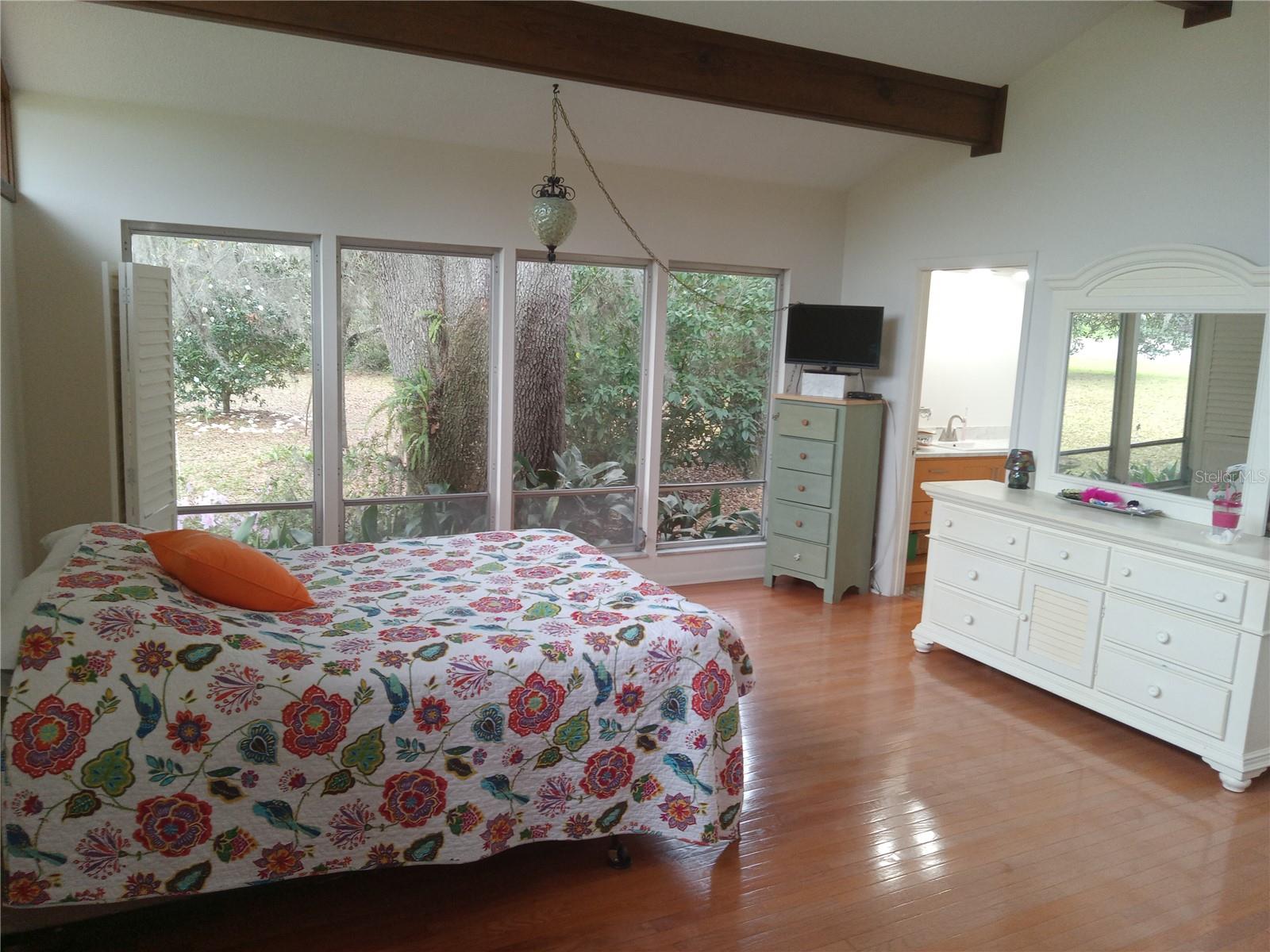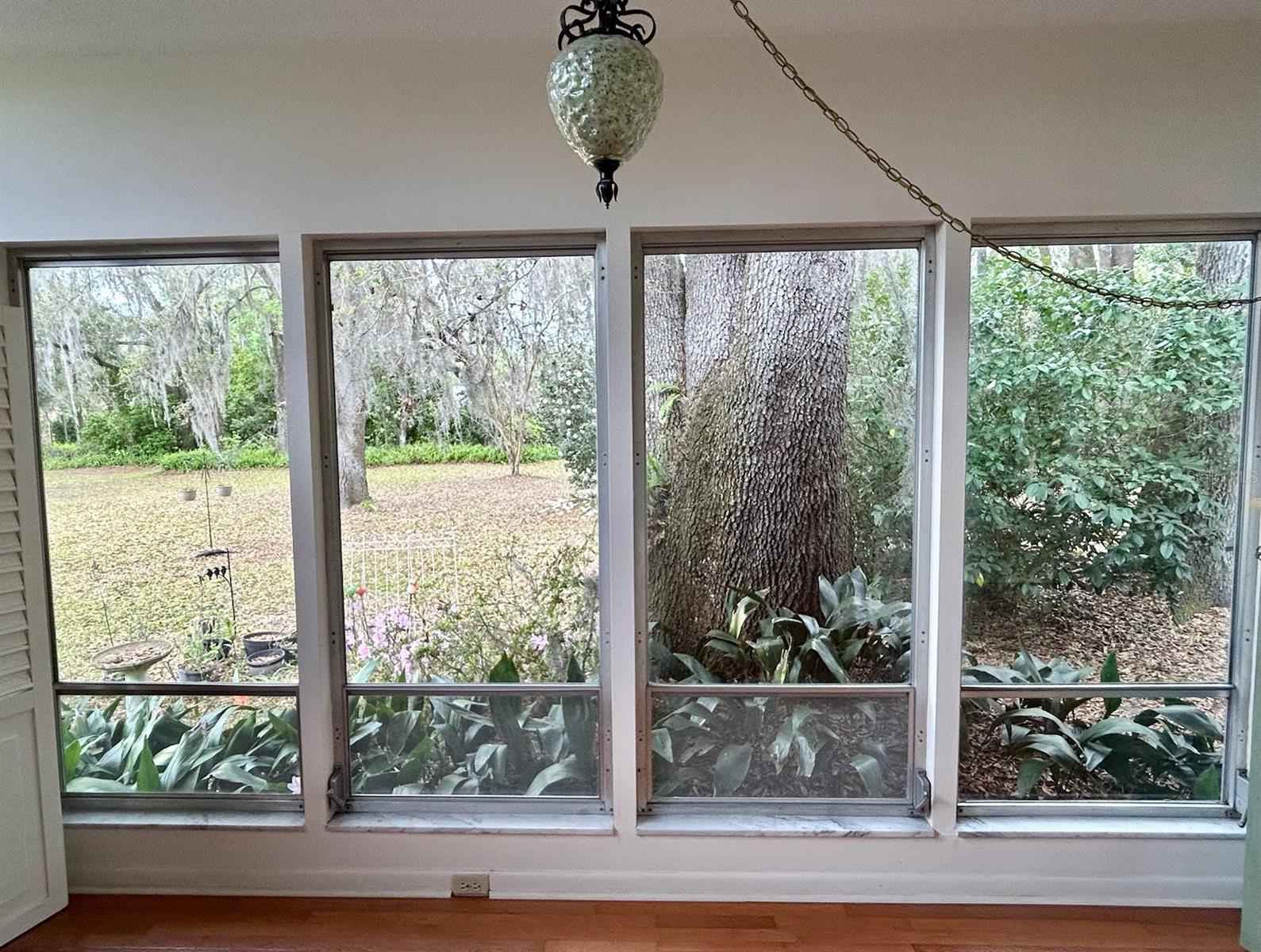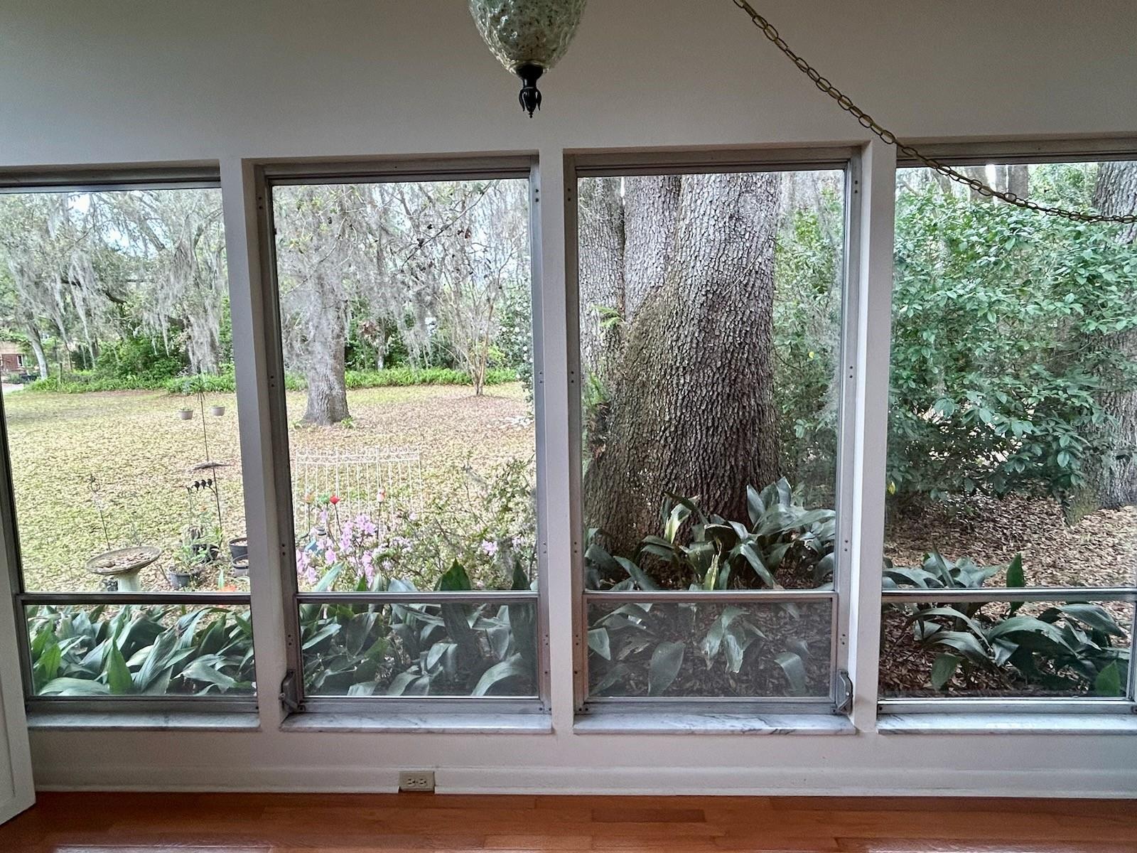 Gorgeous private custom home with cathedral ceilings on a fenced one-acre lot with granddaddy oaks on a cul-de-sac. This home has great natural light with floor to ceiling windows in every room. There is a large brick fireplace in the family room for those chilly nights at home. The family room has a huge slider that opens to a private patio with mature landscaping. It is a perfect area to unwind or for barbecuing on sultry summer afternoons. There is a split bedroom plan so privacy is always available. The master bedroom is vaulted with beams and high windows for you to enjoy the moon rises on clear nights. There is a hobby room with a private entrance that can be used as a 4th bedroom. The living room overlooks the garden in the back yard. The formal dining room is a fantastic place to entertain your special guest. This home is located seconds to North Florida Regional Hospital, I-75 and minutes to UF and downtown. Excellent schools. Fiber optic cable available. There are no HOA restrictions or fees so you will have plenty of room to park your RV or boat and add an outbuilding as per your needs. Superior elevation. Great investment opportunity.