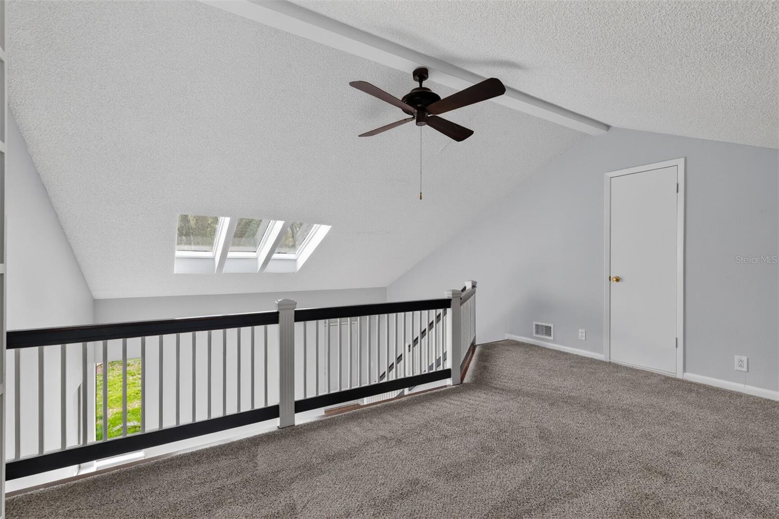 Tucked among mature trees in one of Gainesville’s most convenient locations, this thoughtfully designed 2 bedroom, 2 bath Villa offers the perfect blend of low-maintenance living and inviting character. Ideal for downsizers, busy professionals, or anyone seeking comfort without the upkeep; this home delivers both functionality and charm. Natural light is a defining feature throughout. Vaulted ceilings, skylights, and a bright solarium style dining space create an airy feel from the moment you enter. The floor to ceiling windows in the dining area are a plant lover's dream! The spacious living room flows effortlessly into a cozy family room featuring a fireplace, architectural wood ceiling, custom built-ins, and glass doors that open to a private patio. It is an inviting space for relaxing evenings or casual entertaining and offers easy access to the kitchen. The primary suite offers both privacy and convenience with direct patio access, a full ensuite bath, walk-in closet plus an additional closet, and serene views of the landscaped backyard. The second bedroom and full guest bath are downstairs, as well. Upstairs, a versatile loft provides flexible space for a home office, reading nook, or guest overflow. Find convenience in the inside laundry area and plenty of storage in the one car garage. Fresh interior paint and carpet enhance the home’s clean, move-in ready feel. Relax on the weekends by the community pool or catch game of pickleball at the courts. All included in your low monthly HOA. Located just minutes from the University of Florida, major medical facilities, shopping, dining, athletic centers, and top schools, this home combines quiet residential living with exceptional accessibility. The nearby development of a new ballet school adds another exciting cultural amenity to the area. Whether you are simplifying your lifestyle or establishing roots near Gainesville’s vibrant university and medical community, this Villa offers it all. All information taken from the tax record, and while deemed reliable, cannot be guaranteed.