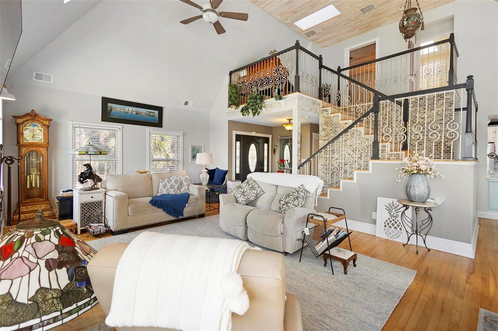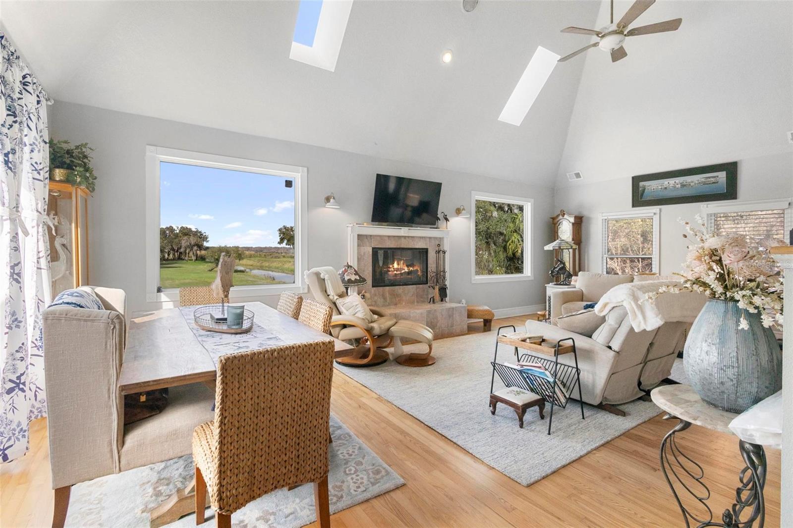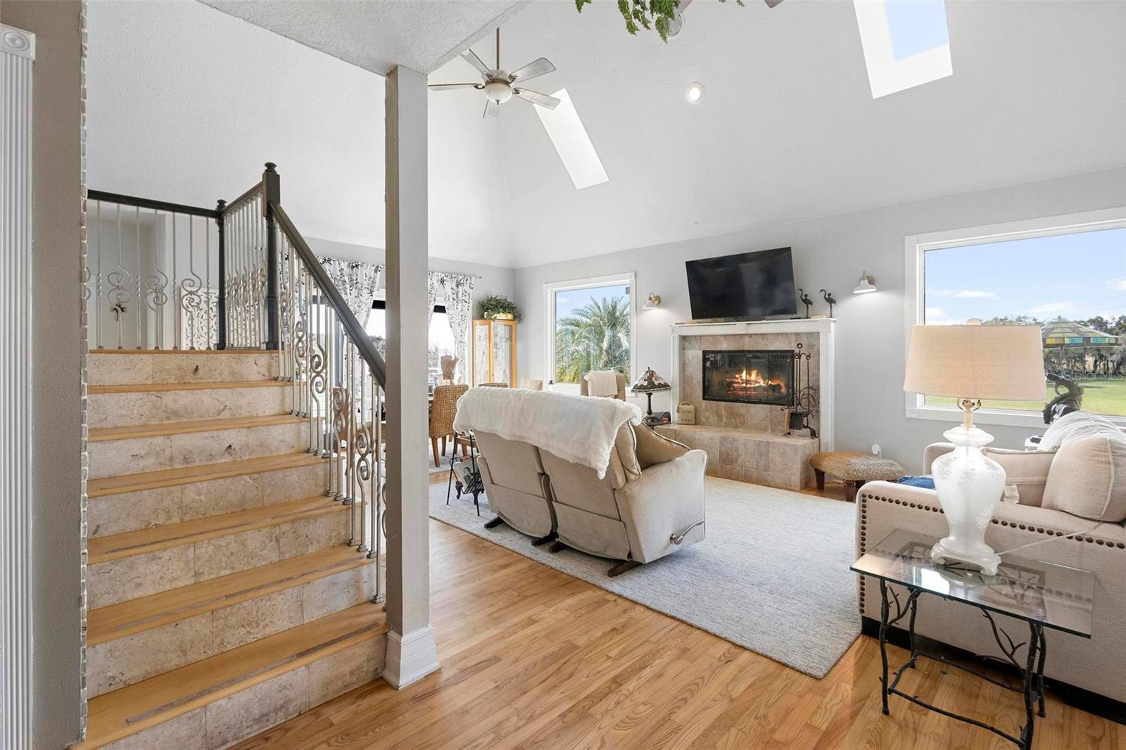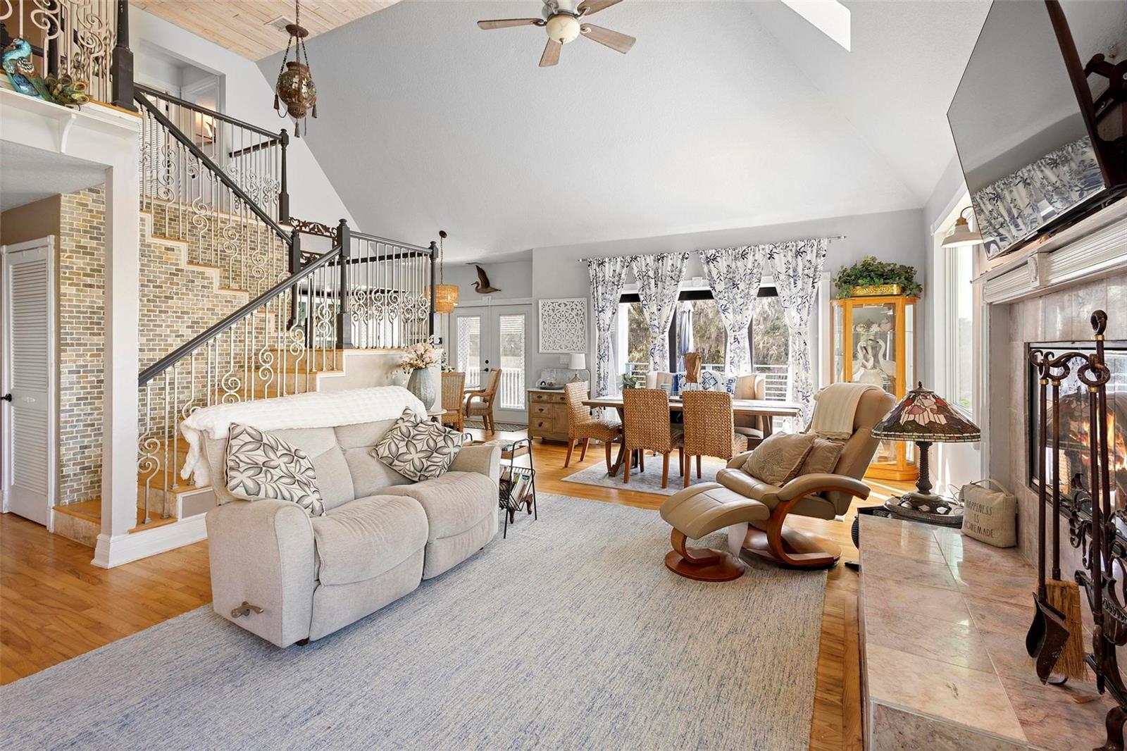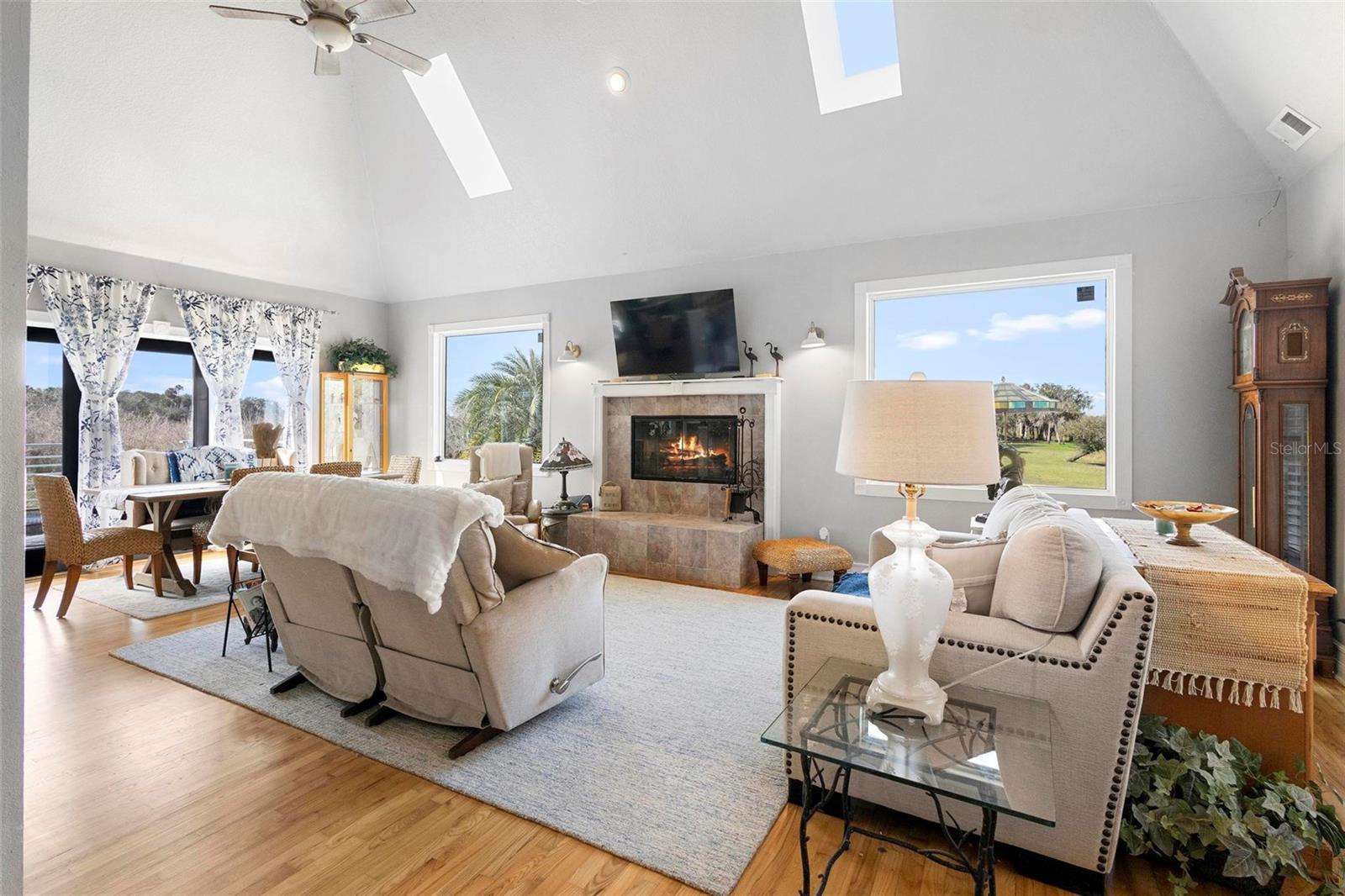 Experience true Florida living in this secluded gated custom built “Key West” architectural style pool home on “The Point” 150’ canal front home with riparian rights is a unique property with direct access to the St. Johns River and water views on three (3) sides, surrounded by county owned, never to be built on islands. Enjoy the breeze as you sit on the river and watch the boats go by. No expense spared when building this home. Extras include Pilings drilled 40 ft down into ground for structural integrity, foam backed vinyl siding for extra insulation a 50 year metal roof, tongue and groove wood ceilings on porches, extensive use of crown molding and tall baseboards throughout, double pane windows, Hurricane resistant french doors off dining and Pella french doors off living. just to name a few. Enjoy beautiful sunsets/relax on one of the three (3) outdoor porches with an outdoor summer kitchen and bath overlooking the open saltwater pool with optional therapy jets. Oversized carport 2-3 car is located under home (ceilings upgraded to metal for easy maintenance) Cargo lift elevator installed to bring items upstairs (up to 900 lb weight capacity) Upon entering the home you’ll be greeted with a 25’+- ceiling in living area, marble woodburning fireplace with raised hearth for seating, real Hardwood floors and custom wrought Iron staircase. Light and bright kitchen with ample cabinet space, panty, quartz countertops and wood ceilings. Master bedroom suite and bath and laundry located on main floor with second and third bedrooms, bath and loft upstairs. Perfect home for entertaining and enjoying true Florida living. Two additional parcels being conveyed ID#'s 32-19-32-300-0220-0000, 32-19-32-300-013A- Property adjacent to the subject to the north (approx. 2 acres) is owned by Seminole County. See attachments for additional information and surveys.