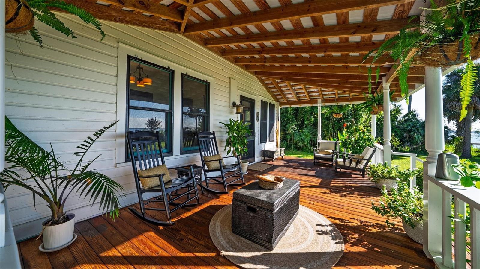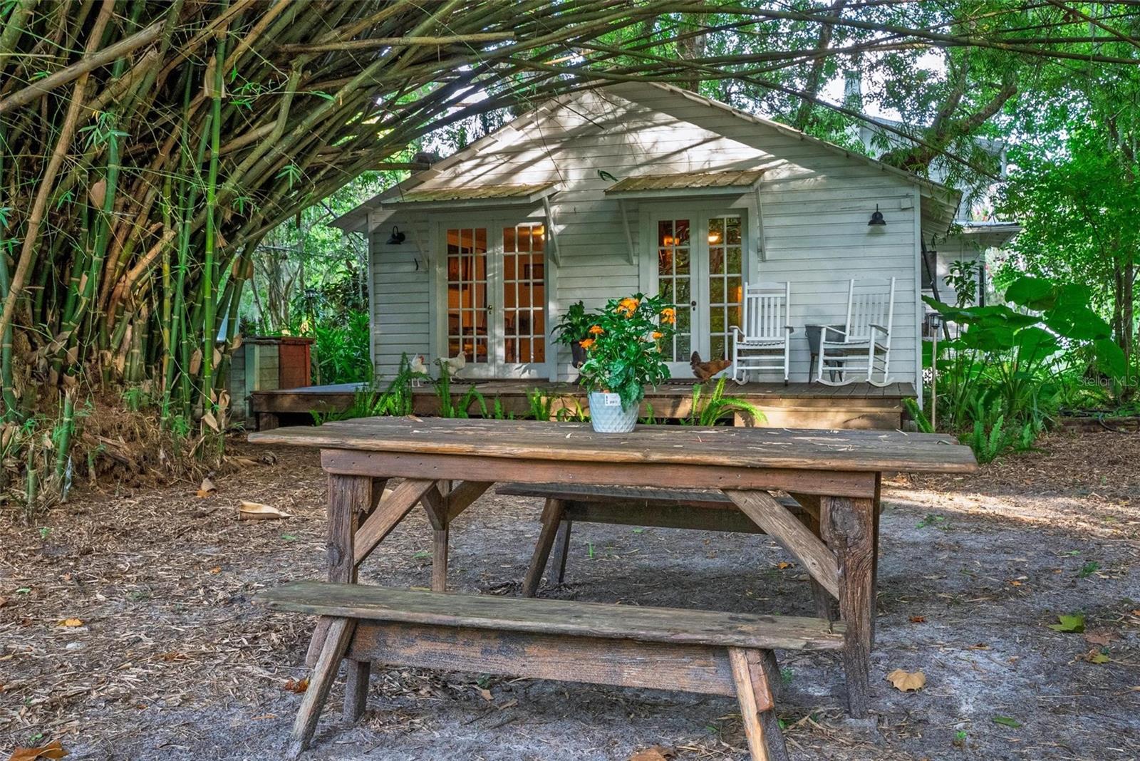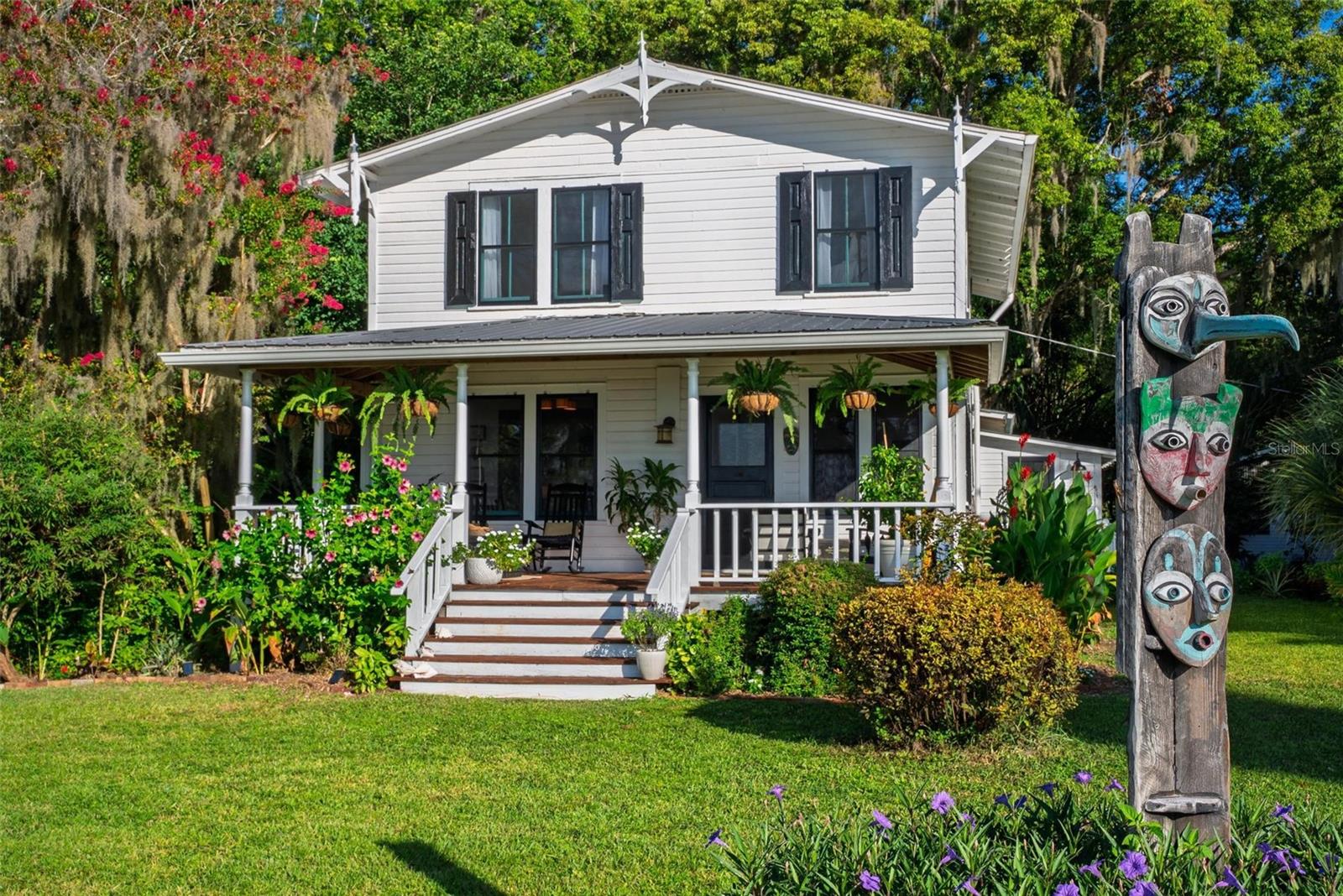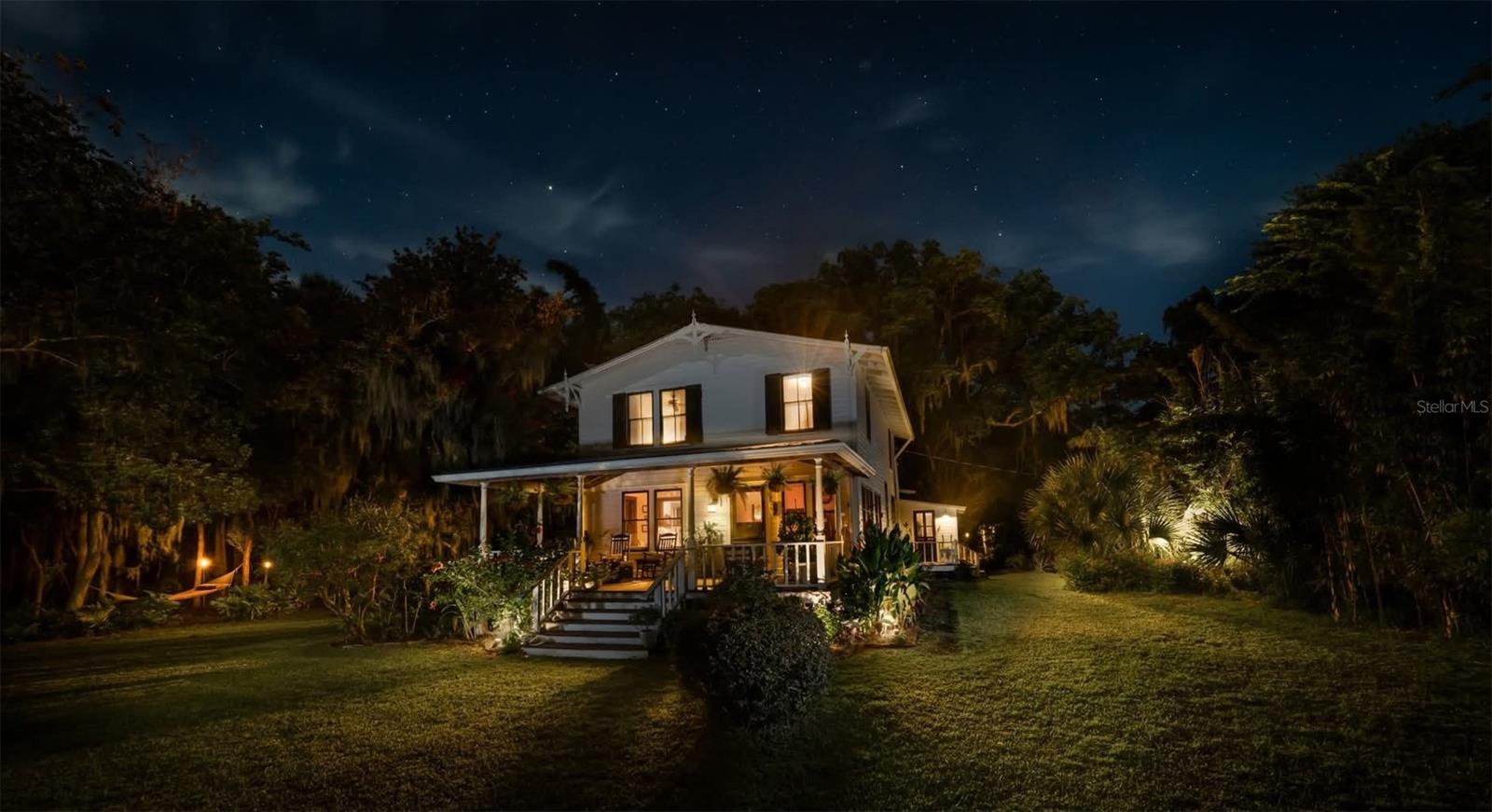 Named for the silvery shimmer of moonlight reflected across the water, “Moonwake”, is a true legacy property. Accessible by ferry or private boat, this turn-key, fully furnished estate offers complete privacy amid 6.9 acres of pristine, “Old Florida”. 5 bedrooms, 2 baths, and 2,146 sq. ft. of timeless character, including original heart pine floors, windows, doors and trim. The property also includes a separate 472 sq. ft. “Cook’s House” with a full kitchen, living area, private bedroom, loft, and bath. Modern updates blend seamlessly with historic charm: remodeled kitchen and baths, high-end fixtures and appliances including a 36” Wolf stove, 52-bottle wine cooler, and on-demand hot water in both homes. 240-ft private dock with two-slip boathouse, 960 sq. ft. drive-in workshop with 110 & 220 service, chicken coop, paddock, and fenced 30’x60’ garden. Mature fruit trees, bamboo groves, and abundant wildlife.