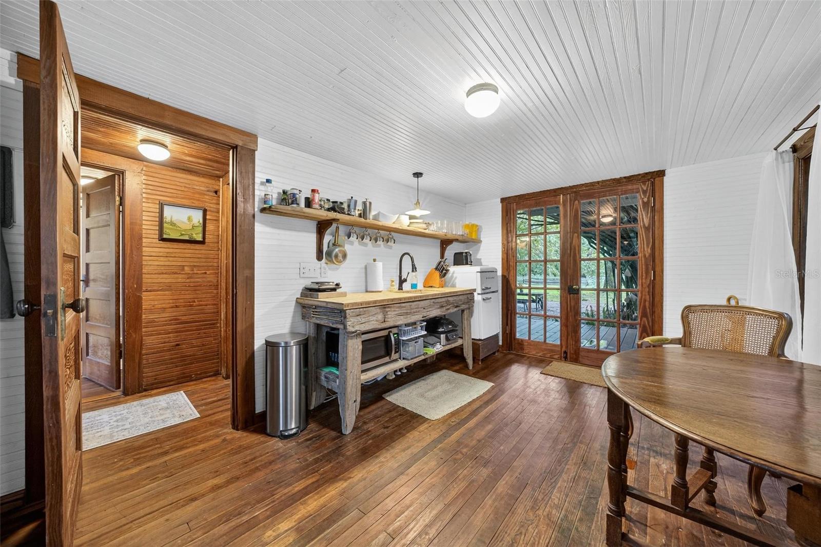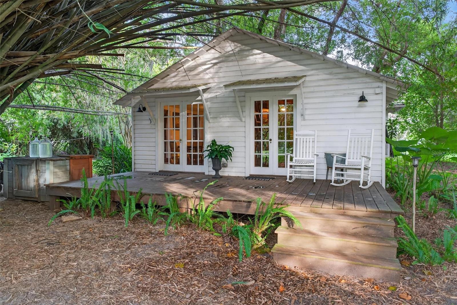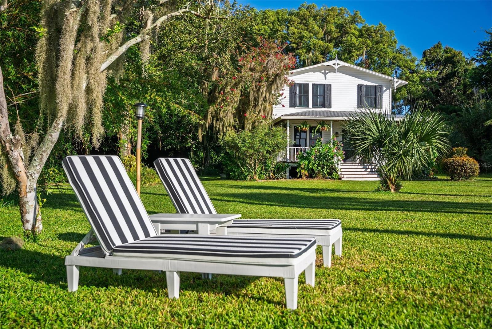 Named for the silvery shimmer of moonlight reflected across the water, “Moonwake”, is a true legacy property. Accessible by ferry or private boat, this turn-key, fully furnished estate offers complete privacy amid 6.9 acres of pristine, “Old Florida”. 5 bedrooms, 2 baths, and 2,146 sq. ft. of timeless character, including original heart pine floors, windows, doors and trim. The property also includes a separate 472 sq. ft. “Cook’s House” with a full kitchen, living area, private bedroom, loft, and bath. Modern updates blend seamlessly with historic charm: remodeled kitchen and baths, high-end fixtures and appliances including a 36” Wolf stove, 52-bottle wine cooler, and on-demand hot water in both homes. 240-ft private dock with two-slip boathouse, 960 sq. ft. drive-in workshop with 110 & 220 service, chicken coop, paddock, and fenced 30’x60’ garden. Mature fruit trees, bamboo groves, and abundant wildlife.