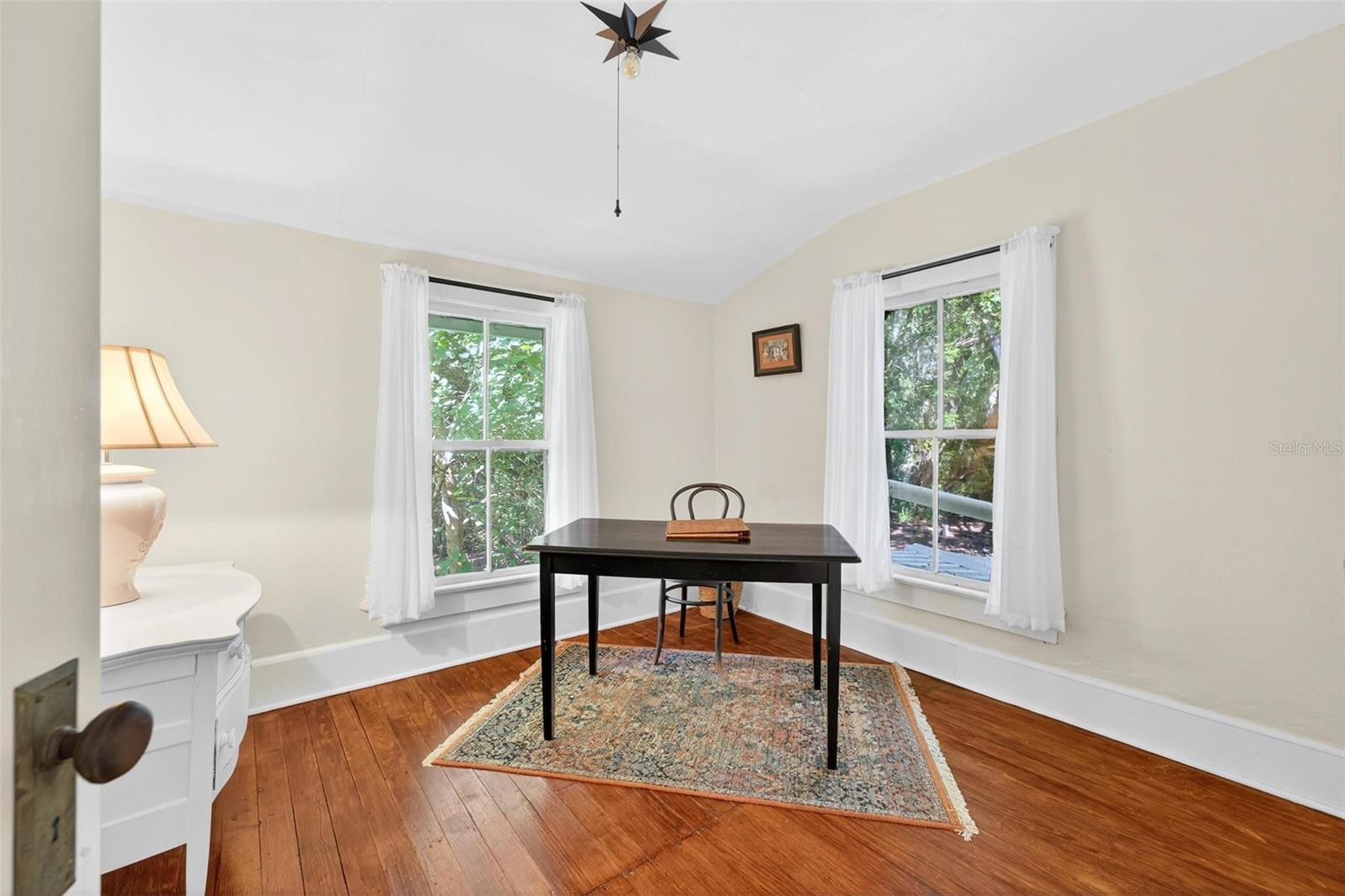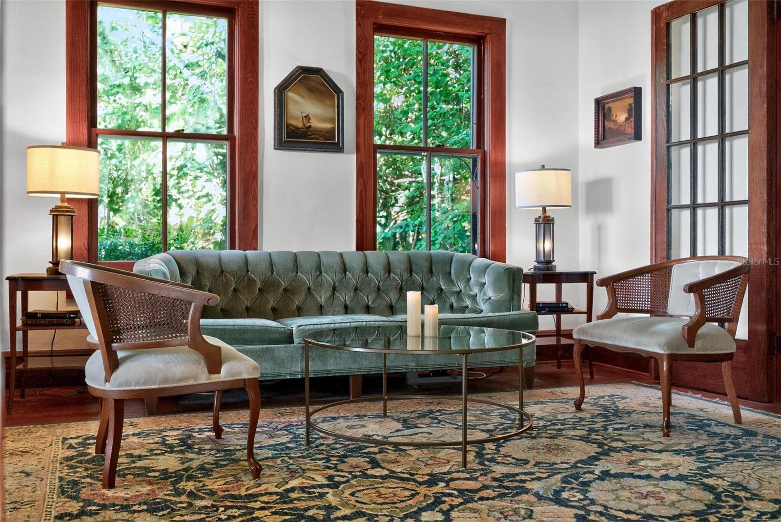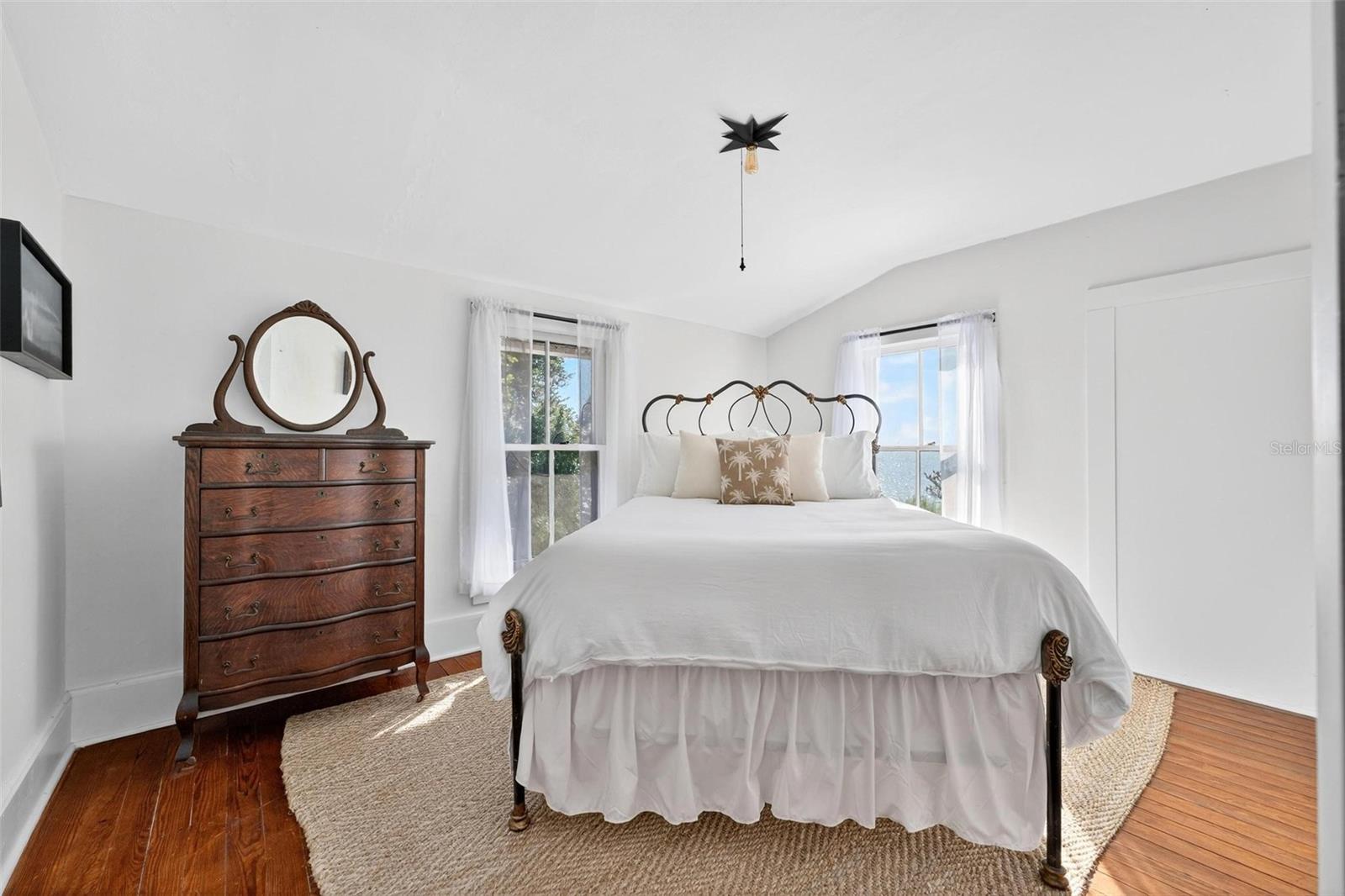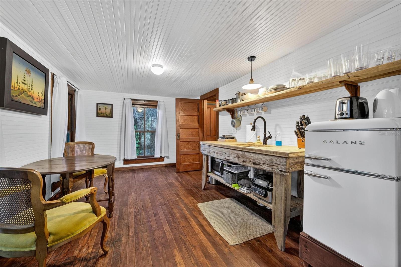 Named for the silvery shimmer of moonlight reflected across the water, “Moonwake”, is a true legacy property. Accessible by ferry or private boat, this turn-key, fully furnished estate offers complete privacy amid 6.9 acres of pristine, “Old Florida”. 5 bedrooms, 2 baths, and 2,146 sq. ft. of timeless character, including original heart pine floors, windows, doors and trim. The property also includes a separate 472 sq. ft. “Cook’s House” with a full kitchen, living area, private bedroom, loft, and bath. Modern updates blend seamlessly with historic charm: remodeled kitchen and baths, high-end fixtures and appliances including a 36” Wolf stove, 52-bottle wine cooler, and on-demand hot water in both homes. 240-ft private dock with two-slip boathouse, 960 sq. ft. drive-in workshop with 110 & 220 service, chicken coop, paddock, and fenced 30’x60’ garden. Mature fruit trees, bamboo groves, and abundant wildlife.