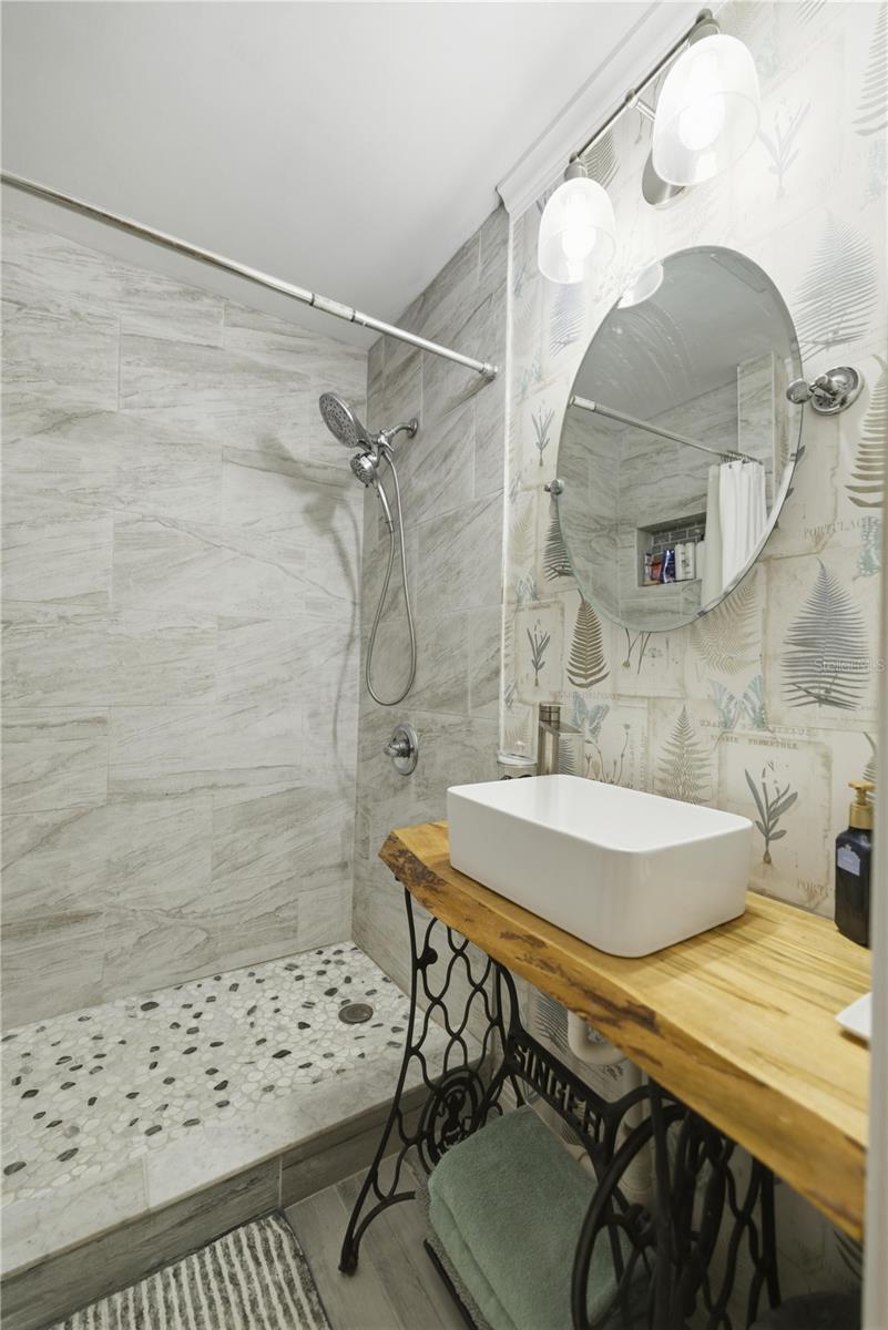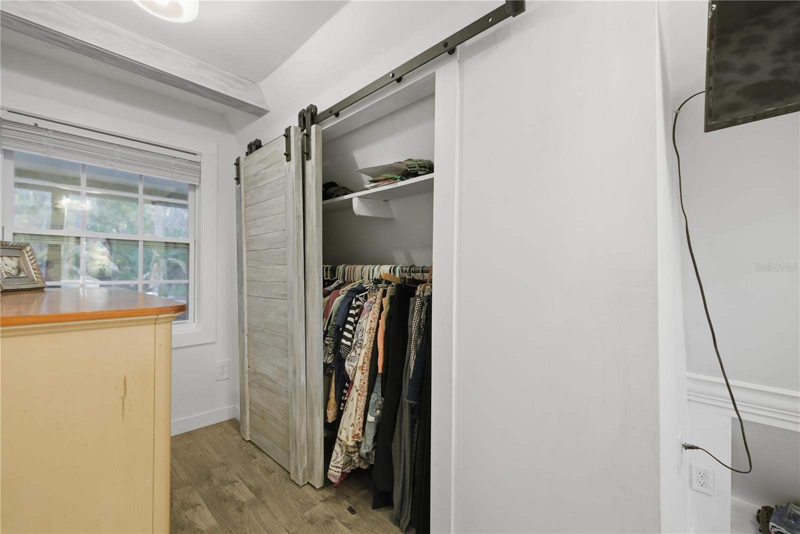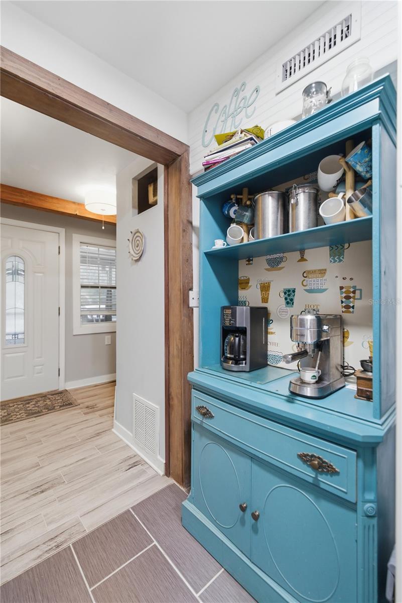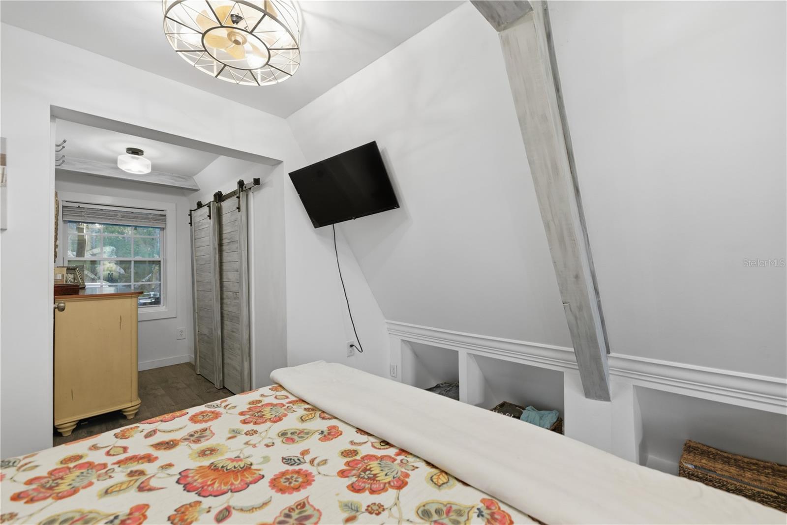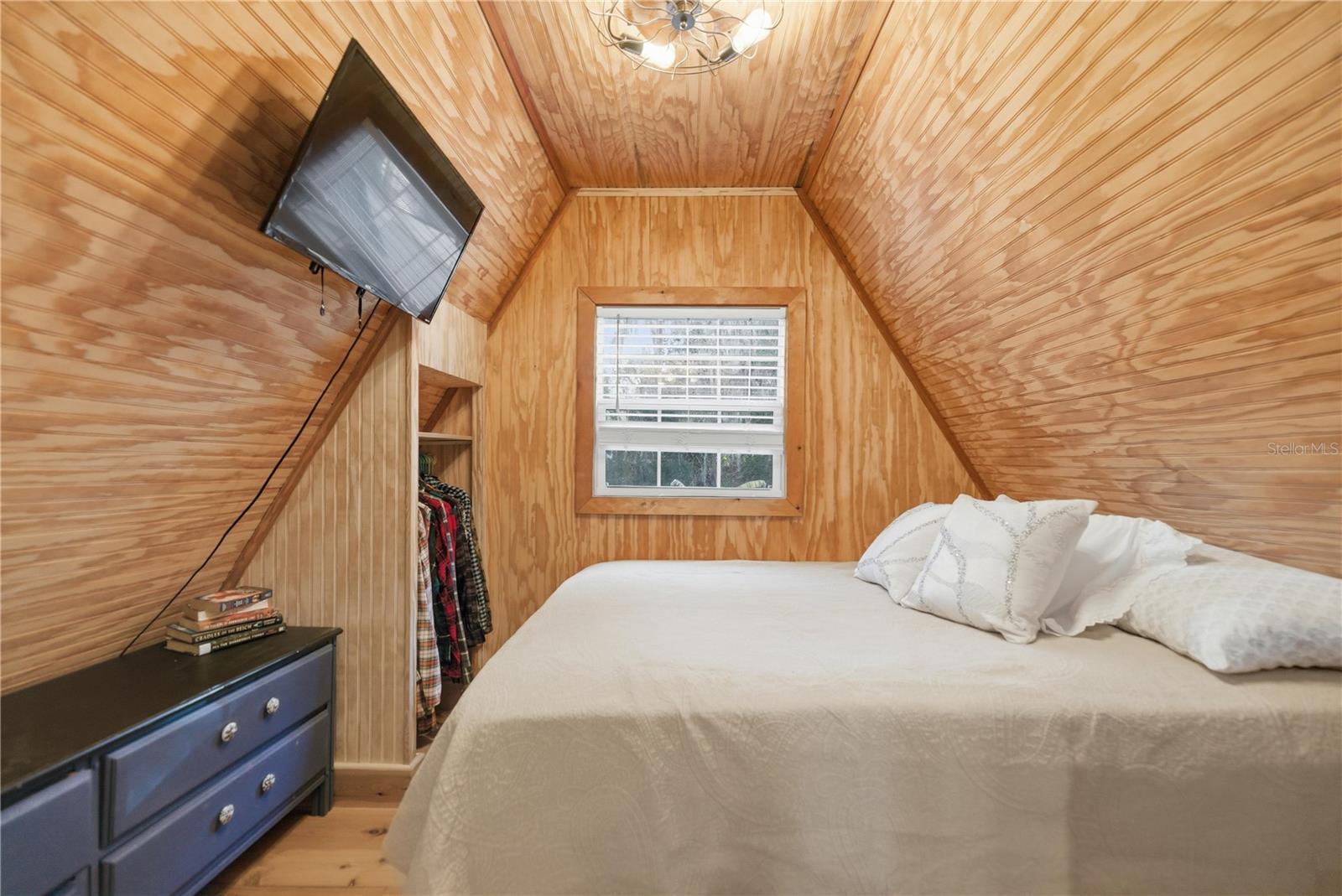 This fully remodeled, fully furnished A-frame with views of Lake George is an ideal vacation rental or personal retreat in peaceful Georgetown, Florida.Thoughtfully updated from top to bottom, this home blends modern finishes with timeless character and incredible indoor-outdoor living. The kitchen is a true showpiece, featuring beautiful shiplap walls, sleek modern appliances, and warm butcher block countertops. Tastefully selected tile flooring flows throughout the entire downstairs, creating a cohesive and durable living space. The primary bedroom and full ensuite bathroom are conveniently located on the main level, offering comfort and privacy. In the living room, a freshly painted spiral staircase with new treads leads upstairs, adding architectural interest and charm. The upper level showcases stunning hardwood flooring throughout, with luxury vinyl plank flooring in the half bathroom. Two upstairs bedrooms provide flexible living options—one private bedroom comfortably fits a full-size bed and includes a small closet and a window overlooking the backyard, while the second bedroom easily accommodates a full-size bed with additional space for a sitting area. Upstairs at the front of the home, a versatile flex space features an exterior door that opens to a balcony overlooking Lake George—an ideal spot to enjoy unforgettable sunsets and tranquil water views. Outdoor living is just as impressive, with a large screened-in back porch perfect for relaxing or entertaining, and a thoughtfully designed mudroom that provides a functional entry into the home. The property spans two lots totaling approximately 0.65 acres, offering privacy and room to spread out. Additional highlights include a whole-house propane generator (excluding AC), a 28 x 24 detached garage ideal for boats or RVs, and a separate laundry/storage building—perfect for hosting guests. Located with views of scenic Lake George, this home is surrounded by boating, fishing, kayaking, and abundant wildlife, making it a highly desirable vacation destination. Georgetown’s laid-back, Old Florida charm and stunning sunsets create an unforgettable guest experience, ideal for short-term rentals, weekend getaways, or seasonal stays. This one-of-a-kind Lake George property combines modern upgrades, generous space, and serene natural surroundings—perfect as a full-time residence or a peaceful getaway. Don't miss this opportunity to own this one-of-a-kind property in Old Florida!