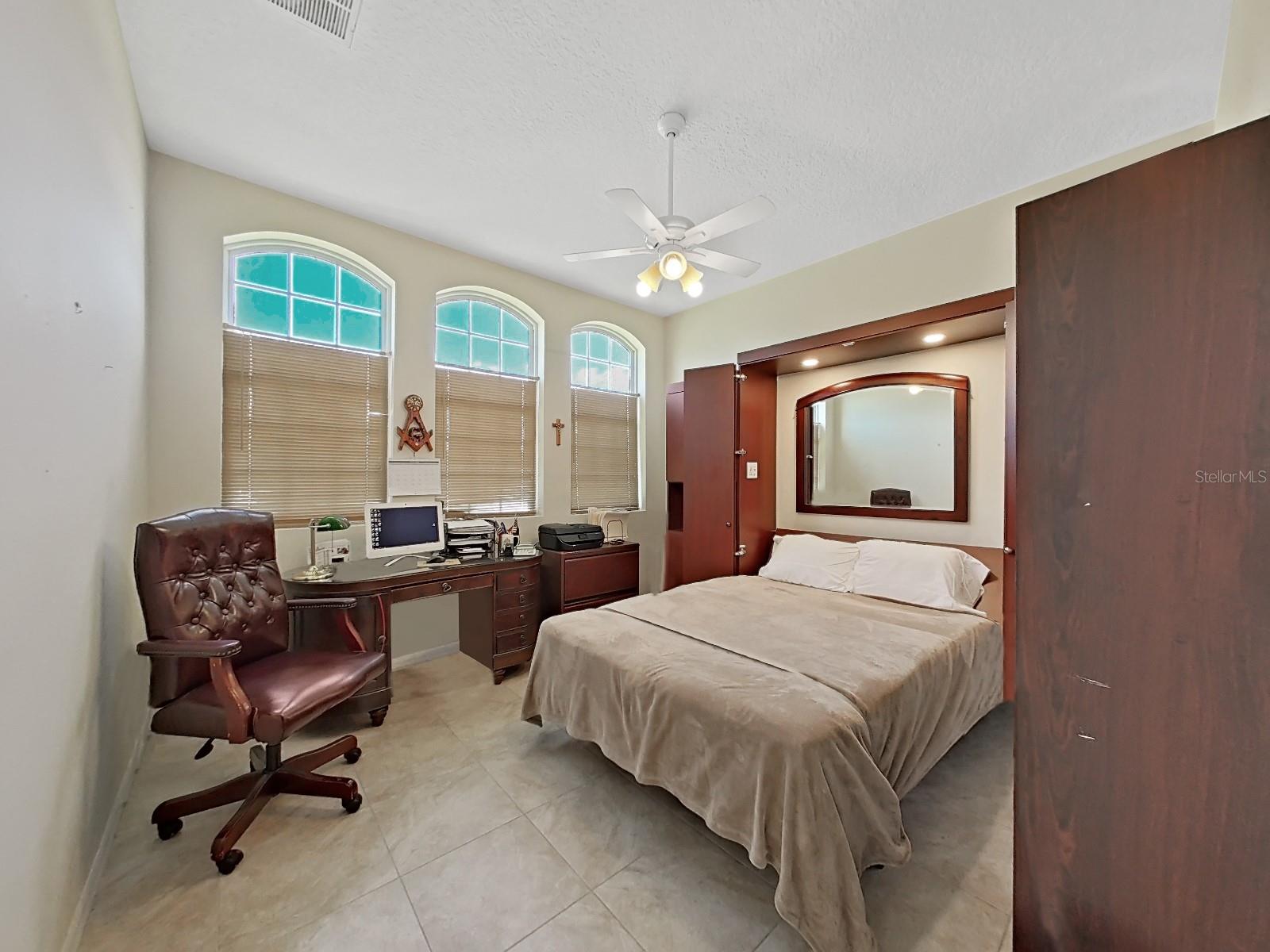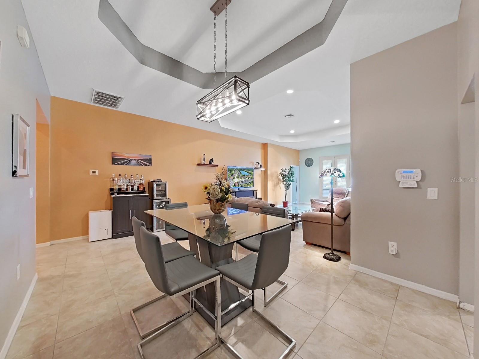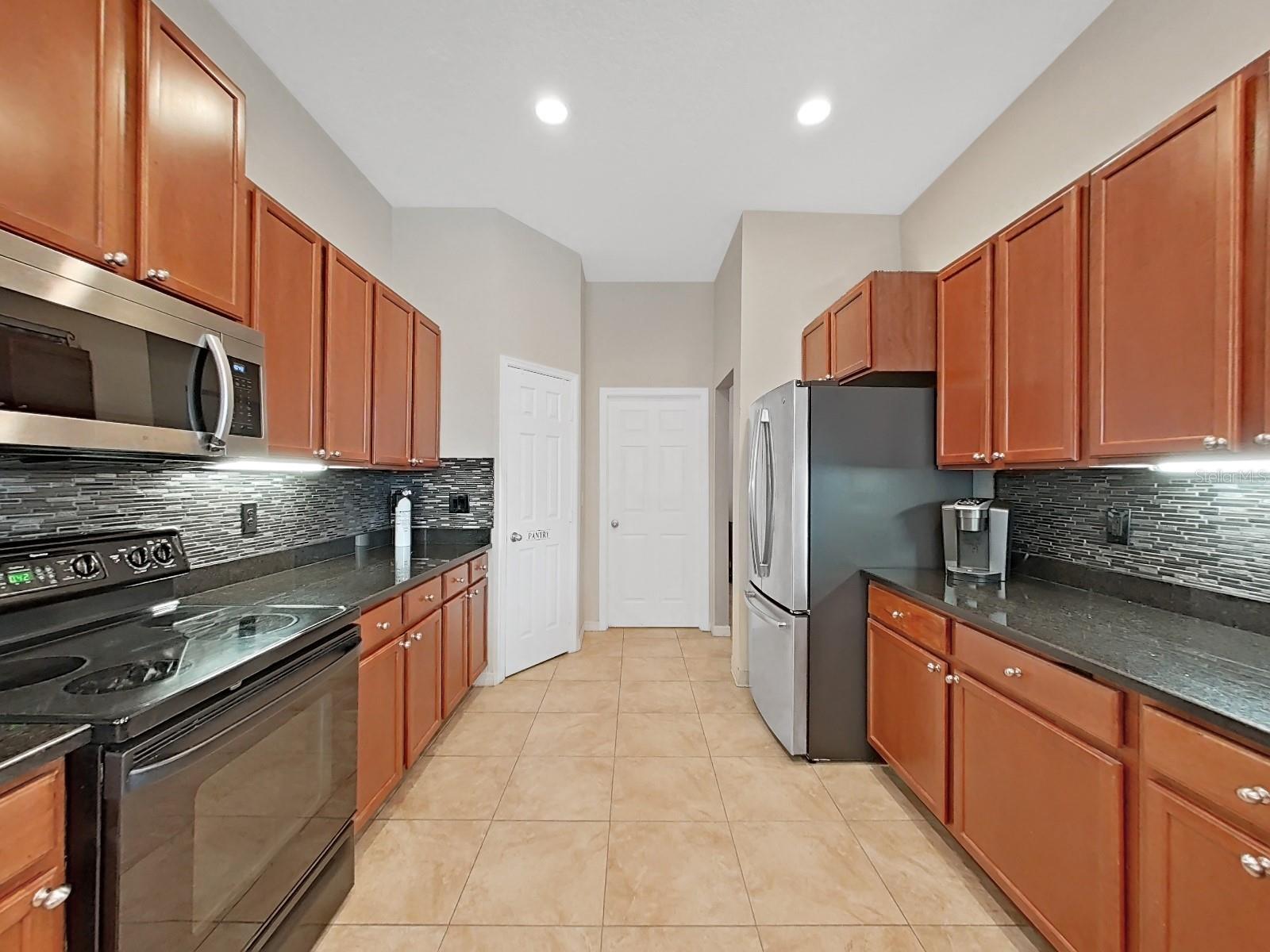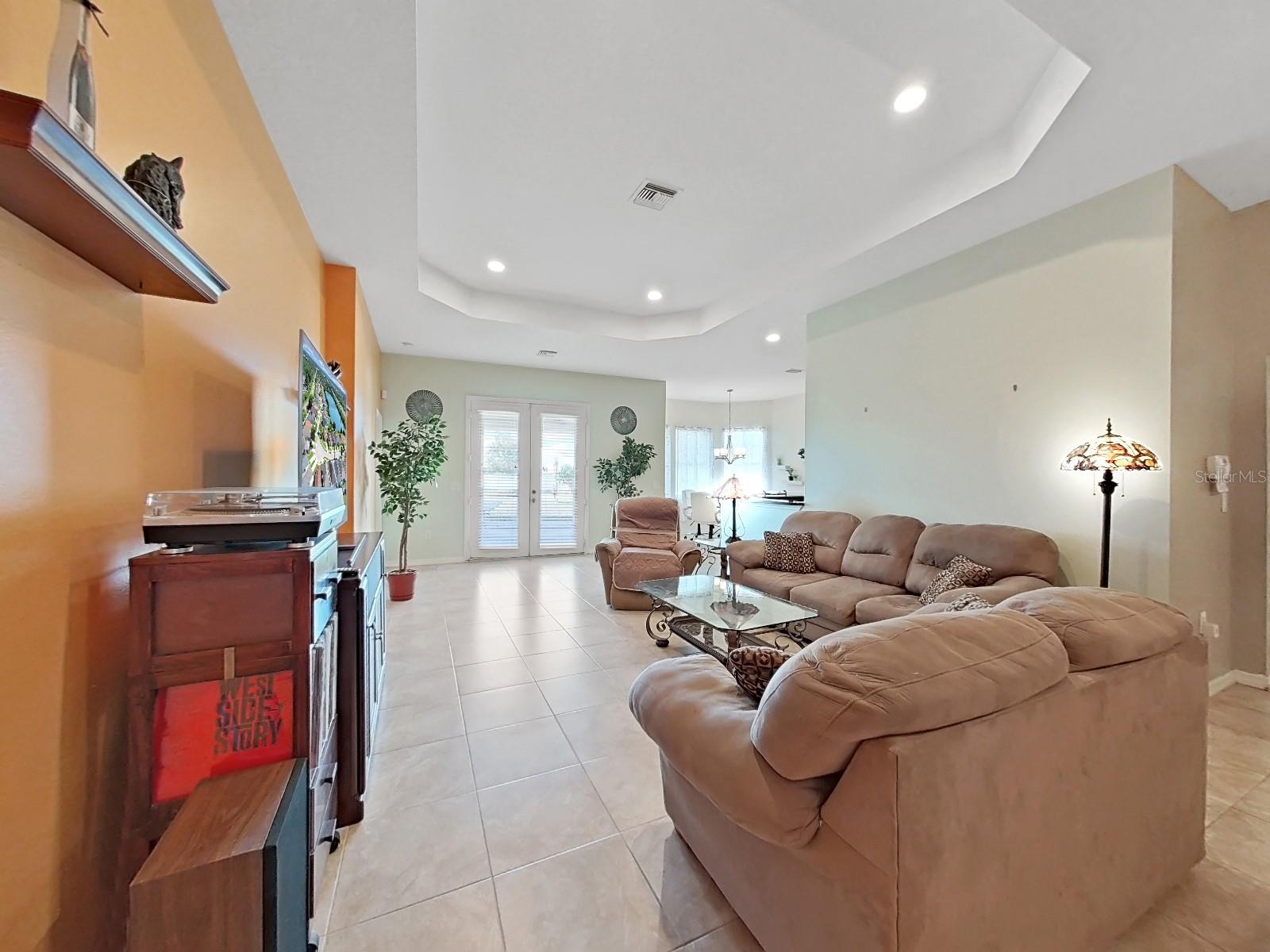 PRICE REDUCED Step into your dream home in the heart of an established community with NO CDD fees and LOW HOA COSTS! This stunning custom-built 3-bedroom, 2-bathroom residence comes with a 2-car garage and features such as 10 ft tray ceilings, 8ft doors, custom windows, and all bedroom fans. Upon entry into the foyer, you'll be embraced by the generous living space and formal dining room. This sets an inviting ambiance, with porcelain tile flooring throughout ensuring both practicality and style combined within this home. The central focus of this property resides within the beautiful kitchen and family room combination - an ideal setting for entertaining or intimate family gatherings. The kitchen offers granite counters, wood-faced cabinets, a full set of appliances, including a newer stainless steel french door fridge and microwave oven, under cabinets' lighting along with ample eating space. The effortless transition into the family room creates a comfortable living area destined to become the core of daily activities. Find sanctuary in the extended master suite which promises relaxation at every turn! The spacious master bathroom showcases a tub and shower, twin sinks, and two separate walk-in closets - providing a personal oasis designed for ultimate comfort. Two additional rooms are available to cater to larger families or visitors; one currently serves as an office featuring a Murphy bed that can convey. With newer AC installed as well as updated sinks, toilets, and faucets throughout - there's nothing left to do but move in! Outside fenced yard offers privacy alongside plenty of space for outdoor enjoyment; including both fire pit & concrete pad areas which provide opportunities for leisure or gardening. Plans for an outdoor lanai are available from sellers if you wish to complete this feature yourselves, upon taking ownership. The garage has an exhaust fan, workbench, and storage area. ADT security system is already connected & transferable should you desire. This adds peace of mind to new owners. Convenient location only minutes away from schools, shops & restaurants paired with easy access to I-4 & I-75 – ensuring commuting couldn't be simpler! Move-in ready, this custom home is a rare find - only one of a few upgraded models in this established community. Don't miss the opportunity to make it yours and start creating lasting memories in this perfect blend of comfort and style!
