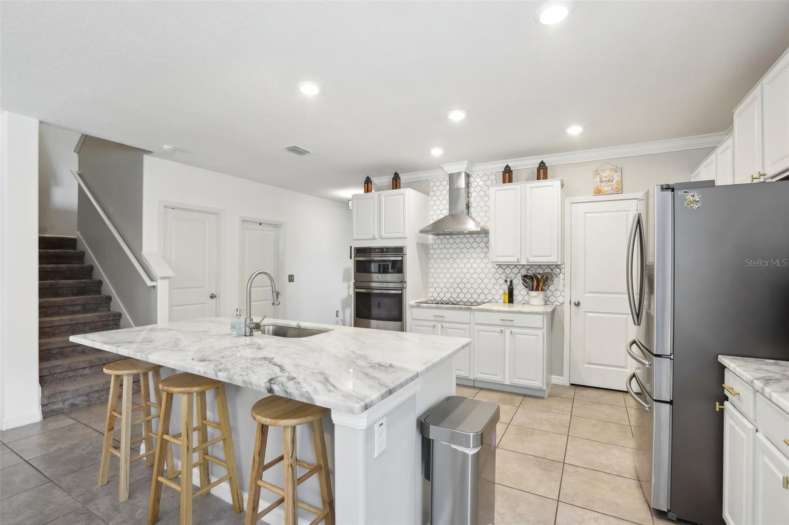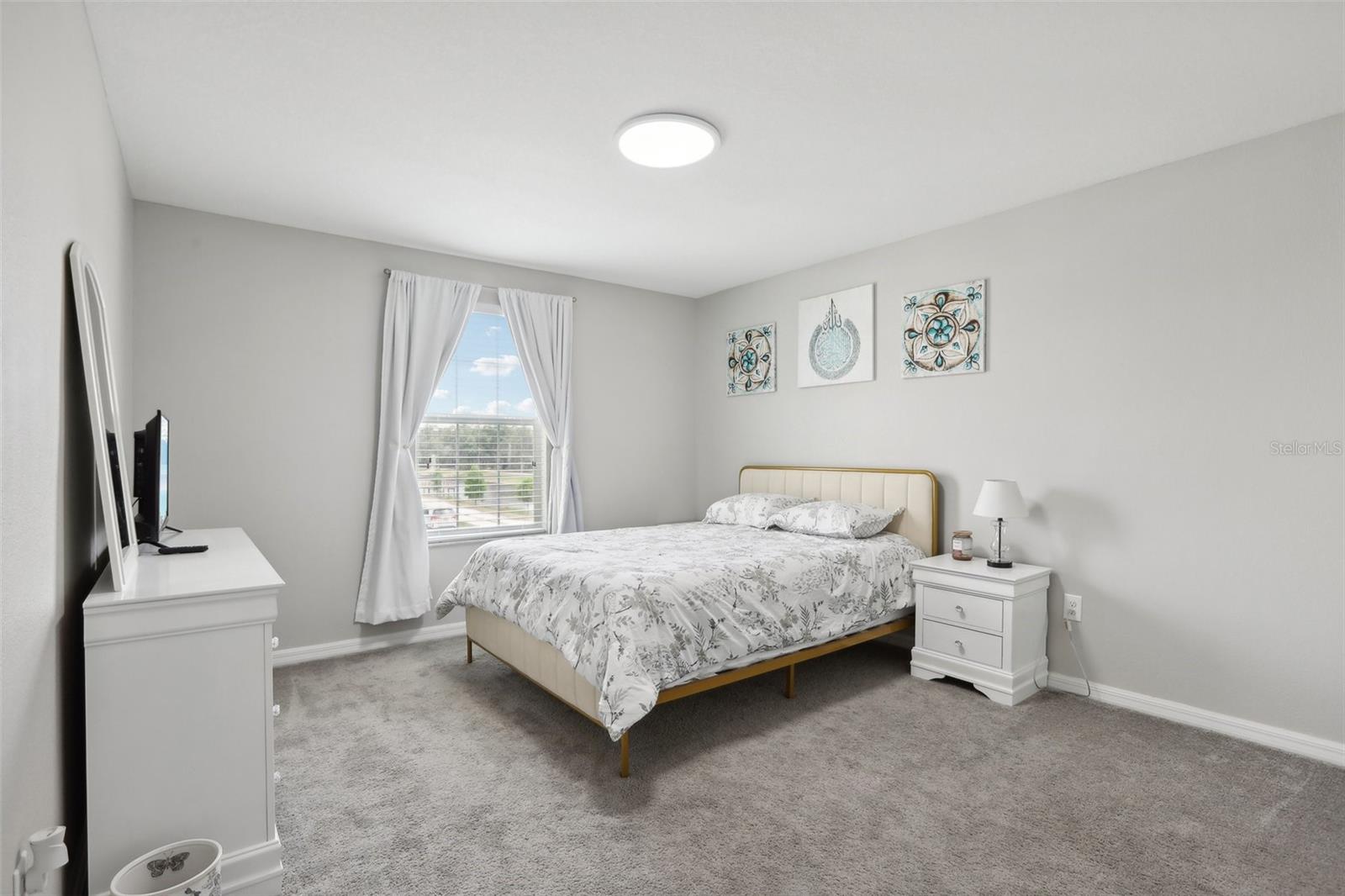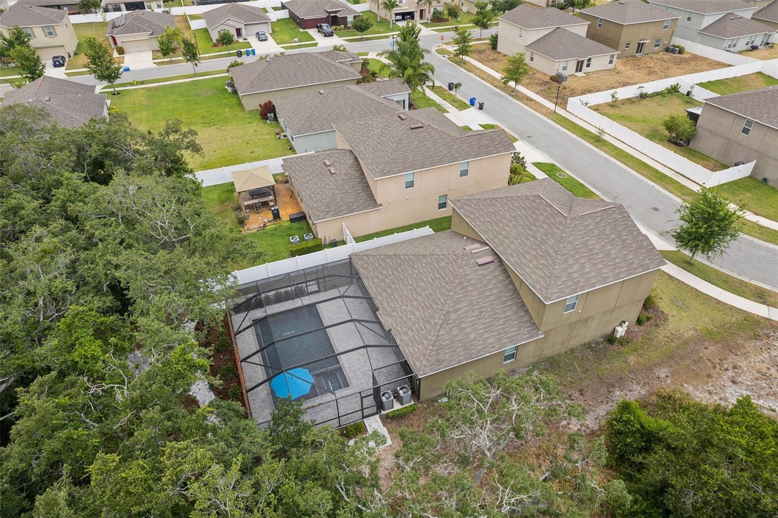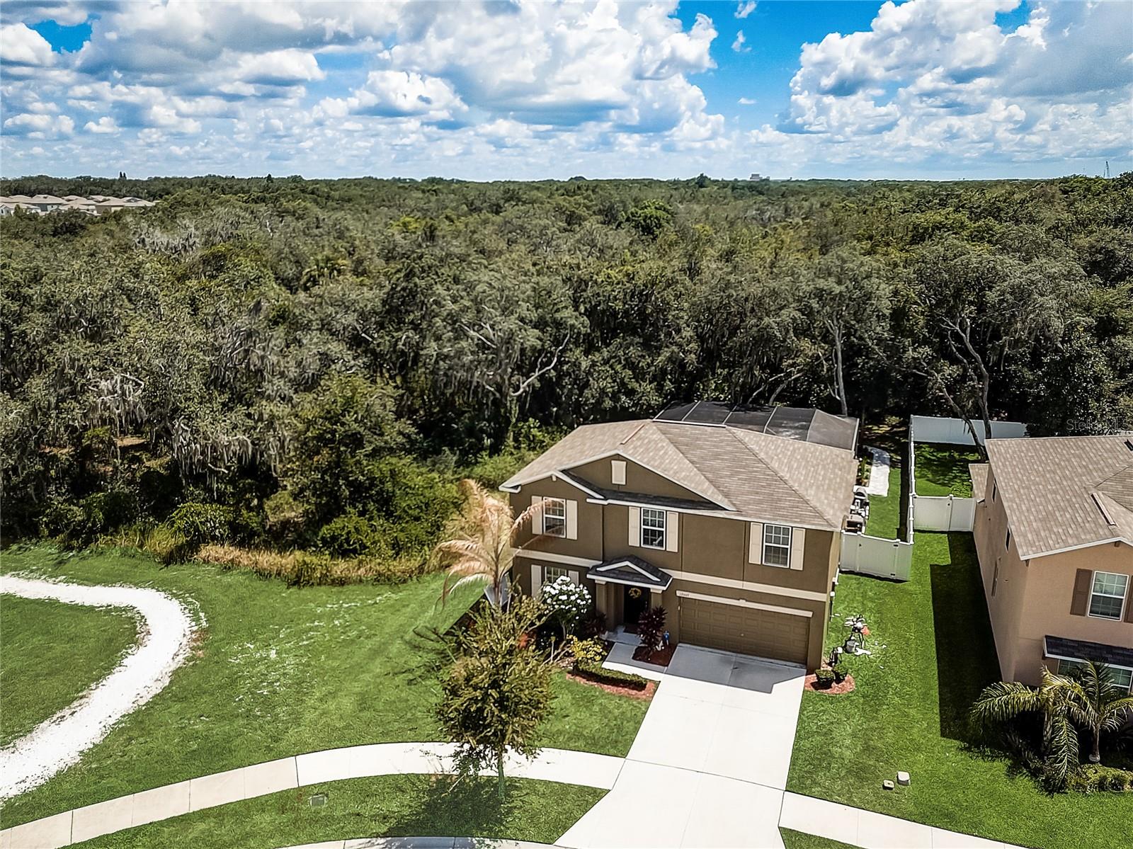 Discover your private Florida oasis in this stunning 5-bedroom, 2.5-bathroom pool home with nearly 3,000 square feet of upgraded living space, located in the desirable gated community of Bullfrog Creek. This meticulously maintained, move-in ready home features a custom heated saltwater pool and spa, conservation views, and an expansive paver patio with a screened lanai—perfect for outdoor entertaining year-round. The spacious and flexible floor plan includes a welcoming foyer, a versatile den or flex space, and an open-concept living and dining area designed for both comfort and entertaining. The chef-inspired kitchen is the heart of the home, featuring marble countertops, 42-inch wood cabinetry with crown molding, stainless steel appliances, a built-in oven and microwave, built-in cooktop with designer hood, stunning two-tone arabesque tile backsplash, walk-in pantry, center island with breakfast bar, and a sunlit eat-in dining area. The luxurious primary suite is conveniently located on the main level and offers an ensuite bath with dual vanities, a walk-in shower, and a spacious walk-in closet. Upstairs, enjoy a large open loft that can serve as a second living area, media room, or game space, along with four generously sized bedrooms and a full bathroom with dual sinks and a private water closet. Enjoy peace and privacy with no backyard neighbors and tranquil conservation views. Bullfrog Creek offers exclusive amenities including gated access, a community playground, and a private fishing pier overlooking the pond. This home is ideally located with easy access to I-75, US-301, and US-41, making commuting throughout the Tampa Bay area a breeze. Don’t miss your chance to own this energy-efficient, beautifully upgraded pool home in one of the area’s most private gated communities. Schedule your private showing today and ask about special financing options to help lower your interest rate.
