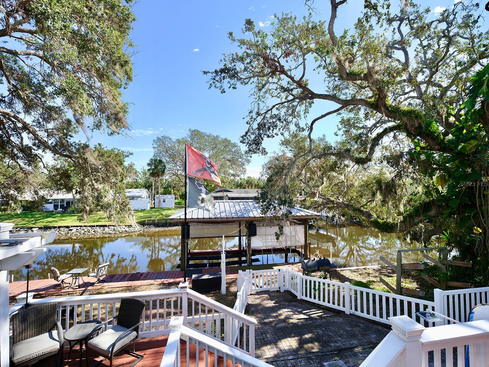 Big price improvement Seller says very motivated. The home sits on 9 foot concrete block stilts main home on 2nd floor. NO FLOOD NO PROBLEM. Waterfront!!! 3 bedroom 3 bathrooms 1 half bath home. Complete with dock and boat lift that leads you directly out to Tampa Bay. Florida paradise awaits you as you pull up to your new home. Walk up the stairs to the second story where the main home sits to enjoy all the views on your front porch balcony. As you walk in you will be taken back by the breathtaking views of your sanctuary on the water. The living room boasts a Fireplace that has been white washed. To the left the kitchen has an eat-in bar space with granite counter tops, stainless steel appliances, and the dining table is nearby to host family dinners. As you make your way up the stairs the Master bedroom is to the left and is spacious with a walk-in closet, and high ceilings, and Master Bathroom. The second bedroom has a built-in bunk which the kids, and or guests will love. As well as both rooms having views to the water. Opening your French doors you are led to your first deck on the second story that is screened in with a built in kitchen perfect for summer bbq's. Walking down the double sided deck everything you want in a waterfront home awaits. A dream maker hot tub runs on 220, pergola chill area, fire pit to share stories on these colder nights, covered dock with boat lift, and custom surfboard outdoor shower perfect when coming home on those long boat days. It's your own little oasis waiting for you to make it your home. No issues with Flooding This house is built on concrete Stilts (Mol) 8-9 ft and a concrete foundation. New metal roof (2023), AC (2019), water heater (2017), Fresh Paint. First floor garage is concrete and includes an extra studio not included in square footage at roughly (340) sqft including a full Bathroom the whole room is tile and gets so much natural light. The home is also pre-wired for a portable generator located inside the garage which has work benches and ample spaces for your car, and gym. Dock features 10,000 lb boat lift, Dock is covered with a metal roof, Lattice to keep leaves out, also includes Float on/off jet ski dock. The home also has a whole-house water filtration and softening. Their is also an extra shed 400 square feet. The garage is huge with a work bench ready for your organization and projects. The home has it all and I am very excited for you to come view it, I truly think you will fall in love.