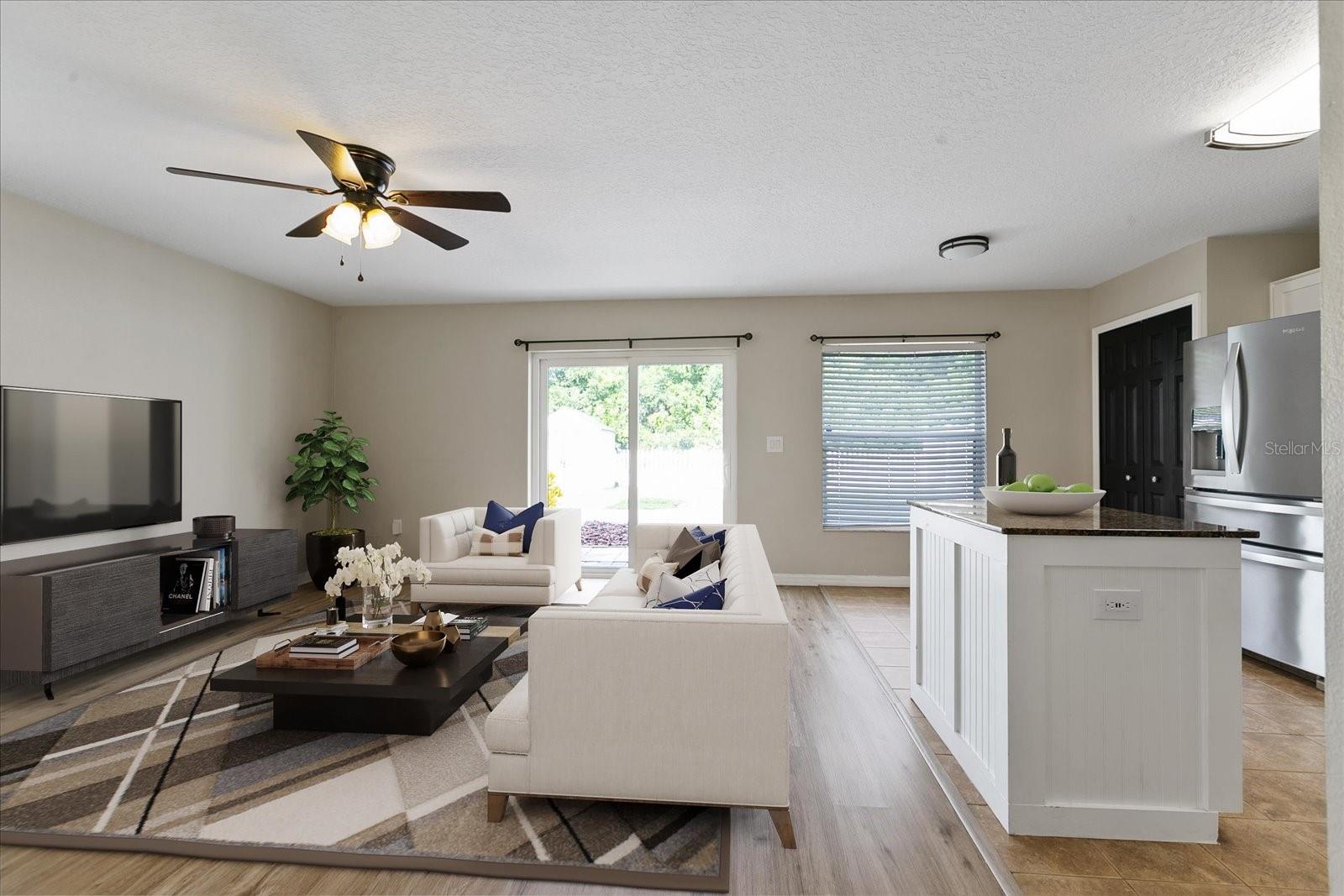 One or more photo(s) has been virtually staged. YOU CAN OWN THIS HOME FOR LESS THAN $5,000 WITH 100% FINANCING AVAILABLE (Income Restrictions Apply with preferred lender) OR ASSUMABLE LOAN AT 4.99% INTEREST RATE (Terms and conditions apply): OFFERING SOLAR LOAN TO BE PAID AT CLOSING VIA SELLER CONCESSIONS, Don't miss your chance to call this stunning, turn-key property a home! Situated in the heart of Gibsonton, this gorgeous home is in the highly sought-after community of Carriage Pointe. With over 2,000 sqft of space, including 4 wonderful bedrooms and 2.5 bathrooms, and accompanied by many tasteful updates such as luxury vinyl flooring, THIS is where you want to call home. Many new restorations have been made: new roof (2022), new AC (2022), new flooring (2022), and a new water heater (2023). Additionally, the home features solar panels for an energy-efficient living with a transferable full warranty, significantly lowering your monthly electric bill. The ADT security system that conveys with the property gives you reassurance that your home is secured at all times. As you enter the property, you will be greeted by a cozy foyer that flows right into a spacious sitting area and dining space, which is ideal for entertainment. The bright kitchen features shaker cabinets, granite countertops, and stainless steel appliances. Upstairs, you'll find four spacious bedrooms with ample closets and light. The master bathroom, situated at the rear, boasts a large walk-in closet, separate soaking tub, shower, and double vanity sinks! Enjoy the gorgeous custom accent wall in the master bedroom, a true one-of-a-kind feature! Newer sliders lead to a fully fenced backyard with ample patio space, and space for a small garden. Enjoy the privacy of having a fully fenced in backyard with a view of a nature conservation point for more seclusion. Carriage Pointe amenities include a pool, gym, tennis/basketball courts, and a party room with a kitchen. This location offers easy access to I-75, which ensures a short commute if you ever have to go to Tampa, along with plenty of shopping, restaurants, and a movie theatre all within close proximity. Start scheduling your showings today to experience this beauty of a home!
