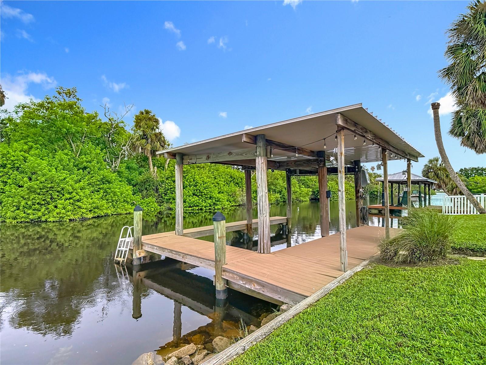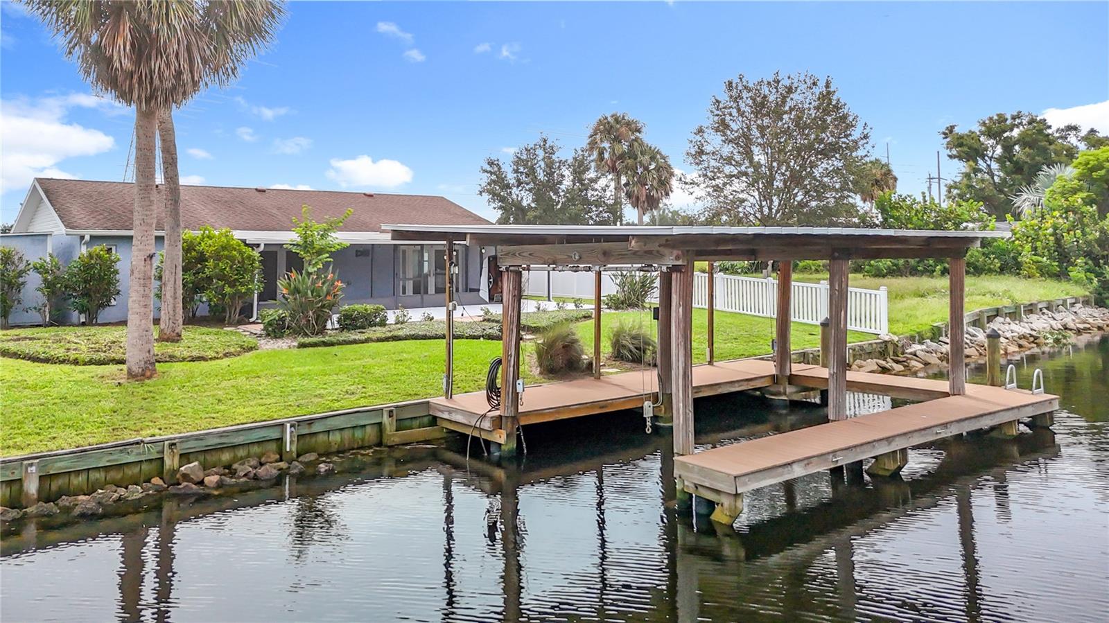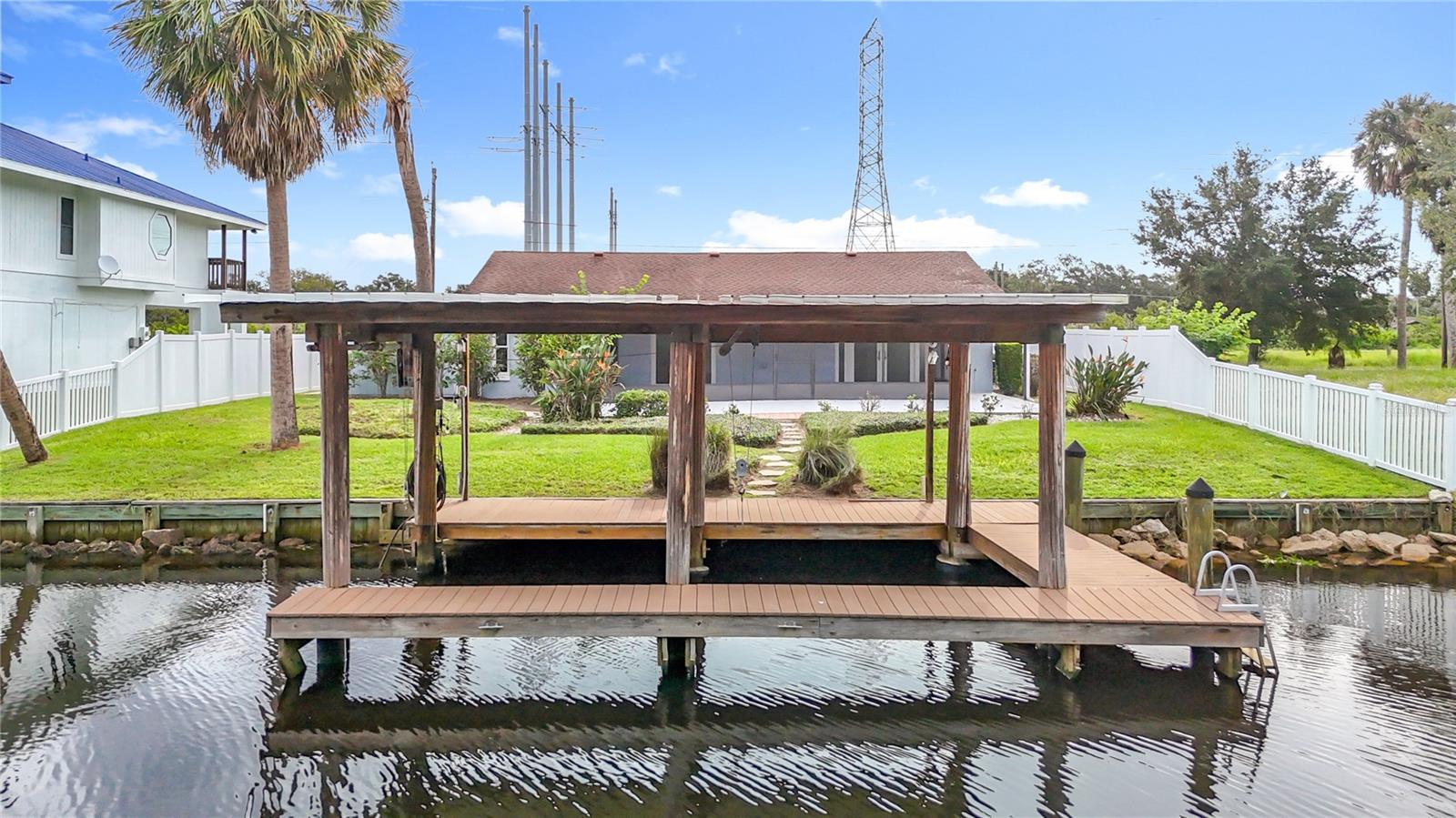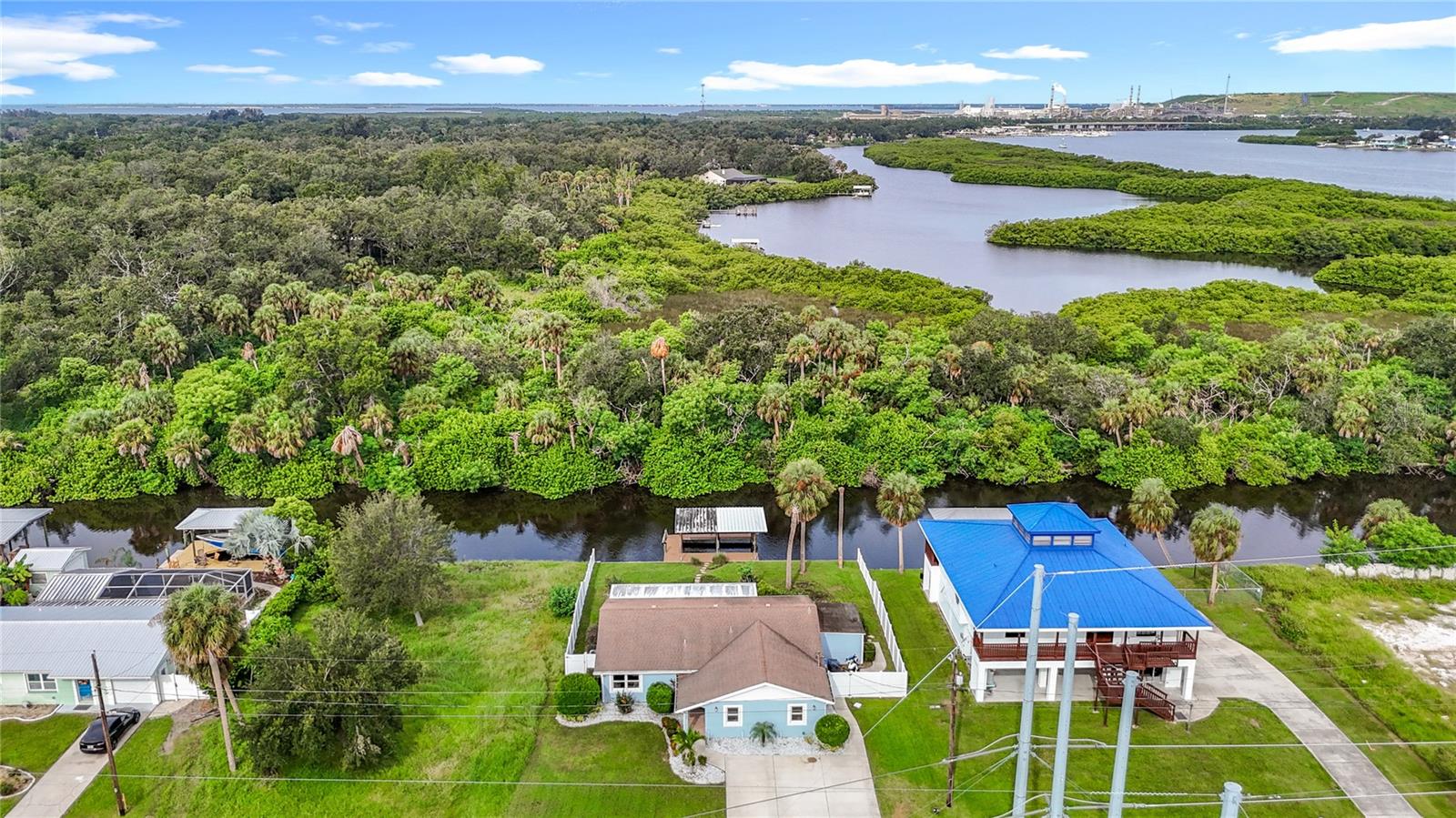 One or more photo(s) has been virtually staged. Welcome to 9923 Bay Drive — a waterfront haven where thoughtful renovations meet practical comforts. This light-filled, single-story home spans nearly 1,800sf, with 4 bedrooms, including an en suite Primary Bedroom and 2 full bathrooms. Fully reimagined inside and out: new soft-close cabinetry; new stainless steel appliances; new HVAC; new water heater; fresh paint; modernized fixtures and fans; 5 1/4" baseboards and shoe moulding; electric fireplace encased in a natural, hand-crafted stone entertainment center; and updated landscaping. Exit your double French doors to a covered screened enclosure overlooking the canal- ready for coastal living. Just steps further is your private dock (with lift ready to re-connect), perfect for boating mornings or sunset reflections over the Alafia River. A huge shed, freshly painted to match, gives you space for gear or hobbies. Nestled close to I-75 and US-41, you get the peace of riverside life without giving up quick access to Tampa and the rest of the region. NO HOA! or deed restrictions here—just the freedom to enjoy your slice of waterfront tranquility with real, modern comforts. Bring your furniture, your artwork and your boat! The rest is a turn-key dream! SELLER OFFERING 2/1 RATE BUYDOWN!