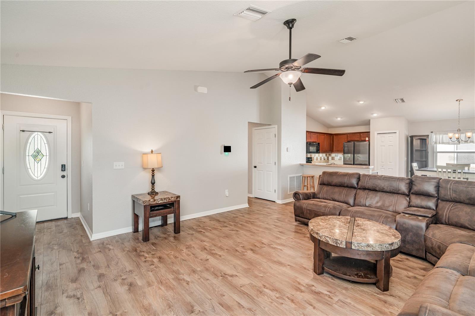Move-in ready! This stunning 4-bedroom, 2-bath home was built in 2015 with over 1,600 sq ft of comfortable living space and a 2-car garage. Perfectly situated right on the lake, it offers breathtaking lake views, privacy, and no neighbors on one side. Freshly painted inside (with transferable guarantee), this home also features a new roof , bringing peace of mind and lasting value. A smart alarm system with integrated cameras, plus remote thermostat and front-door controls, adds modern convenience.