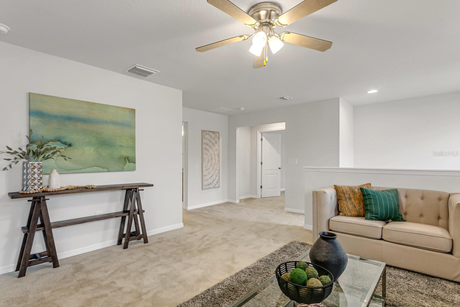 One or more photo(s) has been virtually staged. Welcome to Carriage Pointe! This stunning Sanibel model by Ryan Homes offers the perfect blend of comfort, style, and location. Nestled on a serene pond with no rear neighbors, the home provides breathtaking water views and exceptional privacy. Inside, the open-concept first floor features a spacious great room, modern kitchen, walk-in pantry, and a guest suite with private bath which is ideal for visitors or multigenerational living. Upstairs, you’ll find a large loft, generously sized bedrooms, and a luxurious master retreat with panoramic water views, dual sinks, walk-in shower, and walk-in closet. Enjoy outdoor living on the covered patio overlooking the fully fenced backyard. Added perks include double-pane windows, hurricane panels, ceiling fans throughout, and plenty of storage. Carriage Pointe offers resort-style amenities, including a pool, clubhouse, fitness center, playground, basketball courts, and miles of sidewalks. Conveniently located near I-75, US-301, US-41, shopping, dining, top-rated hospitals, MacDill AFB, Tampa, and area beaches, this home combines peaceful surroundings with vibrant community living. Don’t miss your chance to own this spacious, move-in ready home in one of Gibsonton’s most desirable neighborhoods!