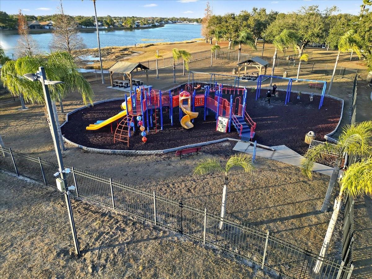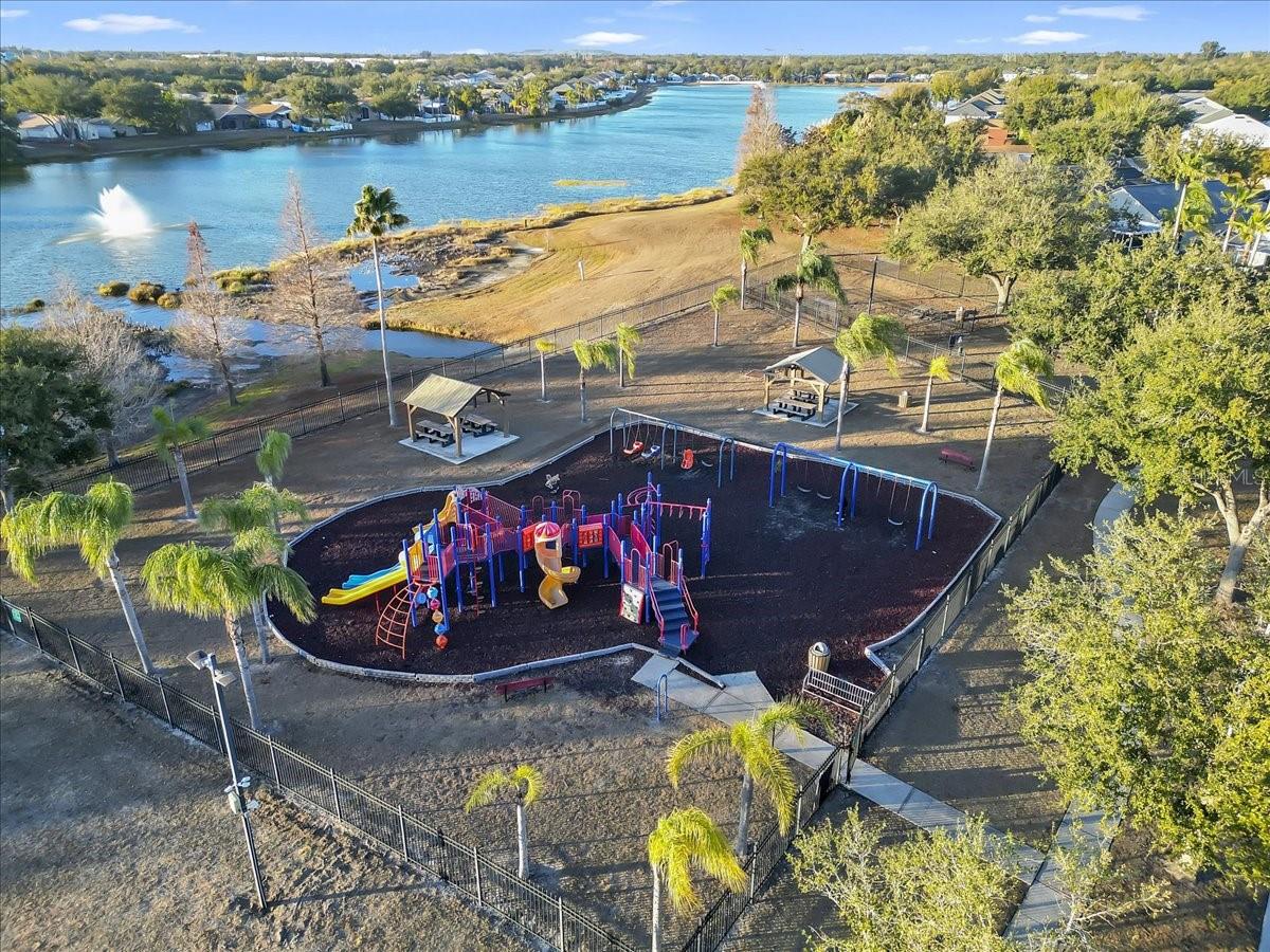 Welcome home to this STUNNING 4-BEDROOM, 3-BATHROOM home in Kings Lake offers a BRIGHT and SPACIOUS OPEN floor plan, perfect for both FAMILY gatherings and QUIET evenings at home. ARCHITECTURAL details such as ELEGANT arched doorways, DECORATIVE plant shelves, and SOARING vaulted ceilings add CHARACTER and CHARM throughout. The FORMAL dining area and EXPANSIVE great room are enhanced by BEAUTIFUL porcelain tile flowing through all common areas. The LARGE, EAT-IN kitchen boasts NEW CORIAN COUNTERTOPS, NEW STAINLESS STEEL APPLIANCES, and AMPLE space for cooking and entertaining. The PRIVATE primary suite is a true retreat, featuring a LUXURIOUS garden tub, GENEROUS walk-in closet, and SEPARATE shower. A SMART split-bedroom layout includes a Jack-and-Jill bathroom connecting two secondary bedrooms, ideal for functionality and privacy. Major upgrades include a NEW ROOF, AC (2015), and WATER HEATER (2019), offering PEACE OF MIND for years to come. Step outside to the FENCED backyard, perfect for outdoor enjoyment and added security. The FAMILY-FRIENDLY Kings Lake community features its own elementary school, nearby daycare, a COMMUNITY playground.— all just minutes from home. This one is Priced right Folks.