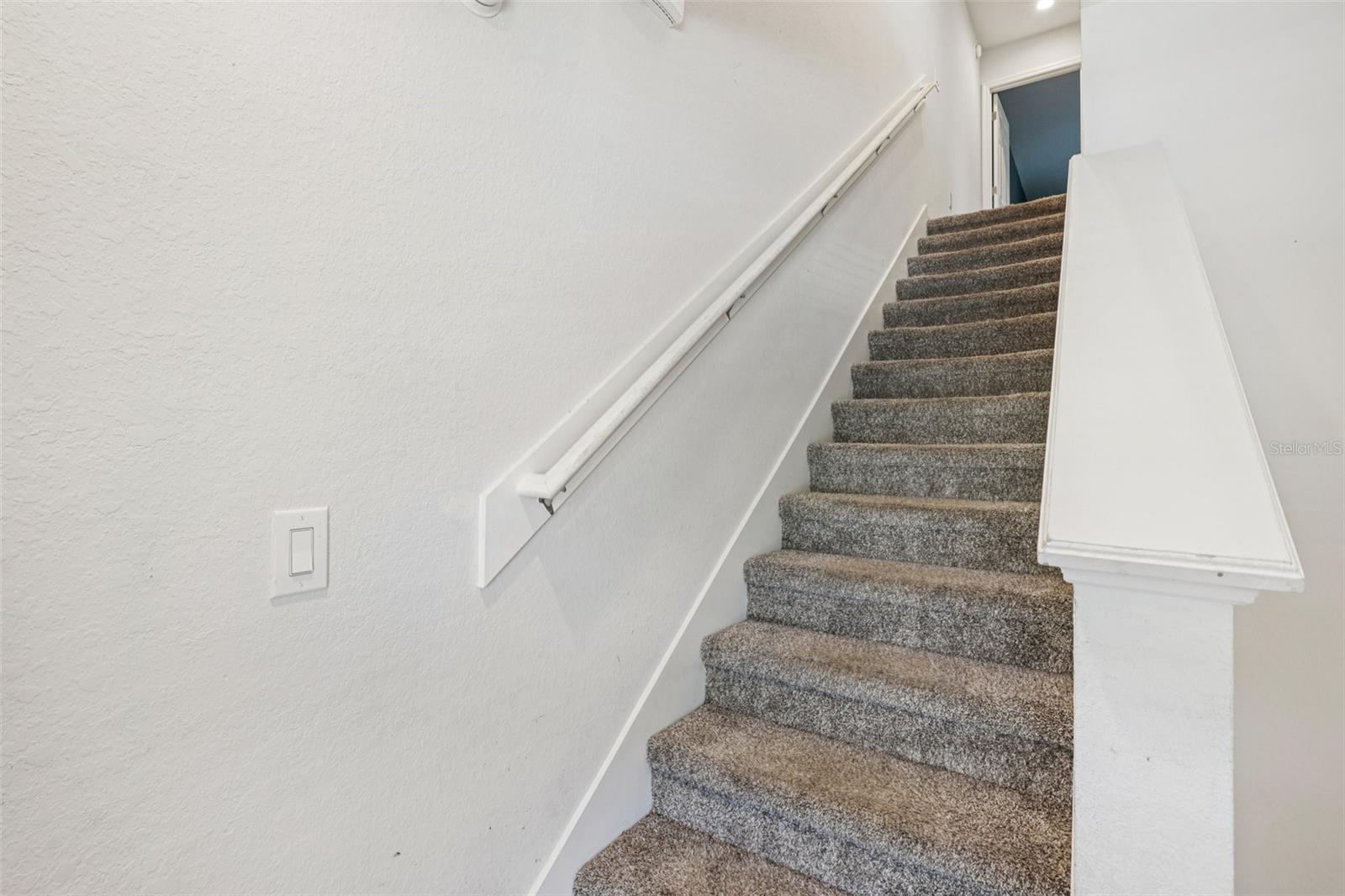 Welcome to a home that feels exactly how a retreat should. This move-in-ready townhome greets you with a charming covered front porch, leading into an airy layout where every detail has been thoughtfully curated. At the heart of the home, the gourmet kitchen shines with crisp white cabinetry, sleek granite countertops, and stainless steel appliances—perfect for everything from quick morning coffees to weekend hosting. The primary suite serves as a true getaway, featuring a generous walk-in closet and a spa-inspired bath with dual vanities and a stunning glass-enclosed tiled shower. Upstairs, two spacious secondary bedrooms share a clever Jack-and-Jill bath, offering a seamless flow. High-end touches like Mohawk stain-resistant carpeting and 18” ceramic tiling add durability without sacrificing style. Step outside to your private covered lanai to enjoy the breeze. With custom blinds already in place and storage tucked into every corner, all that’s left to do is move in and enjoy.