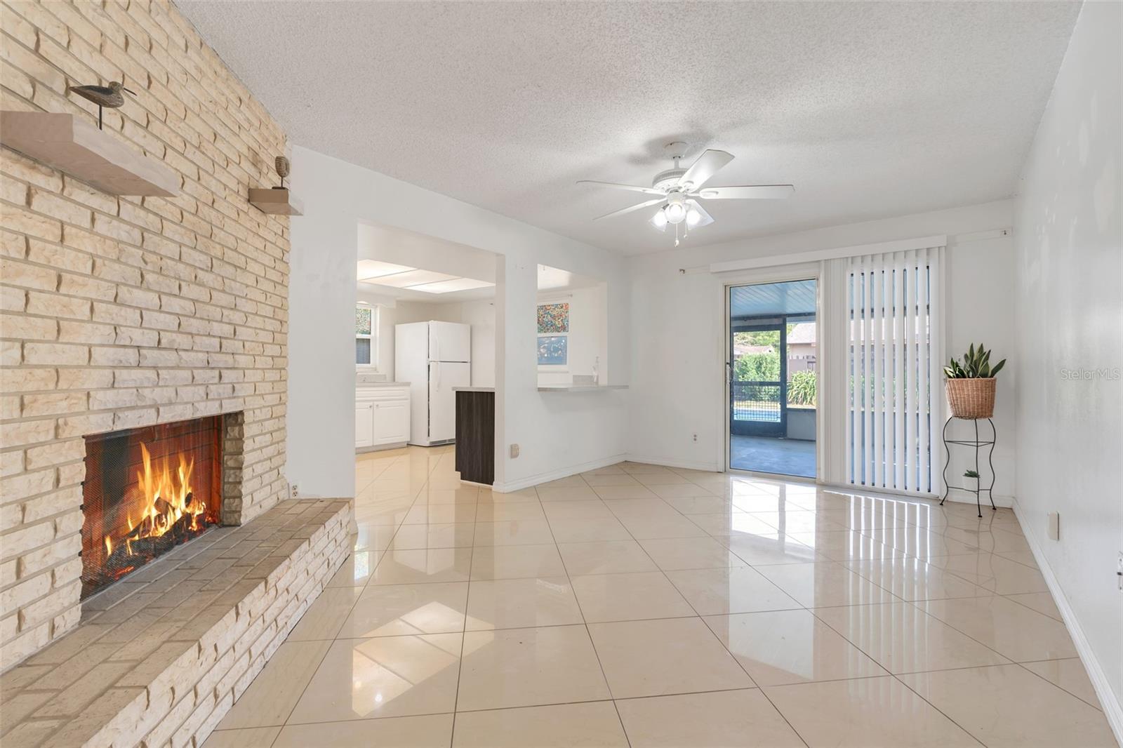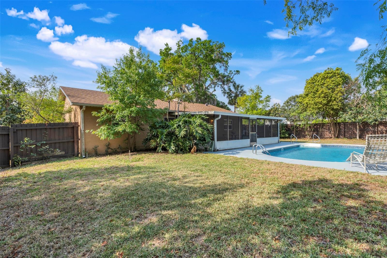 This beautiful three-bedroom, two-bathroom, pool home provides the perfect blend of comfort and outdoor living. Recent Upgrades Include, New HVAC< NEW ROOF< NEW GARAGE DOOR. Move in Ready! As you enter, you will be greeted by a spacious floor plan, featuring elegant tile flooring that flows seamlessly throughout. The cozy living area is enhanced by a charming brick wood burning fireplace, creating a warm and inviting atmosphere for quiet evenings at home. The well appointed kitchen boast ample counter space making it ideal for both everyday living and entertaining. Step outside to discover your own private oasis: a large screened patio that overlooks a sparkling pool, perfect for relaxing on warm Florida days or hosting gatherings with family and friends. NO HOA! The fully fenced yard ensures privacy and security, making it an ideal play area for family and pets. Primary suite with plenty of closet space is complete with en-suite that includes a walk in shower. Two additional bedrooms provide plenty of space for guests, or home office. Located in a peaceful neighborhood, this home features easy access to local amenities, parks, and scenic lakes, making it a fantastic choice for those seeking a vibrant life in Grand Island. Schedule your showing today and experience all that this delightful pool home has in store for you!