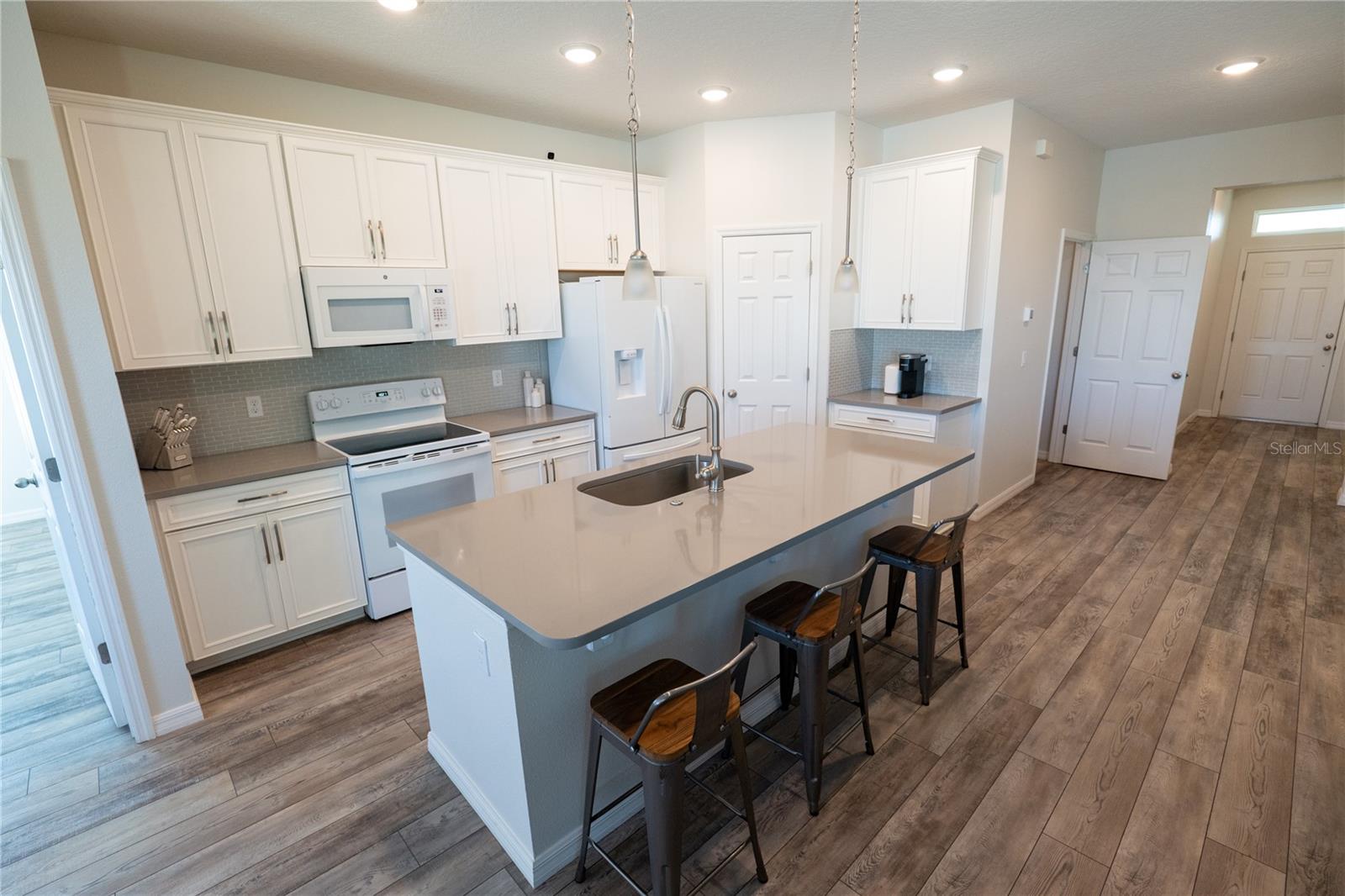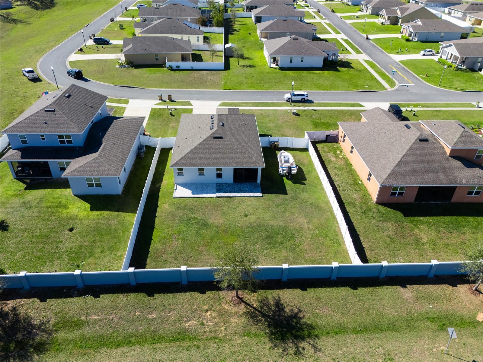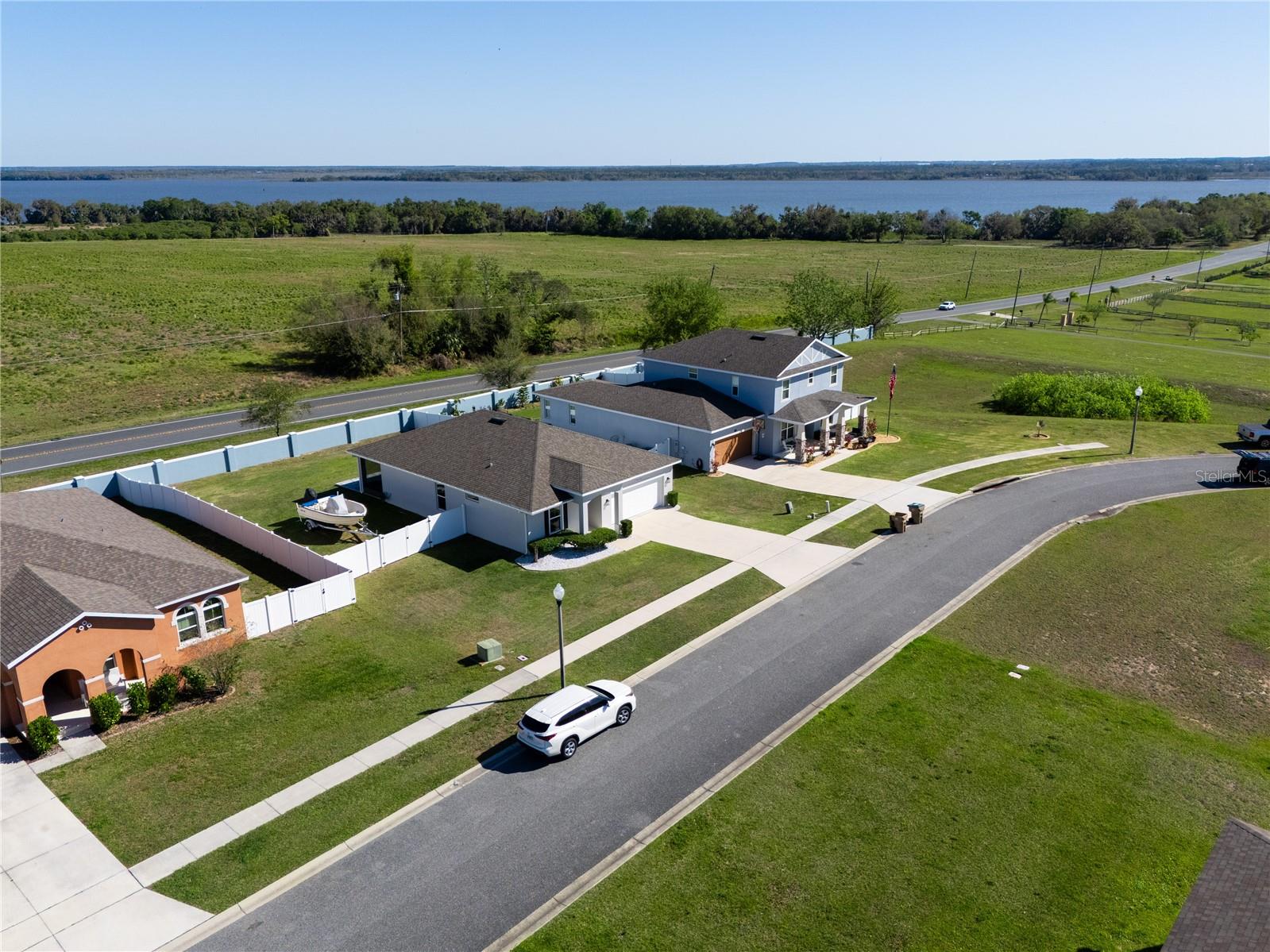 Better than new, this move-in-perfect home boasts numerous upgrades and breathtaking views that will leave you feeling like you're living on top of the world. Enjoy panoramic vistas for miles & miles, including a distant peak @ the lake. Inside, you’ll find luxury vinyl flooring, sleek quartz countertops, a stylish backsplash, and spacious 42-inch cabinets. The home also features a fully fenced backyard, providing privacy and security. Bright and airy, the open floor plan invites natural light to flood the space, creating a warm and welcoming atmosphere. Relax on the covered back porch or patio, where you'll always feel a cool breeze high up on the hill. Off the patio is a gravel fire pit area perfect for a relaxing evening by the fire or for marshmallow roasts! Community amenities include a sparkling pool and playground, and you’re just 1.7 miles from public access & boat ramp at Marsh on Lake Yale, one of Florida's top bass fishing destinations. Built for energy efficiency with double-paned glass windows and sturdy concrete block construction, this home offers both comfort and sustainability. Conveniently located close to The Attractions, The Villages, Eustis, Mount Dora, and greater Orlando, this is the perfect blend of modern living and serene nature. Paradise awaits. Welcome home!