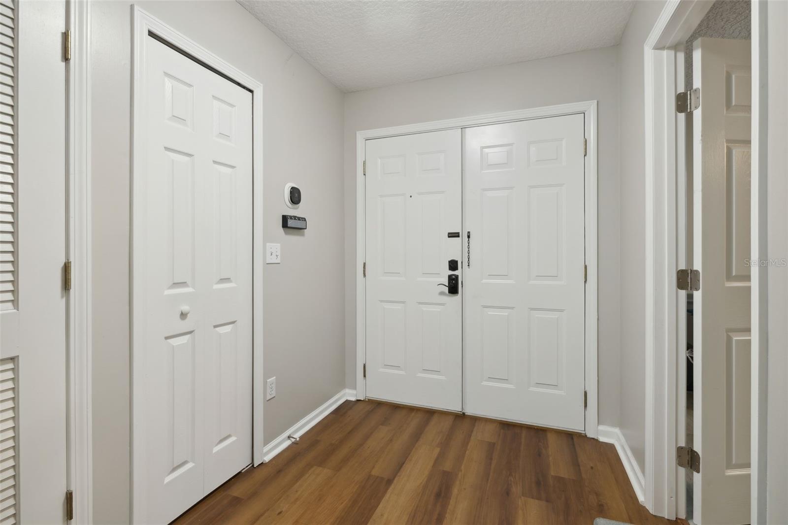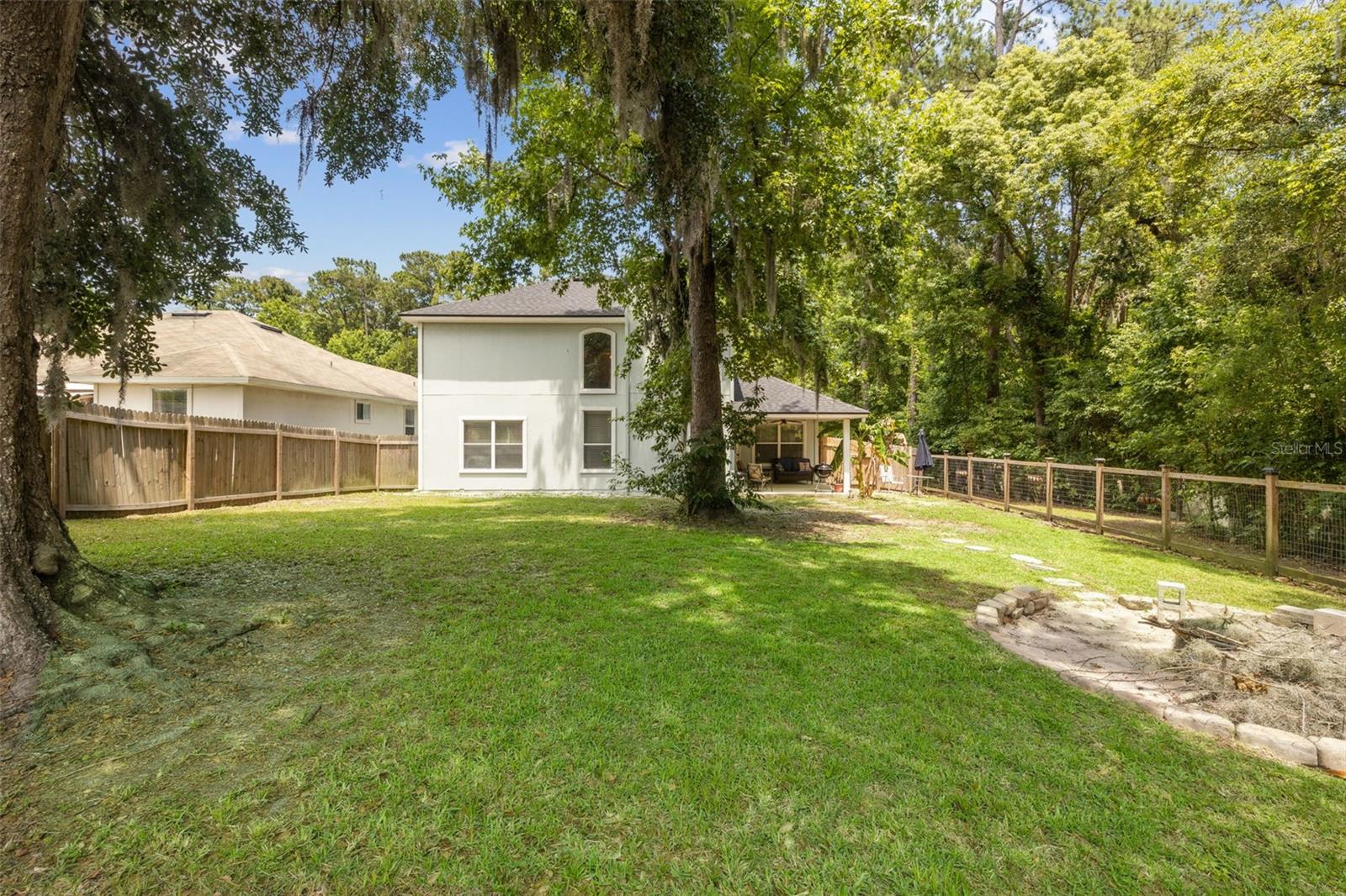 Welcome to this stunning 4-bedroom, 2.5-bathroom single-family home nestled in the desirable Hickory Knolls Estates neighborhood. This home greets you with a charming double front door and features a spacious 2-car garage. The primary bedroom is conveniently located downstairs, offering privacy and ease. The living room boasts soaring high ceilings and large windows, flooding the space with natural light and creating an airy, open feel. The eat-in kitchen includes a breakfast bar and pantry closet, flowing seamlessly into the living area where a cozy fireplace awaits. Step outside to a covered back patio, perfect for entertaining, complete with a pet-friendly doggy door and a fenced yard featuring a firepit. A flagpole in the front yard adds a touch of patriotic charm. Situated in Green Cove Springs, Clay County, this home is close to the Clay Theatre, public pier, pool and more, providing plenty of entertainment.