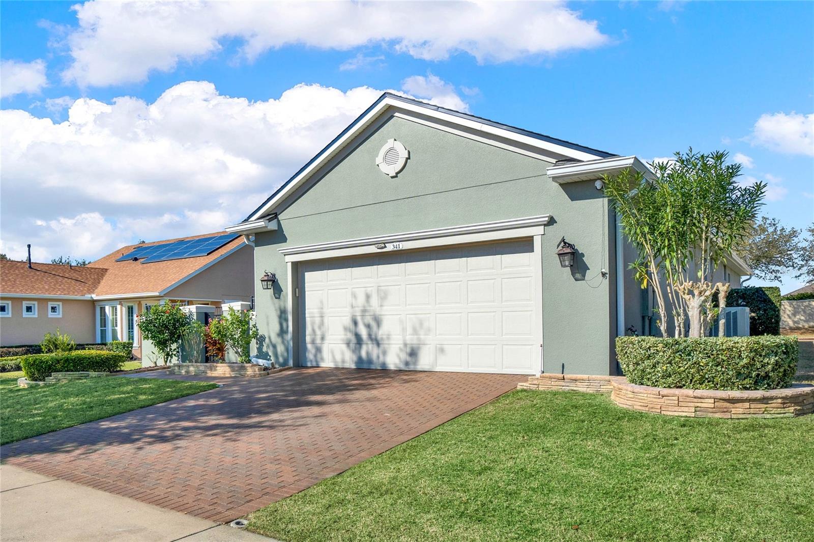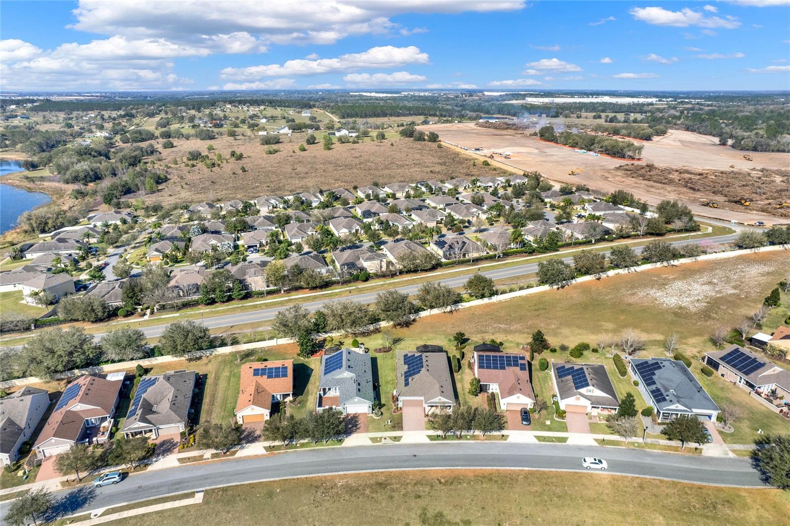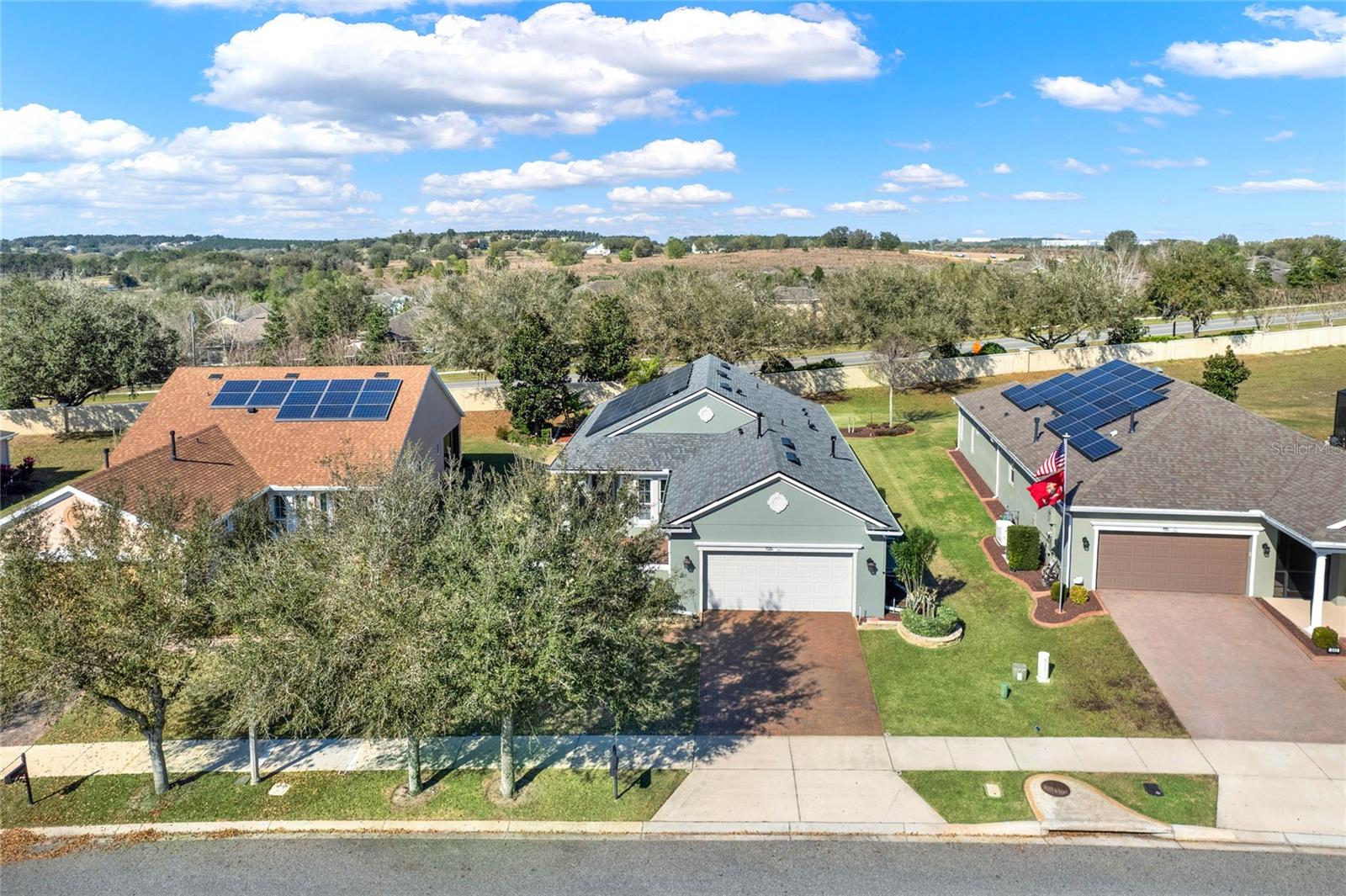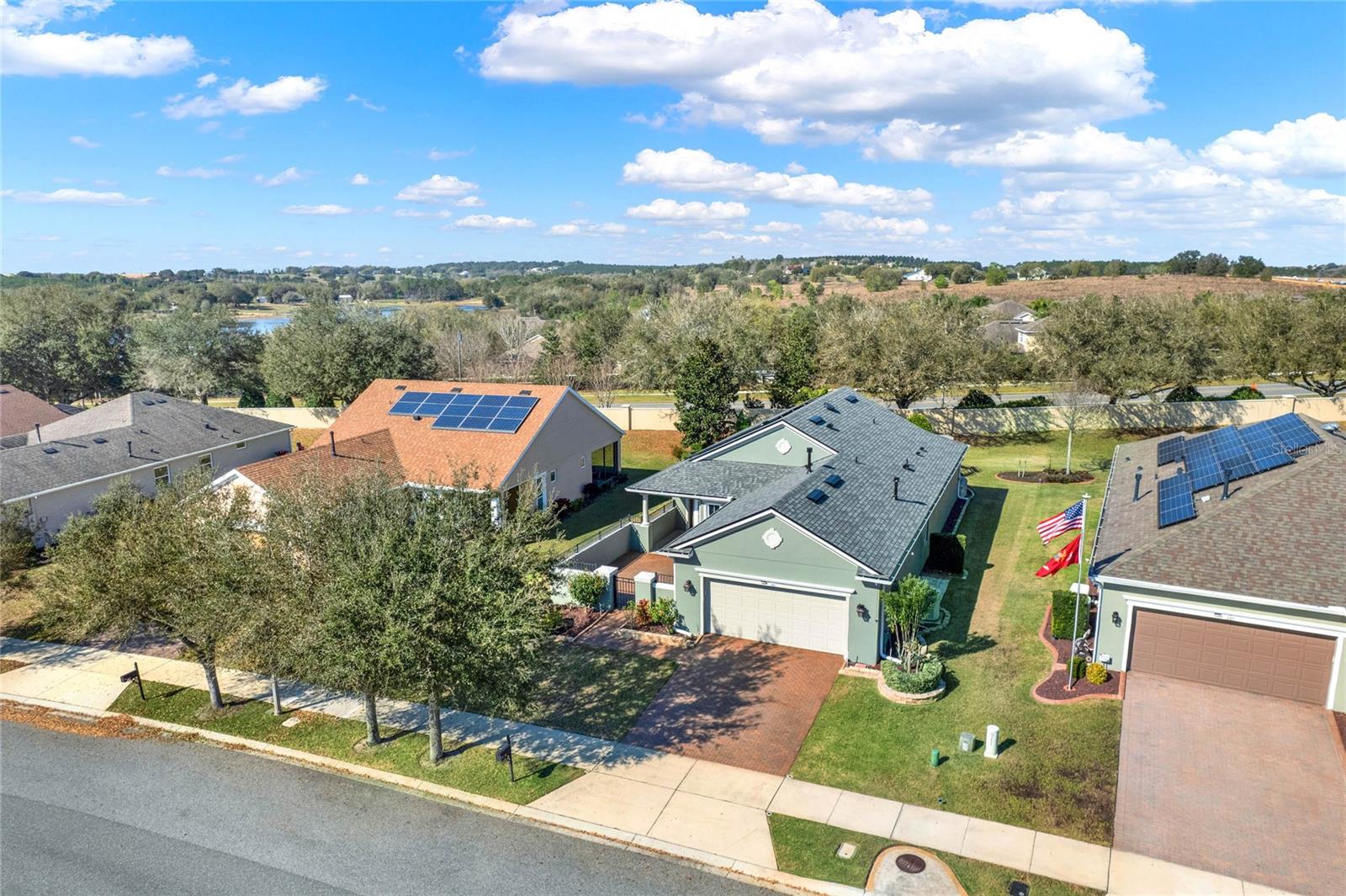**ONE OR MORE PHOTOS HAVE BEEN VIRTUALLY STAGED**DON'T MISS OUT on the opportunity to live in a FULL SOLAR home in the highly sought after 55Plus community of Trilogy. This 2 bed/2 bath with owner's retreat/den home is a Gardenia floor plan with extended garage. The home sits on a perched PREMIUM lot with front VIEWS of a huge open green space; enjoy a cup of coffee and read the paper or ipad with gorgeous views of the sunrises, unbelievalbe rainbows and have a front row seat to Cape Canaveral's shuttle launches. Open kitchen features a center island, premium wood cabinets w/undermount lighting & upgraded Jenn-Air appliances. The primary bedroom retreat has access to a private office/den w/glass french doors and the ensuite bathroom has granite counters, dual sinks, large walk-in shower and walk-in closet. This home has a long list of improvements, but here are just a few: BRAND NEW ROOF installed Sept 2023, along with BRAND NEW TESLA SOLAR INVERTER, gutters, WATER HEATER(2022), glass enclosed lanai w/portable AC unit, bird cage with retractable remote awning, owned water softener, new exterior paint, freshly painted garage walls, including epoxy floors, with additional overhead storage and utility sink and all pavers professionally pressure washed and sealed. This home has an incredible back outdoor living space, including large paved courtyard area with sitting wall and arbor. The full solar along with tinted dual pane windows make this a very energy efficient home. HOA dues include Spectrum cable, high speed internet, land-line, security alarm monitoring, lawn maintenance, walking trail, dog park and a top notch amenities! The Magnola House is the hub of all activities including a restarant & bar, featuring happy hours, great food and entertainment. Enjoy the indoor/outdoor heated pool with plenty of shade for sun protection. State of the art fitness center and wellness programs, with fitness room offering an incredible variety of classes. The club also offers a Artisan studio, poker room, culinary kitchen, multipurpose room, movement studio, pickleball & bocce courts. More fun activities in the event center feature a huge entertainment venue with a stage and state-of-the-art sound and lighting systems; Enjoy concerts, shows, parties, dance clubs and more! Trilogy is located in Groveland, just 15 minutes from Clermont and under 30 mintures to Winter Garden. Just a few minutes from the turnpike for convenient access to theme parks, beaches, airport & Orlando! Come live the Good Life!! ***PLEASE CHECK OUT THE VIDEO!***