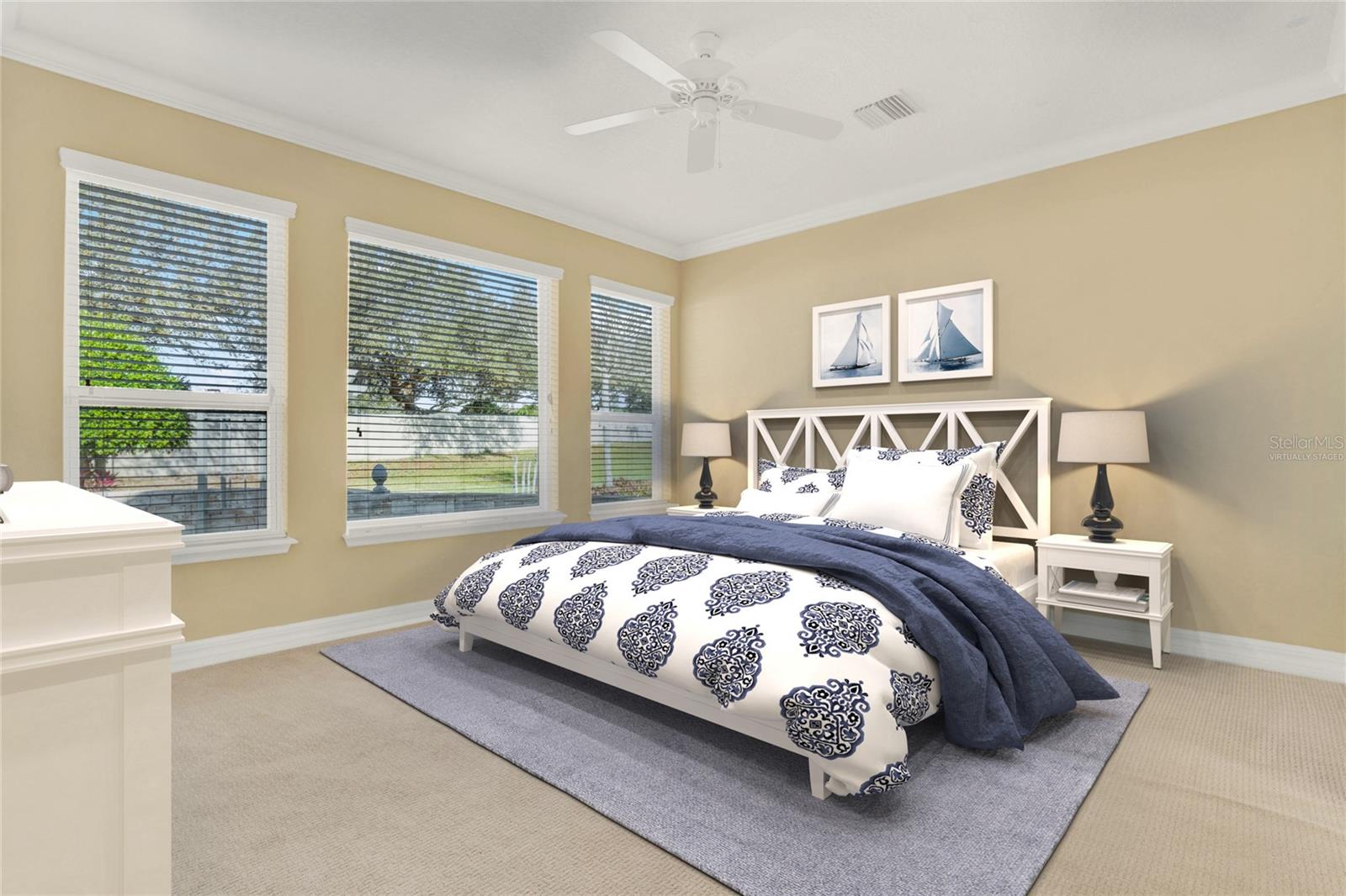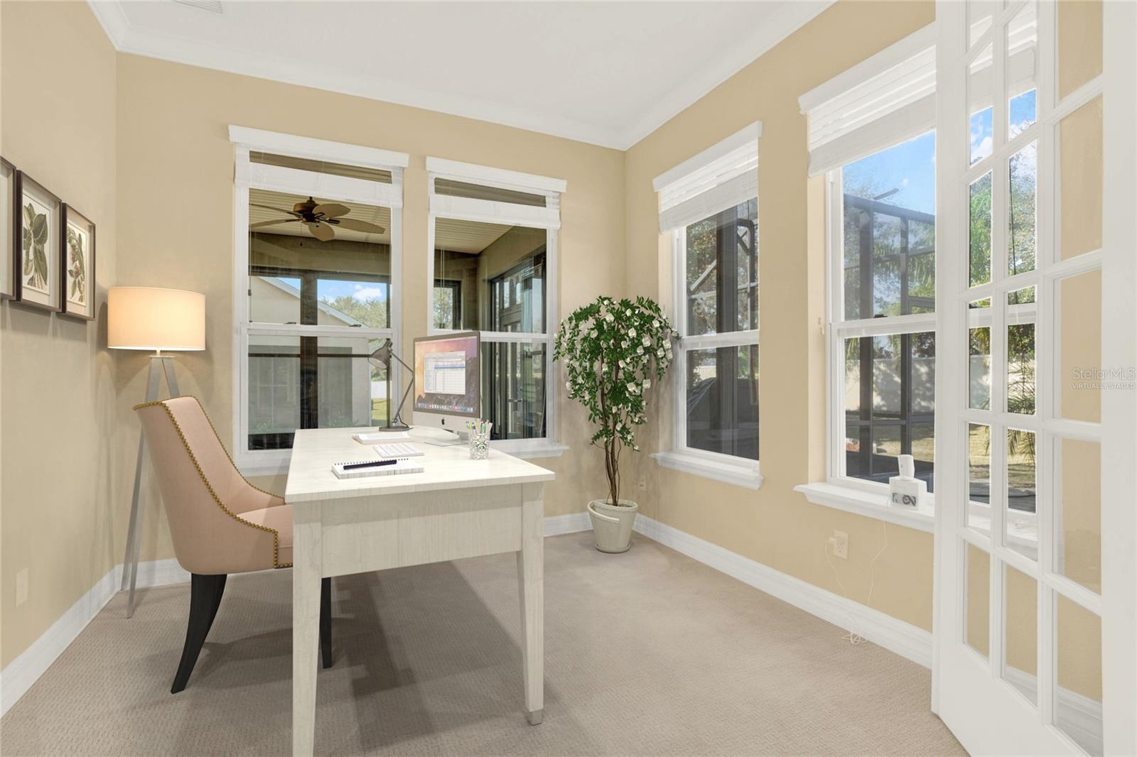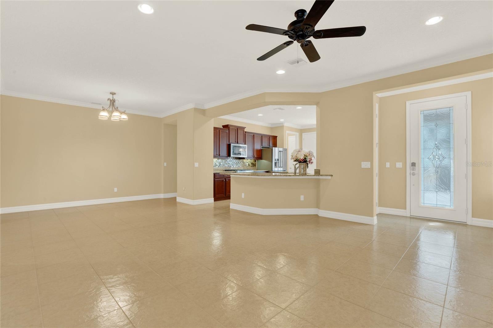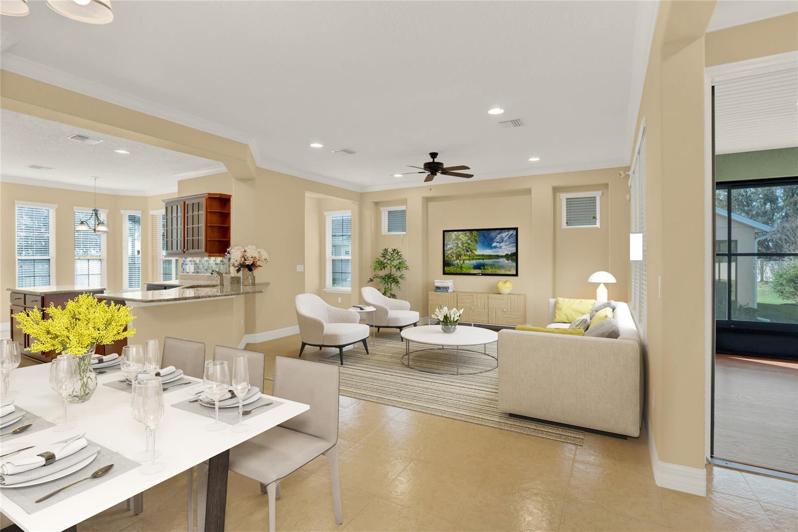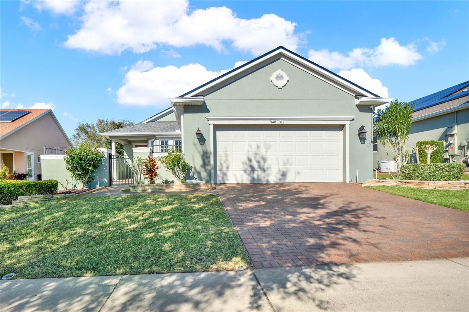 **ONE OR MORE PHOTOS HAVE BEEN VIRTUALLY STAGED**DON'T MISS OUT on the opportunity to live in a FULL SOLAR home in the highly sought after 55Plus community of Trilogy. This 2 bed/2 bath with owner's retreat/den home is a Gardenia floor plan with extended garage. The home sits on a perched PREMIUM lot with front VIEWS of a huge open green space; enjoy a cup of coffee and read the paper or ipad with gorgeous views of the sunrises, unbelievalbe rainbows and have a front row seat to Cape Canaveral's shuttle launches. Open kitchen features a center island, premium wood cabinets w/undermount lighting & upgraded Jenn-Air appliances. The primary bedroom retreat has access to a private office/den w/glass french doors and the ensuite bathroom has granite counters, dual sinks, large walk-in shower and walk-in closet. This home has a long list of improvements, but here are just a few: BRAND NEW ROOF installed Sept 2023, along with BRAND NEW TESLA SOLAR INVERTER, gutters, WATER HEATER(2022), glass enclosed lanai w/portable AC unit, bird cage with retractable remote awning, owned water softener, new exterior paint, freshly painted garage walls, including epoxy floors, with additional overhead storage and utility sink and all pavers professionally pressure washed and sealed. This home has an incredible back outdoor living space, including large paved courtyard area with sitting wall and arbor. The full solar along with tinted dual pane windows make this a very energy efficient home. HOA dues include Spectrum cable, high speed internet, land-line, security alarm monitoring, lawn maintenance, walking trail, dog park and a top notch amenities! The Magnola House is the hub of all activities including a restarant & bar, featuring happy hours, great food and entertainment. Enjoy the indoor/outdoor heated pool with plenty of shade for sun protection. State of the art fitness center and wellness programs, with fitness room offering an incredible variety of classes. The club also offers a Artisan studio, poker room, culinary kitchen, multipurpose room, movement studio, pickleball & bocce courts. More fun activities in the event center feature a huge entertainment venue with a stage and state-of-the-art sound and lighting systems; Enjoy concerts, shows, parties, dance clubs and more! Trilogy is located in Groveland, just 15 minutes from Clermont and under 30 mintures to Winter Garden. Just a few minutes from the turnpike for convenient access to theme parks, beaches, airport & Orlando! Come live the Good Life!! ***PLEASE CHECK OUT THE VIDEO!***