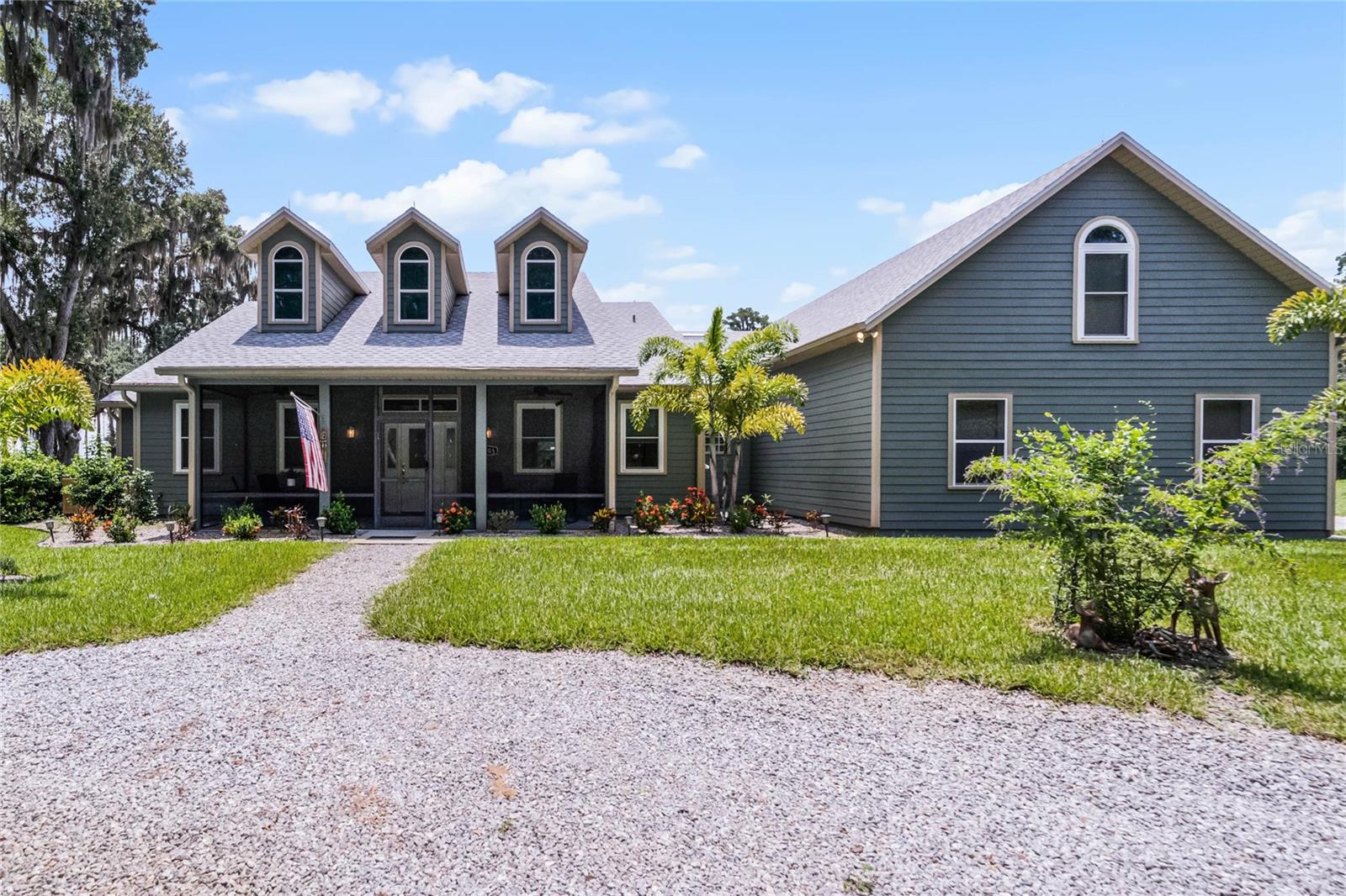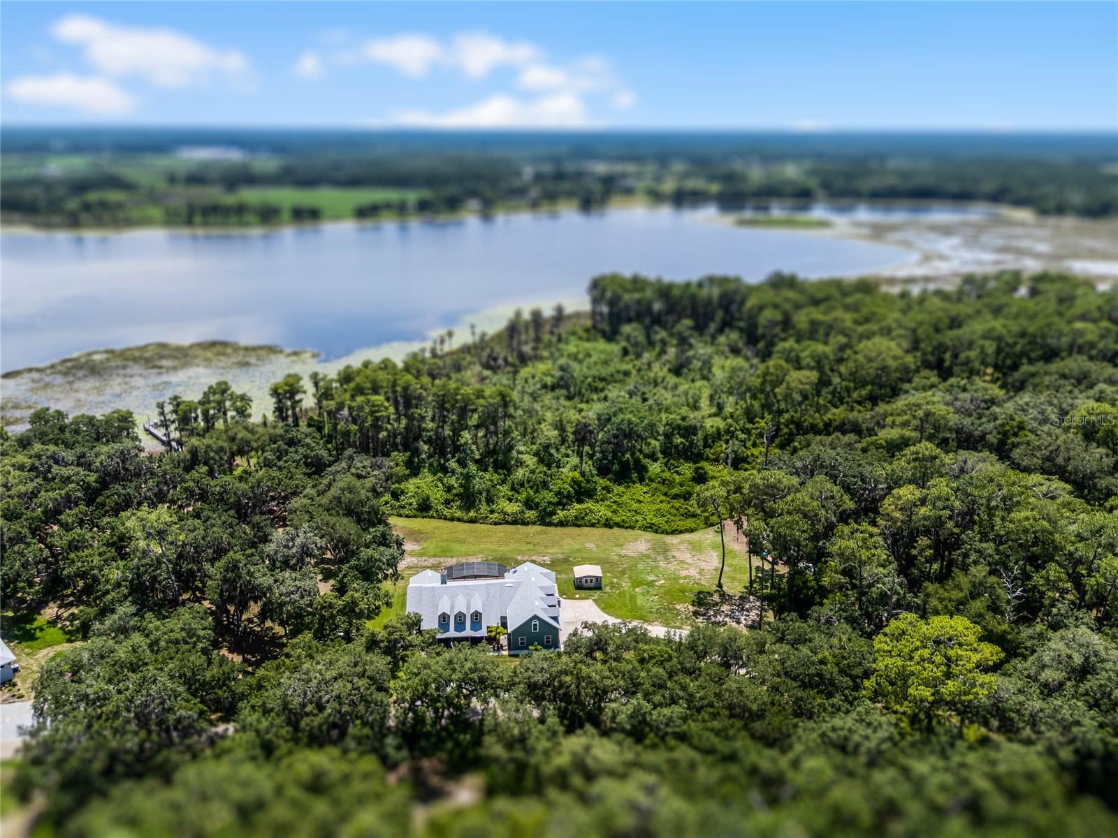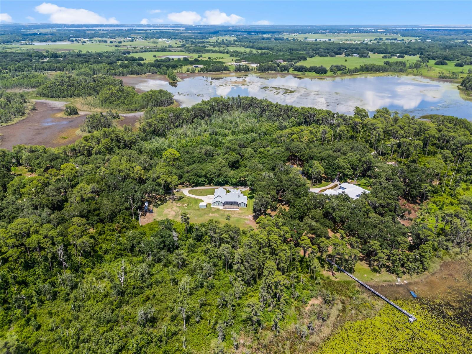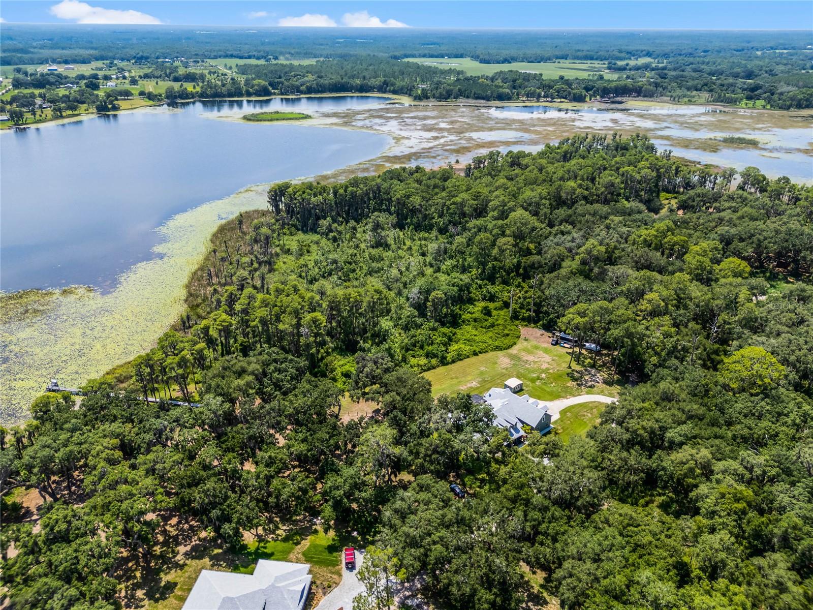 This beautiful island compound sits on nearly 12 acres in the middle of Pine Island Lake. The island only has six homesites, so the minute you cross the bridge and wind your way through the moss-filled Cypress trees on Skylark Lane, you feel like you are coming home to a private retreat. The 6-bedroom modern farmhouse has been completely updated and offers an open floorplan with tile flooring (no carpets here), contemporary fixtures and a cozy stone fireplace. The expansive kitchen features granite countertops, stainless appliances, a breakfast nook and a massive island with bar-top seating. This kitchen has so much storage that some cabinets may remain empty after you move in! Just off the living room, you can grill up dinner on the breezy lanai, with lots of room to entertain in the screened enclosure. The screened-in front porch would also be a nice spot for morning coffee. The backyard extends out to the lake via a 176-foot boardwalk. The amazing deck at the end of the boardwalk has water & elec service, along with two jet ski lifts. The property also includes an oversized storage shed, leaving room in the 3-car garage for your lake toys, cars and a workshop. When you enter the home through the garage, a convenient mudroom/drop-zone and full laundry room greet you to collect all your shoes, jackets and bags. The corner primary bedroom boasts a spa-like ensuite with a walk-in closet, dual sinks, a W/C and a huge custom shower with a rainfall showerhead. Storage galore, too! On the other side of the floorplan, there are three guest rooms and a hallway bathroom with double sinks and a separate shower/toilet room. At the top of the stairs, you’ll find a versatile loft area that could be a playroom, home office, gym or sixth bedroom. There’s also a bedroom and a full bathroom on this level, so the entire upstairs could be a private guest suite. Don’t forget about the upgrades that come with this waterfront property, like the whole home generator and 14 lightning rods. Even though this Pine Island Lake retreat may feel rural, you’re still only 10 mins from all the shopping & dining in downtown Groveland. This is a rare opportunity to secure a secluded slice of paradise in Central Florida! ***Roof 2023, Water Softener & Septic-pump 2024, AC 2021, Kitchen and Bathrooms 2022***