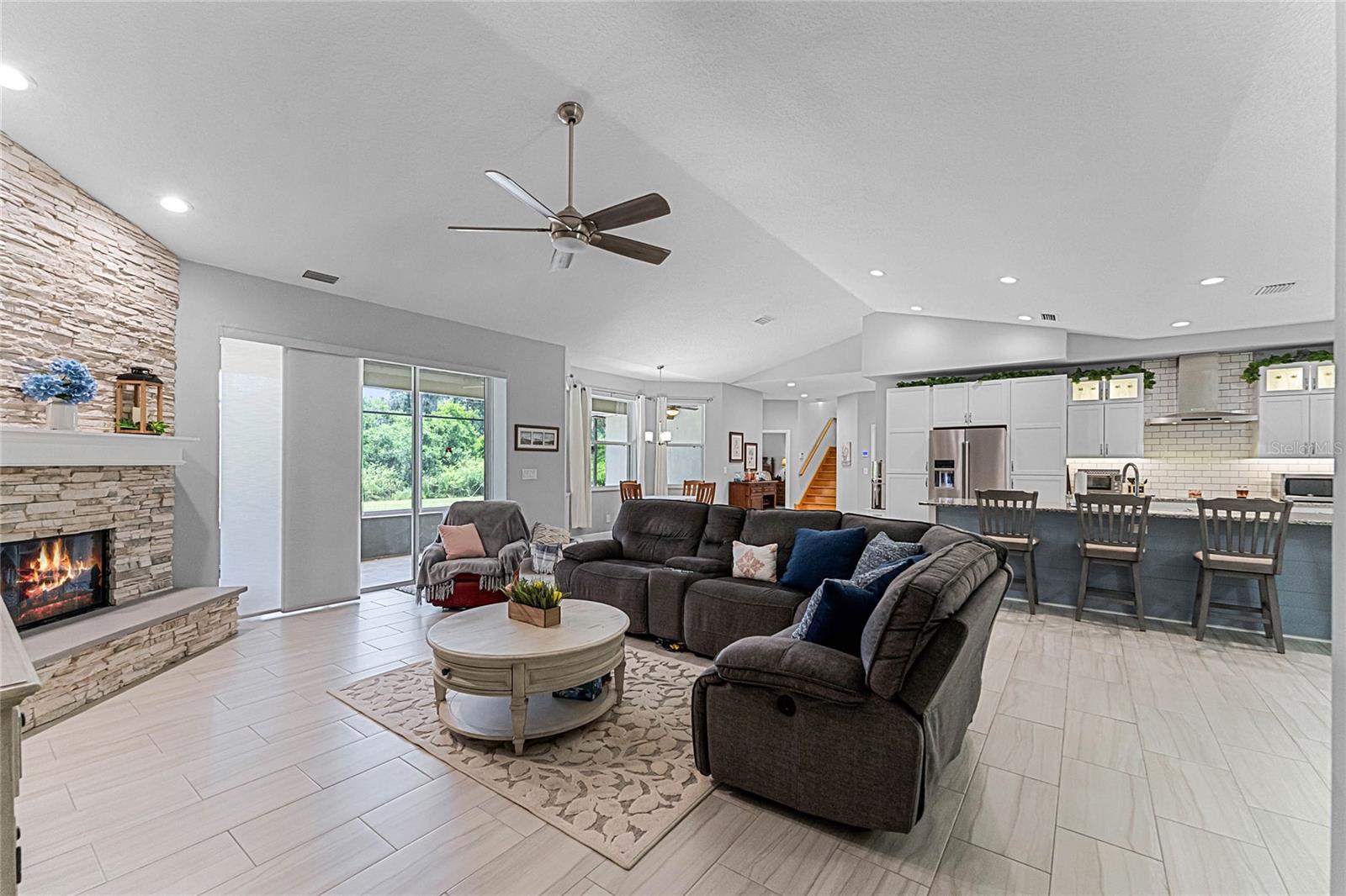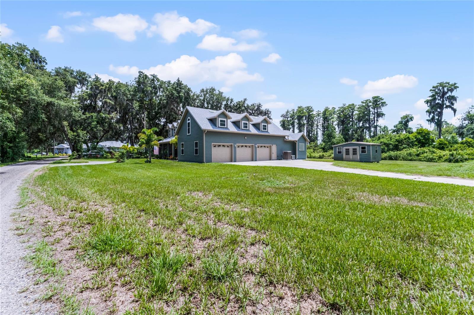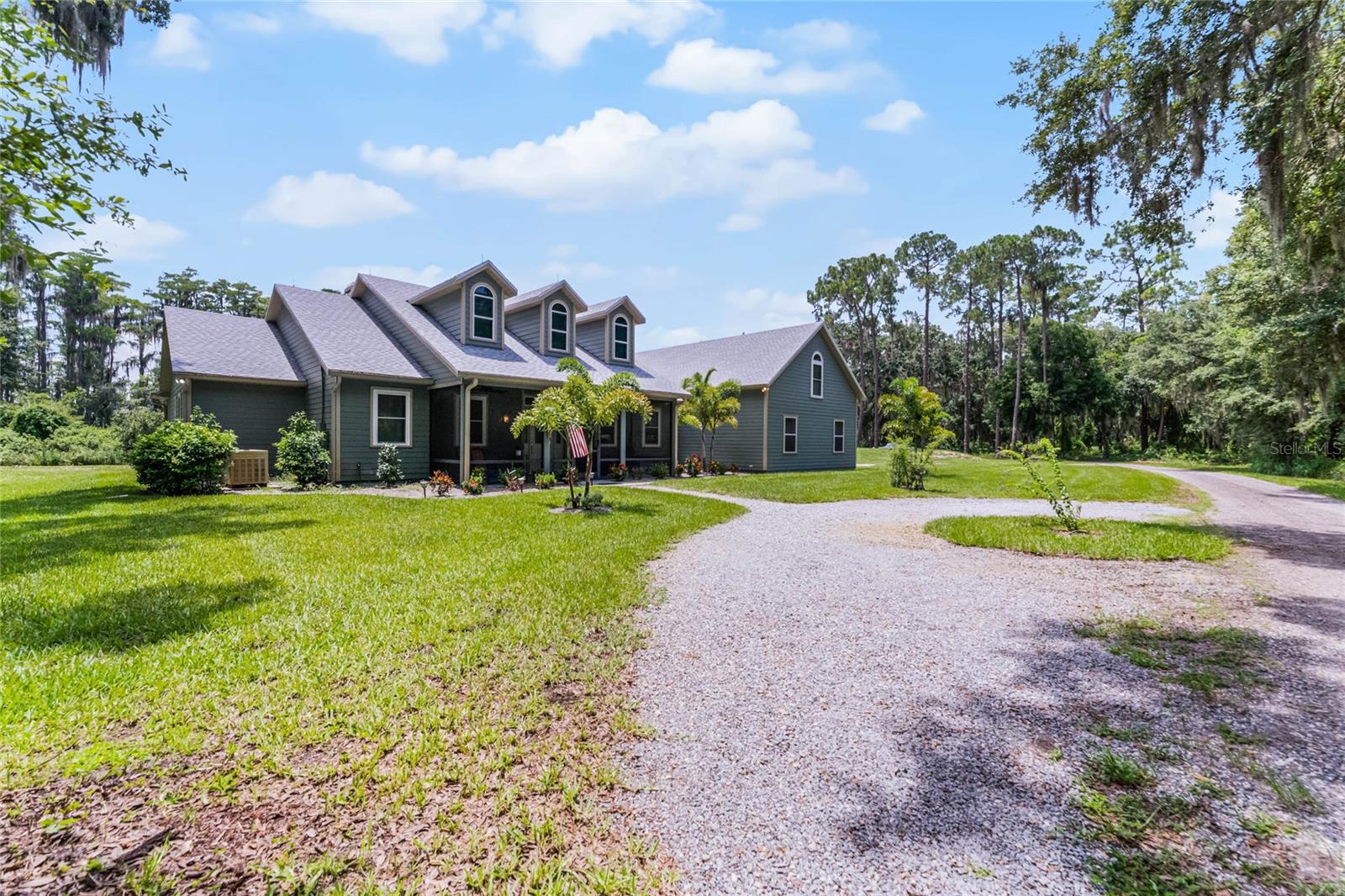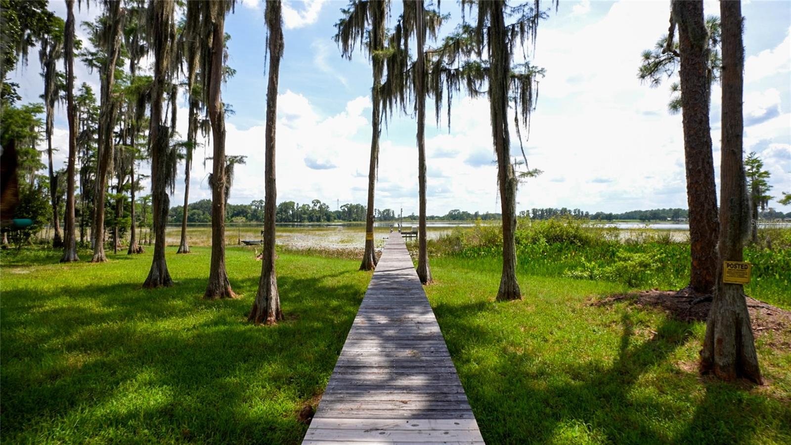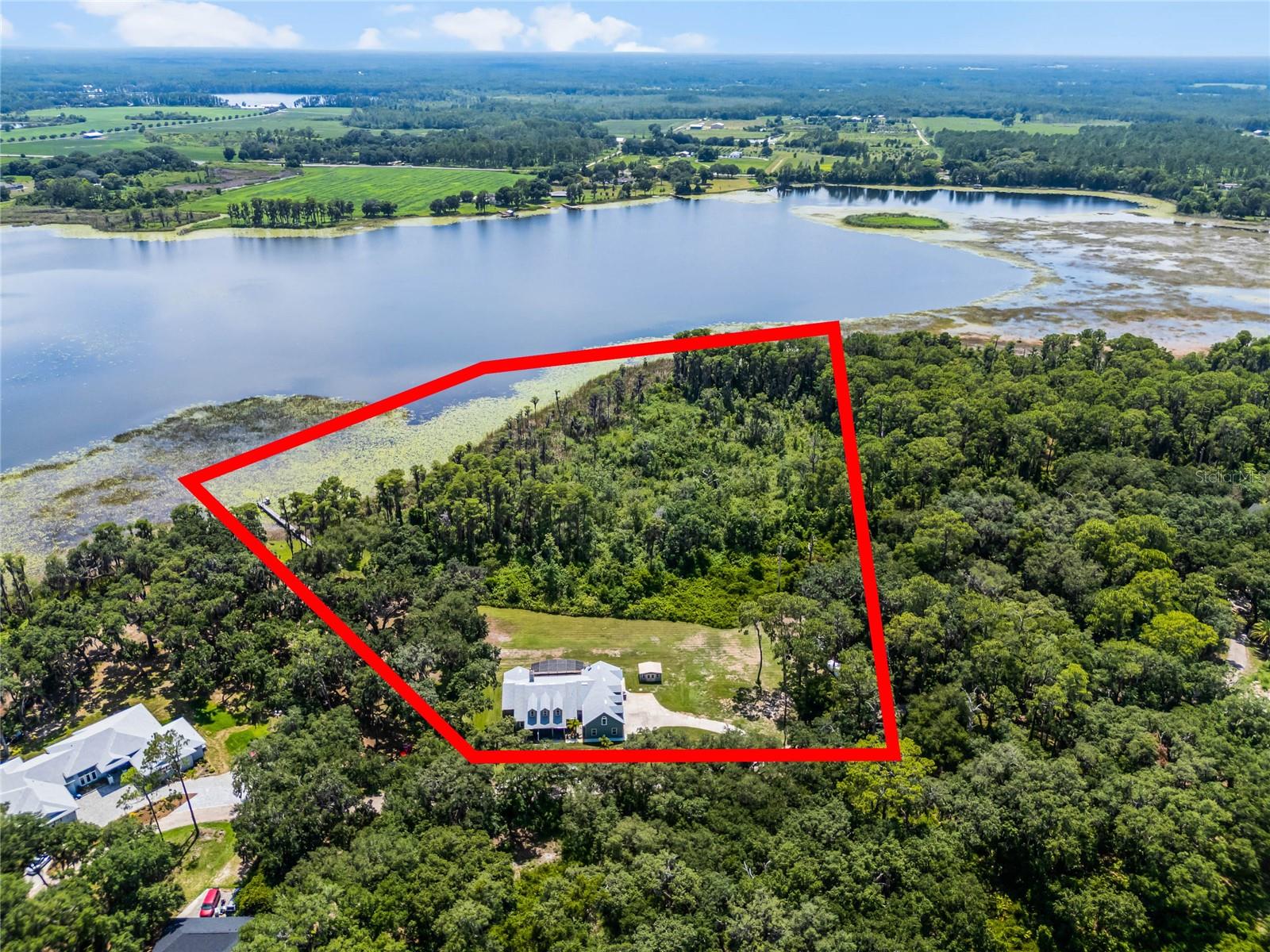 This beautiful island compound sits on nearly 12 acres in the middle of Pine Island Lake. The island only has six homesites, so the minute you cross the bridge and wind your way through the moss-filled Cypress trees on Skylark Lane, you feel like you are coming home to a private retreat. The 6-bedroom modern farmhouse has been completely updated and offers an open floorplan with tile flooring (no carpets here), contemporary fixtures and a cozy stone fireplace. The expansive kitchen features granite countertops, stainless appliances, a breakfast nook and a massive island with bar-top seating. This kitchen has so much storage that some cabinets may remain empty after you move in! Just off the living room, you can grill up dinner on the breezy lanai, with lots of room to entertain in the screened enclosure. The screened-in front porch would also be a nice spot for morning coffee. The backyard extends out to the lake via a 176-foot boardwalk. The amazing deck at the end of the boardwalk has water & elec service, along with two jet ski lifts. The property also includes an oversized storage shed, leaving room in the 3-car garage for your lake toys, cars and a workshop. When you enter the home through the garage, a convenient mudroom/drop-zone and full laundry room greet you to collect all your shoes, jackets and bags. The corner primary bedroom boasts a spa-like ensuite with a walk-in closet, dual sinks, a W/C and a huge custom shower with a rainfall showerhead. Storage galore, too! On the other side of the floorplan, there are three guest rooms and a hallway bathroom with double sinks and a separate shower/toilet room. At the top of the stairs, you’ll find a versatile loft area that could be a playroom, home office, gym or sixth bedroom. There’s also a bedroom and a full bathroom on this level, so the entire upstairs could be a private guest suite. Don’t forget about the upgrades that come with this waterfront property, like the whole home generator and 14 lightning rods. Even though this Pine Island Lake retreat may feel rural, you’re still only 10 mins from all the shopping & dining in downtown Groveland. This is a rare opportunity to secure a secluded slice of paradise in Central Florida! ***Roof 2023, Water Softener & Septic-pump 2024, AC 2021, Kitchen and Bathrooms 2022***