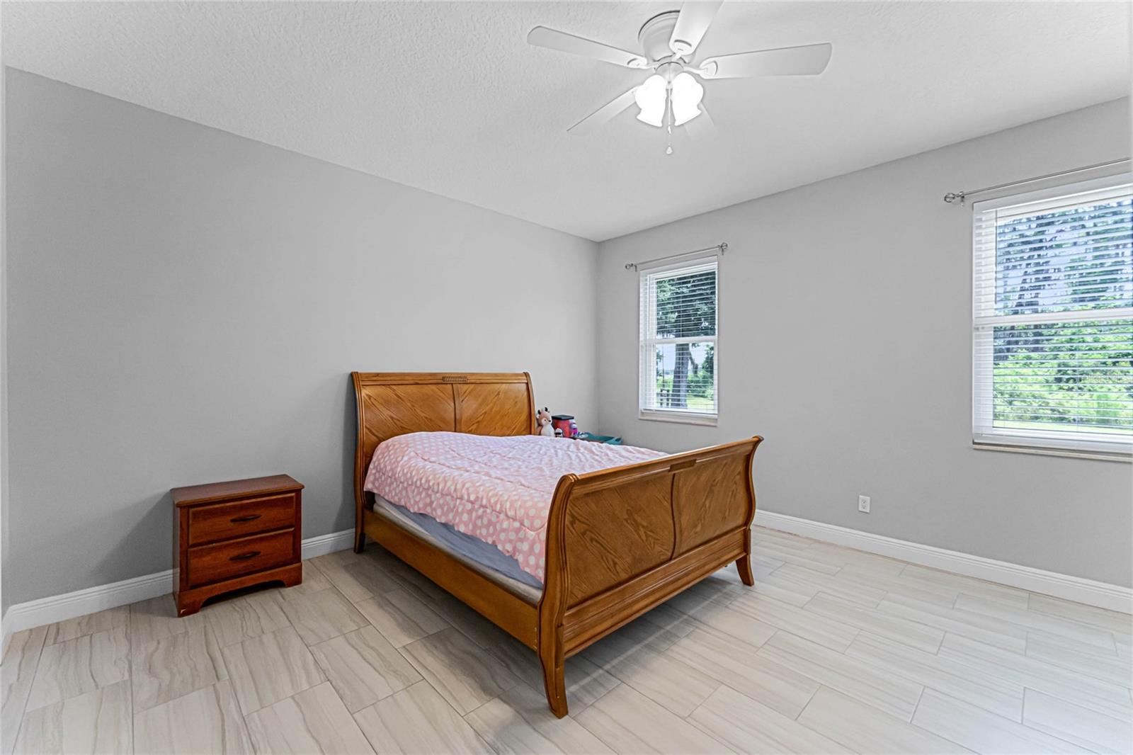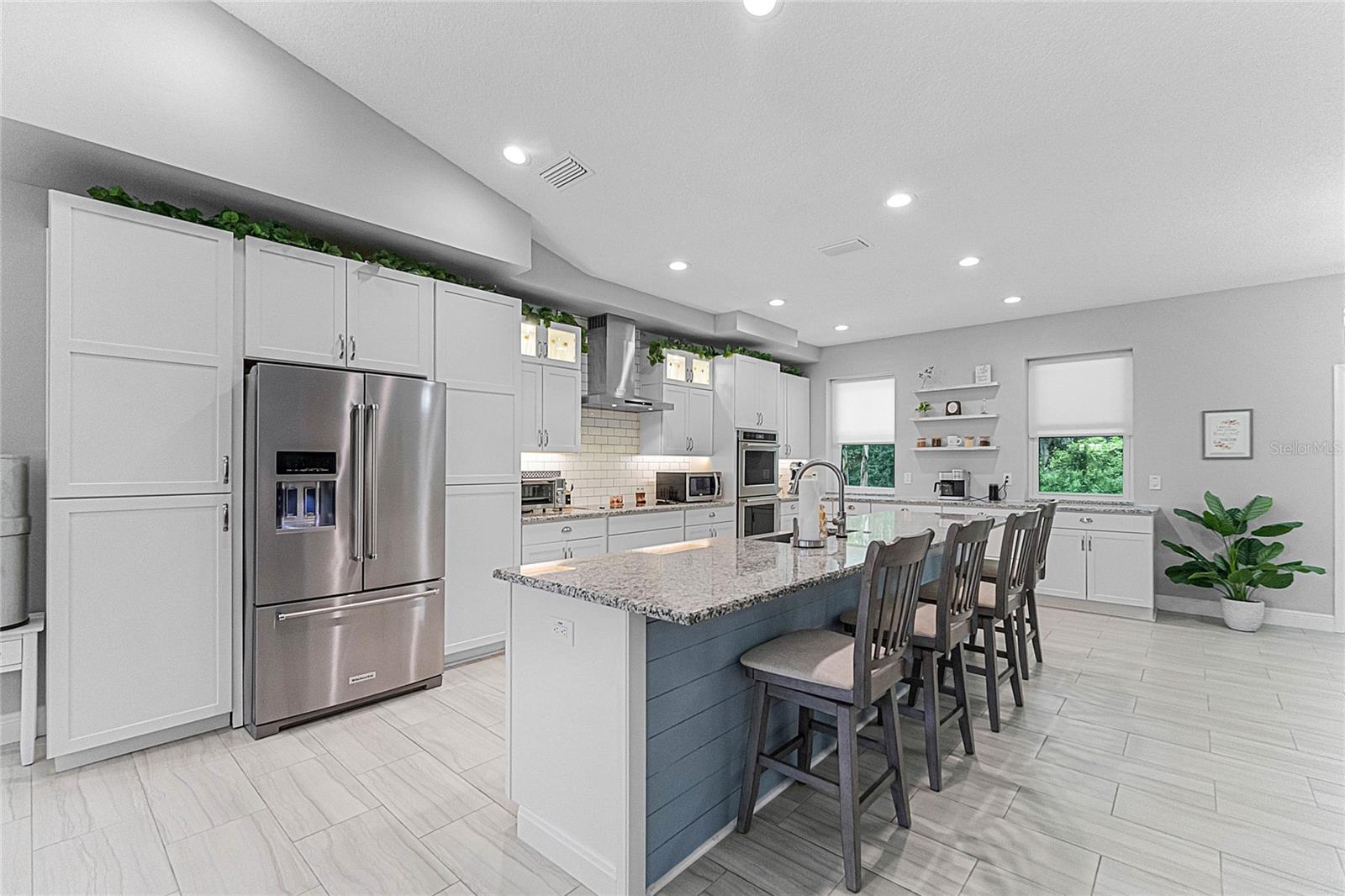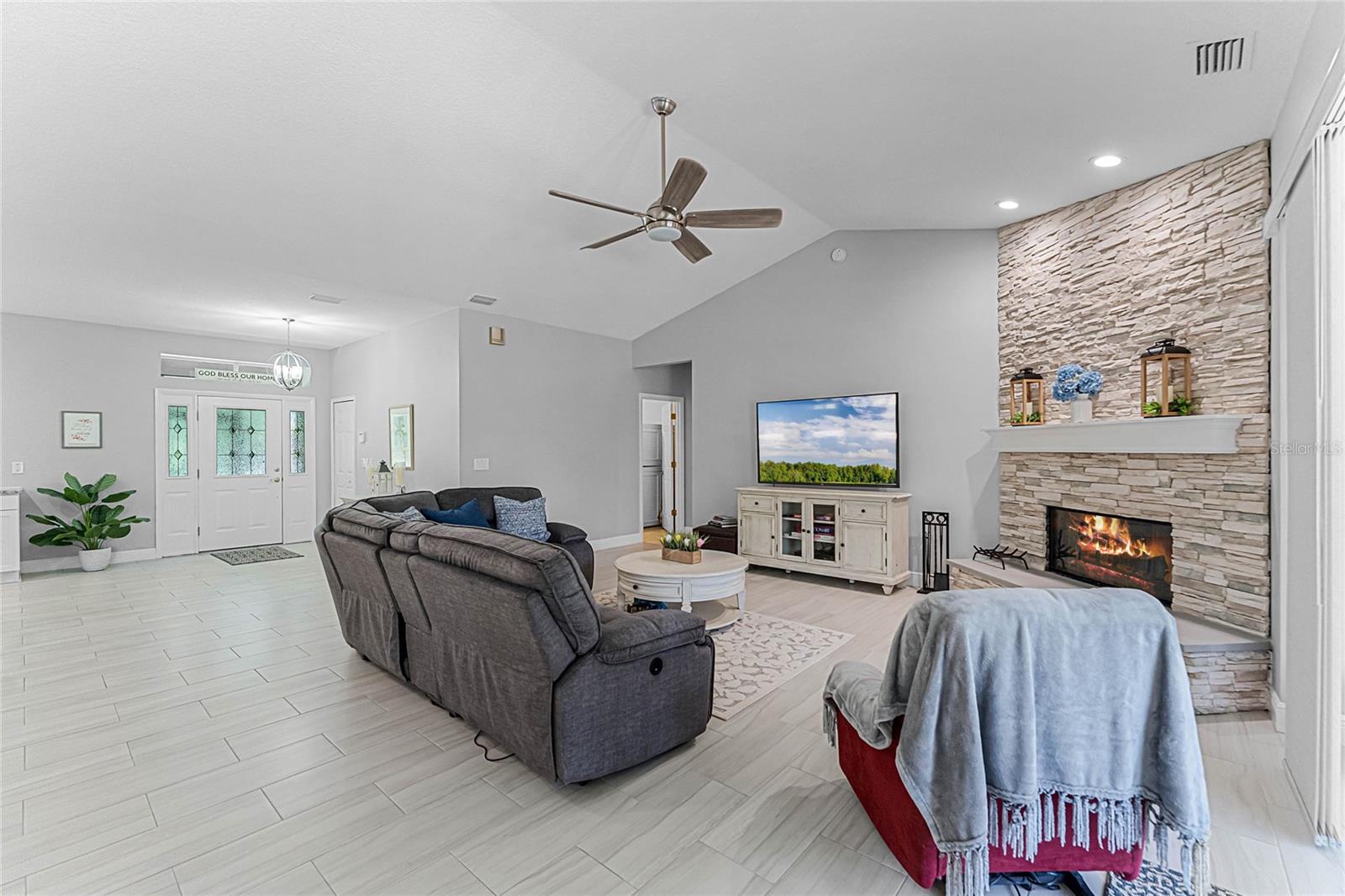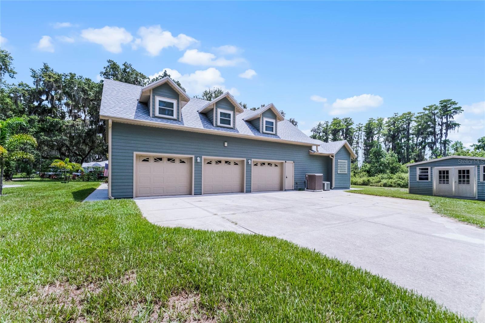 This beautiful island compound sits on nearly 12 acres in the middle of Pine Island Lake. The island only has six homesites, so the minute you cross the bridge and wind your way through the moss-filled Cypress trees on Skylark Lane, you feel like you are coming home to a private retreat. The 6-bedroom modern farmhouse has been completely updated and offers an open floorplan with tile flooring (no carpets here), contemporary fixtures and a cozy stone fireplace. The expansive kitchen features granite countertops, stainless appliances, a breakfast nook and a massive island with bar-top seating. This kitchen has so much storage that some cabinets may remain empty after you move in! Just off the living room, you can grill up dinner on the breezy lanai, with lots of room to entertain in the screened enclosure. The screened-in front porch would also be a nice spot for morning coffee. The backyard extends out to the lake via a 176-foot boardwalk. The amazing deck at the end of the boardwalk has water & elec service, along with two jet ski lifts. The property also includes an oversized storage shed, leaving room in the 3-car garage for your lake toys, cars and a workshop. When you enter the home through the garage, a convenient mudroom/drop-zone and full laundry room greet you to collect all your shoes, jackets and bags. The corner primary bedroom boasts a spa-like ensuite with a walk-in closet, dual sinks, a W/C and a huge custom shower with a rainfall showerhead. Storage galore, too! On the other side of the floorplan, there are three guest rooms and a hallway bathroom with double sinks and a separate shower/toilet room. At the top of the stairs, you’ll find a versatile loft area that could be a playroom, home office, gym or sixth bedroom. There’s also a bedroom and a full bathroom on this level, so the entire upstairs could be a private guest suite. Don’t forget about the upgrades that come with this waterfront property, like the whole home generator and 14 lightning rods. Even though this Pine Island Lake retreat may feel rural, you’re still only 10 mins from all the shopping & dining in downtown Groveland. This is a rare opportunity to secure a secluded slice of paradise in Central Florida! ***Roof 2023, Water Softener & Septic-pump 2024, AC 2021, Kitchen and Bathrooms 2022***