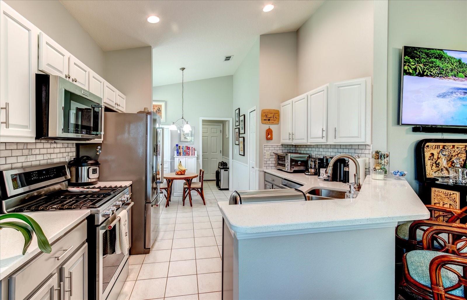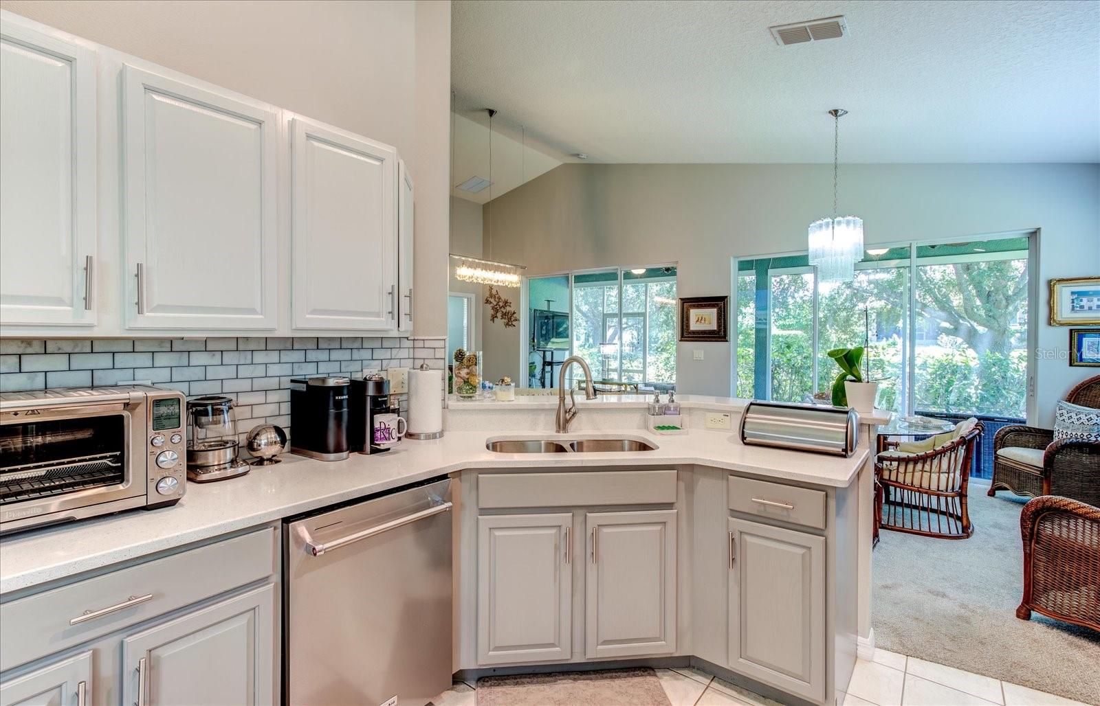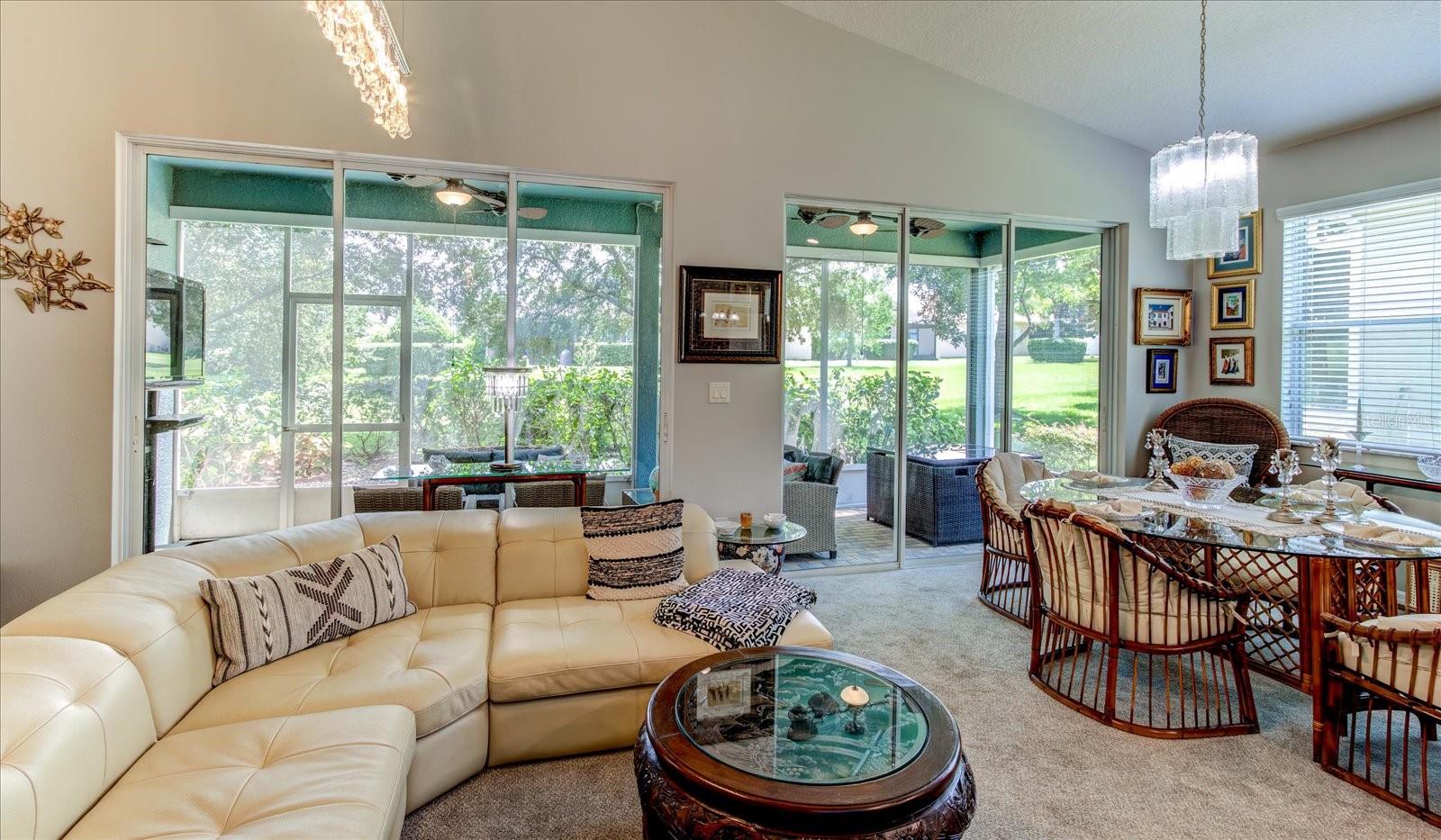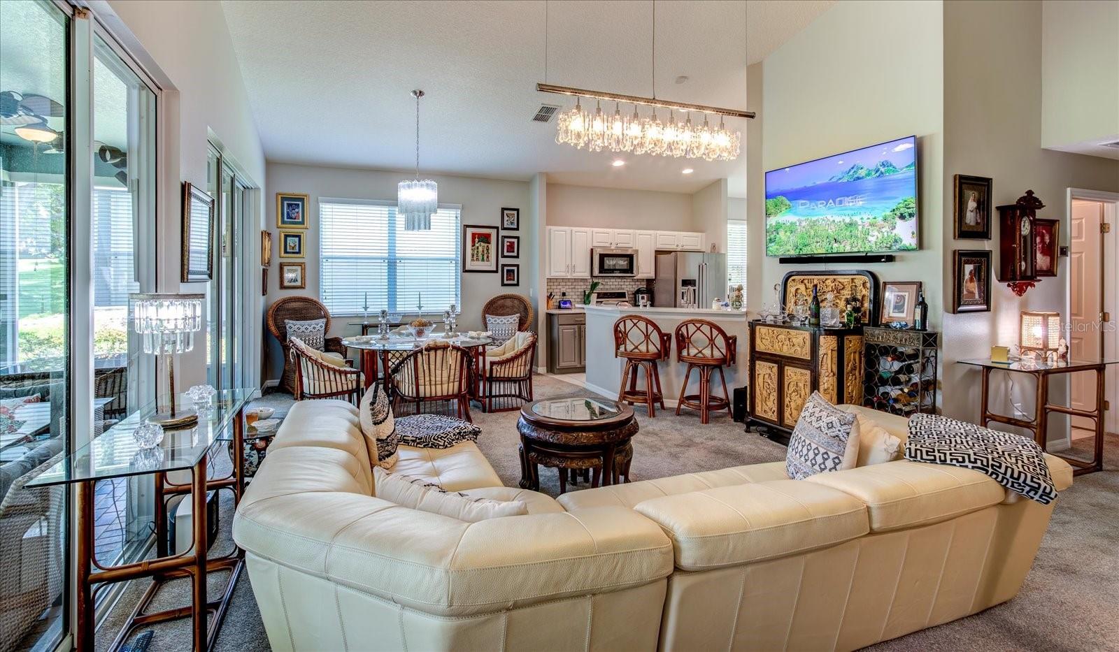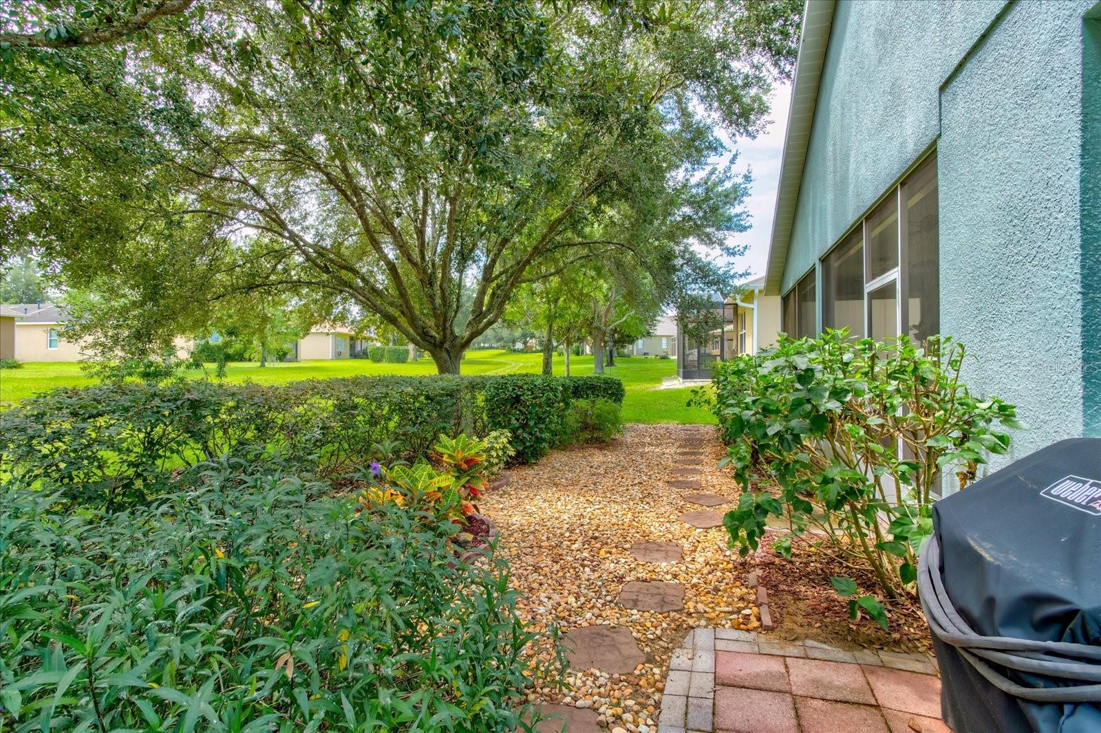 (Central Florida) Exceptional Home in a Premier 55+ Trilogy Cascades of Groveland Community with FIVE STAR AMENITIES You will fall in love with this lovely contemporary three-bedroom/den, two-bathroom residence nestled on a generously sized lot, that boasts a lush backyard green belt and ultimate privacy from your neighbors. Located on a cul-de-sac street also adds additional privacy from the rest of the world. As you step into the inviting foyer, you will appreciate the open design of the OPEN FLOOR PLAN which lends itself to a feeling of a much larger home. The view of the lovely PARK LIKE SETTING captures your attention and makes you think about the days you could spend just relaxing on your screen enclosed patio. Enjoy the ambiance of the birds chirping and the lush, landscaped greenbelt. The open design features a split floor plan, with the second and third bedrooms located at the front, conveniently situated near a bathroom for additional privacy. One of these bedrooms can easily be transformed into a home office or den, offering versatility to suit your needs. The interior showcases a neutral palette, enhancing its appeal for every potential interior design that the buyer may wish to embrace. The upgraded kitchen is a true highlight, featuring brand NEW KITCHEN AID APPLIANCES, exquisite QUARTZ countertops, a stylish backsplash, and beautifully painted cabinetry that adds a designer touch. Plus, the kitchen is not only aesthetically pleasing but also highly functional, offering an eat-in area ideal for casual dining or planning your day's activities. The spacious living room seamlessly connects to the dining area, creating an inviting space for entertaining family and friends. Dual triple sliders lead from these living spaces to the lanai, extending your entertaining area outdoors with ELECTRICAL REMOTE-CONTROL SHADES add to the luxury and appeal for this home. Owner’s retreat is perfect for king size bed set and has a lovely view of the lovely, landscaped backyard. The inviting master bathroom features His/Her vanities with granite countertops, separate garden tub, and a separate enclosed water closet. Equipped with natural gas and the new air conditioner (2022) harmonizes comfort with modern convenience. The two-car garage includes overhead storage, ready to accommodate your vehicles and more. Community Amenities The HOA fees cover a range of amenities, including lawn and shrub maintenance, basic cable, internet with a landline, home security monitoring, streetlights, and access to the clubhouse amenities. AMENITIES FOR EVERYONE: Trilogy Cascades of Groveland is a beautiful, guard-gated community strategically centered around the magnificent 57000 square foot Magnolia House clubhouse where you can enjoy wonderful live entertainment and parties with your friends. Residents enjoy a wealth of amenities, including a full-service restaurant and bar, two gyms, indoor and outdoor pools, spas, a dog park, tennis, pickleball, bocce ball, and scenic walking trails. Additional features include a demonstration kitchen, massage room, dance studio, poker lounge, golf simulator and billiards. There is an activity for everyone one to enjoy. Come live the lifestyle you have always dreamed about!