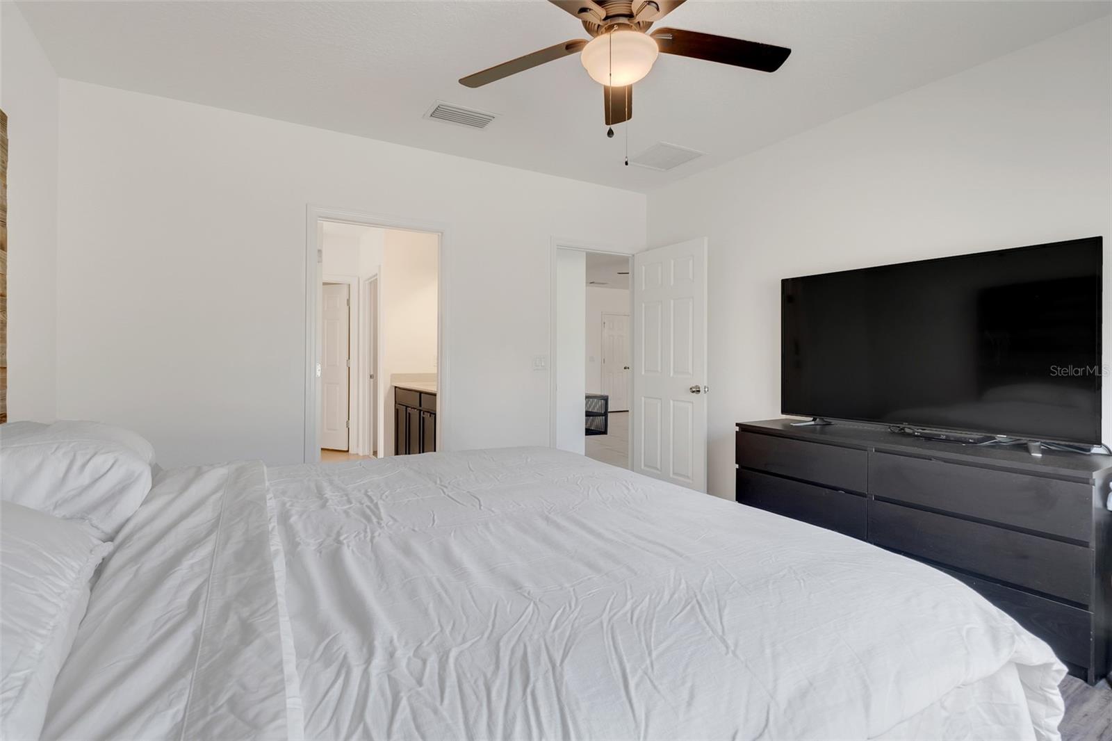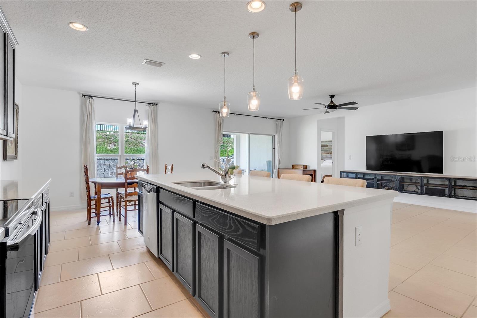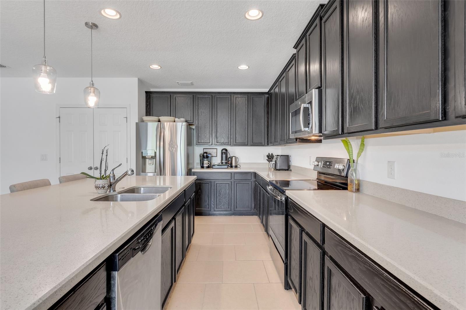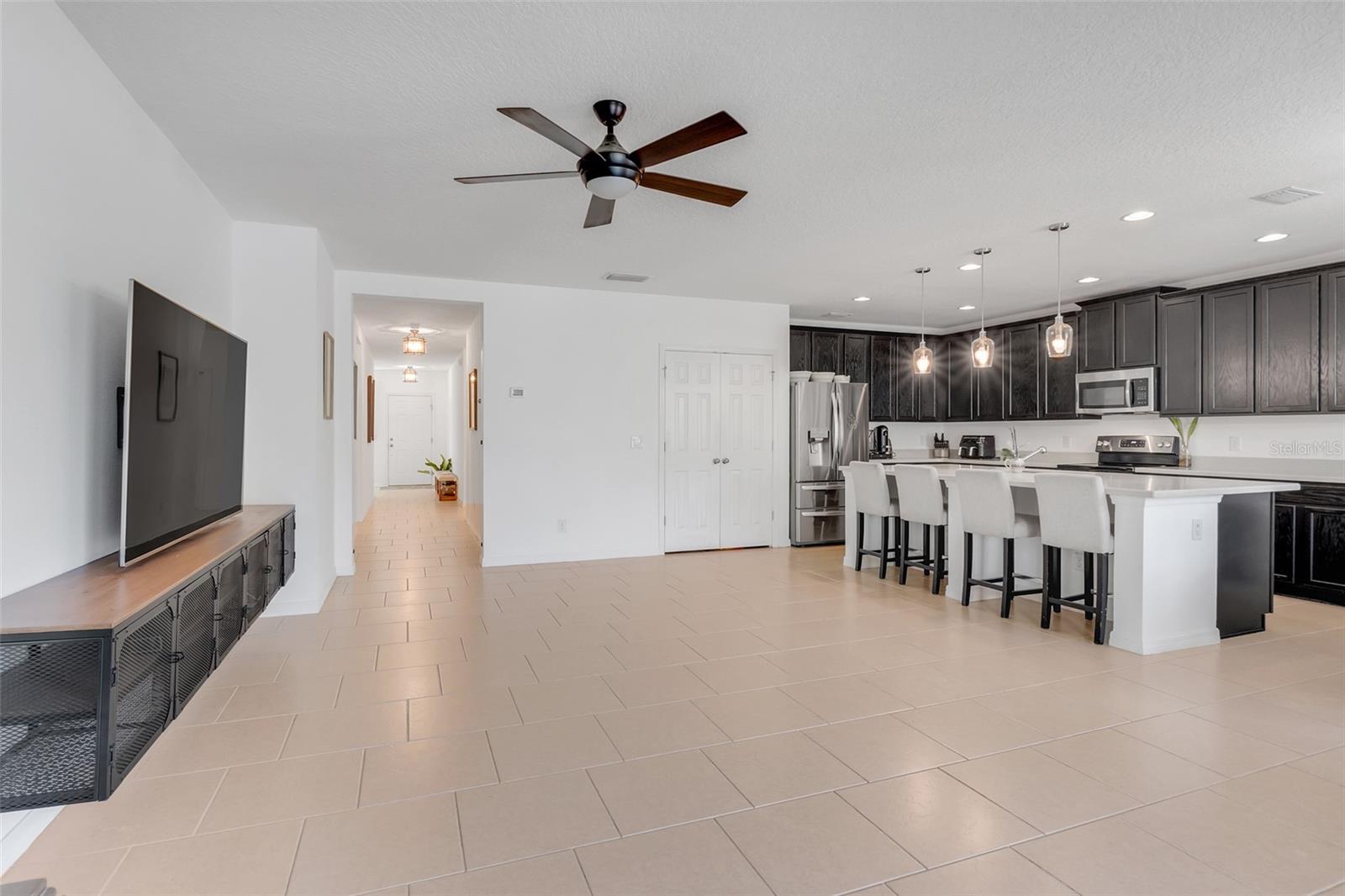 *UPDATE** With a full price offer, the seller will give $5000.00 to the buyers' closing costs. Welcome to your new home. There are brick pavers in the driveway that lead to the entry way of the home. This spacious 4-bedroom, 2-bathroom gem boasts a stylish and open floor plan designed for both comfort and convenience. The heart of the home is the stunning kitchen, featuring elegant quartz countertops, a large quartz island, and stainless-steel appliances perfect for entertaining, and sleek 42-inch cabinets that offer ample storage and a touch of luxury. The 4th bedroom doubles as an office. The home also features upgraded light fixtures and ceiling fans throughout, adding a contemporary flair to the inviting living spaces. Elegant quartz countertops are in the primary bathroom too. This home includes the Kohler DTV prompt digital showering system in the primary bath. The primary closet has a gorgeous closet system. Step outside to your private fenced backyard, complete with a cozy patio that's perfect for outdoor dining or relaxing. The primary bedroom and the 4th bedroom have luxury vinyl flooring. The other two bedrooms have carpet. The rest of the house has ceramic tile flooring. Located in a vibrant community, you'll have access to fantastic amenities including a refreshing swimming pool, a fun kids' playground, and a dedicated dog park for your furry friends. It has direct access to the South Lake Trail in front of the community for the walking, running, and bicycling enthusiasts. It is close to the Publix grocery and shopping center too. Don't miss the opportunity to own this beautifully appointed home in a community that offers both modern living and exceptional amenities. Schedule your viewing today to see this beautiful Kensington Flex model and make this dream home yours!
