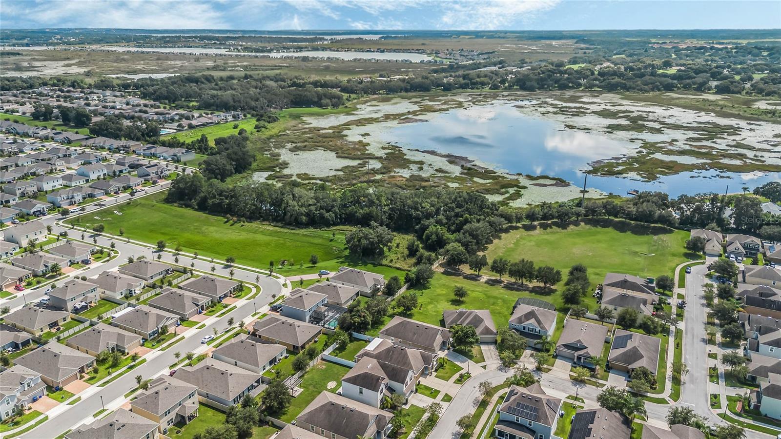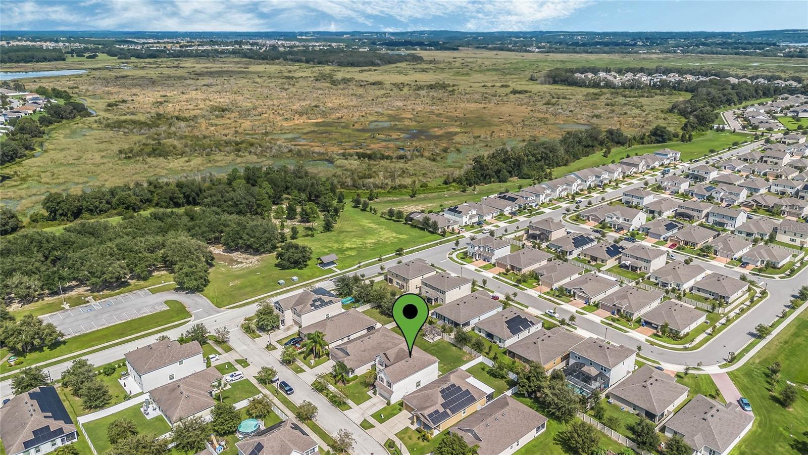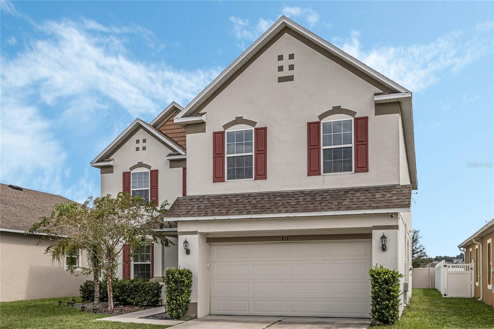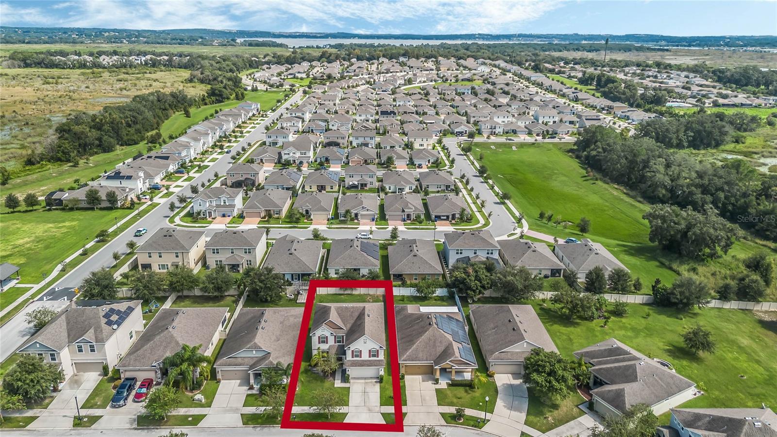 One or more photo(s) has been virtually staged. Welcome home to this spacious 5-bedroom, 3-bath home with 3,040 sq. ft. and a 2-car garage in the Marina Del Rey community! Inside, you will find a functional floor plan with room for everyone. Stepping through the front door, you will be greeted by a formal dining room on the left. The huge family room with a surround sound and a TV mount already installed is an ideal gathering spot for a movie or game night in. Chefs will love the modern kitchen, equipped with granite countertops, stainless steel appliances, 42" cabinets with crown molding, an island with room for seating, and ample storage. The kitchen is also pre-wired for 3 pendant lights and recessed lighting for a bright and refreshing setting. A large bedroom with a walk-in closet and full bath are conveniently located downstairs. Head upstairs to find an open loft space that would make a great theater room, play room, exercise room, and more. The luxurious primary suite is also located upstairs and features a spacious bedroom with a tray ceiling, large walk-in closet, and en suite bath with a double vanity with a granite countertop and a walk-in shower. The three additional upstairs bedrooms are all generously sized, and two had new carpet installed in 2023. All bedrooms feature matching ceiling fans with dual wall switches. All doors have a keyless entry, including a keypad for the garage door. You’ll love being across the street from the public park with a walking trail and dog park and just minutes from nearby shopping and dining and walking, biking, and running on the South Lake/Lake Apopka Trail. This home checks off all of the boxes on your wish list- don’t wait to make it yours! *Aerial photo boundary lines are an estimate and to be verified by buyer.
