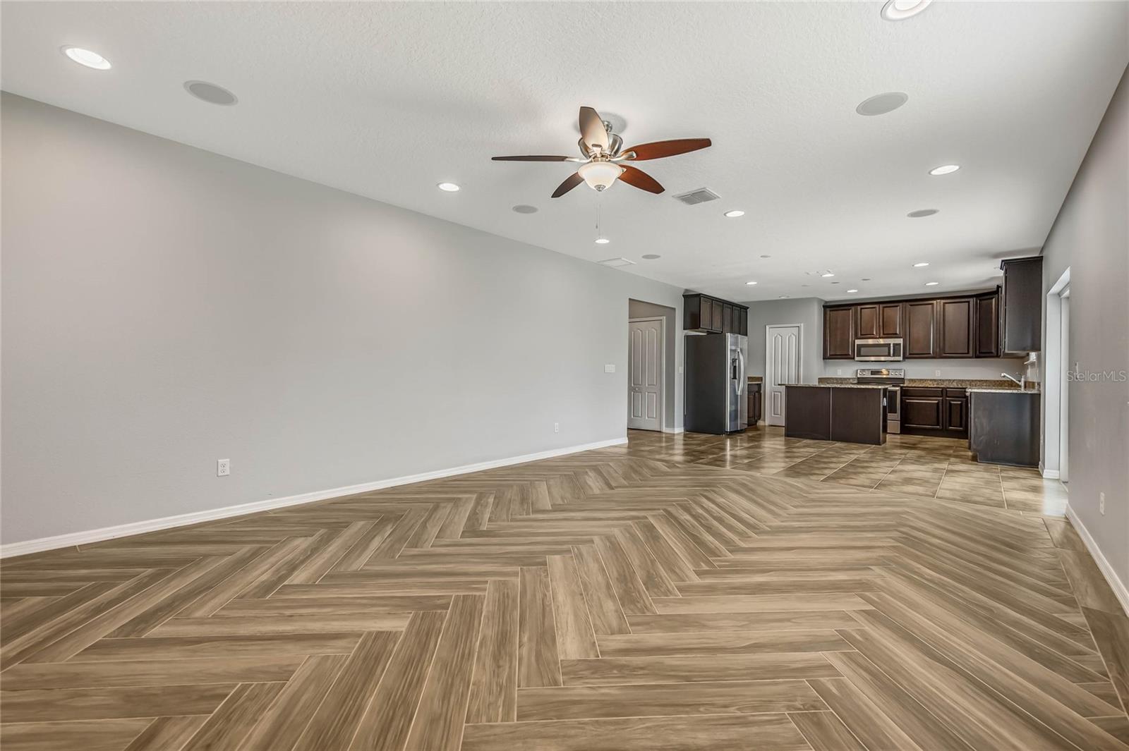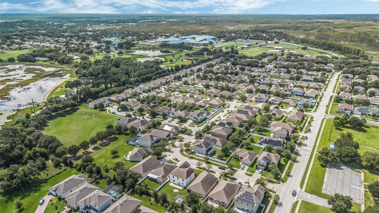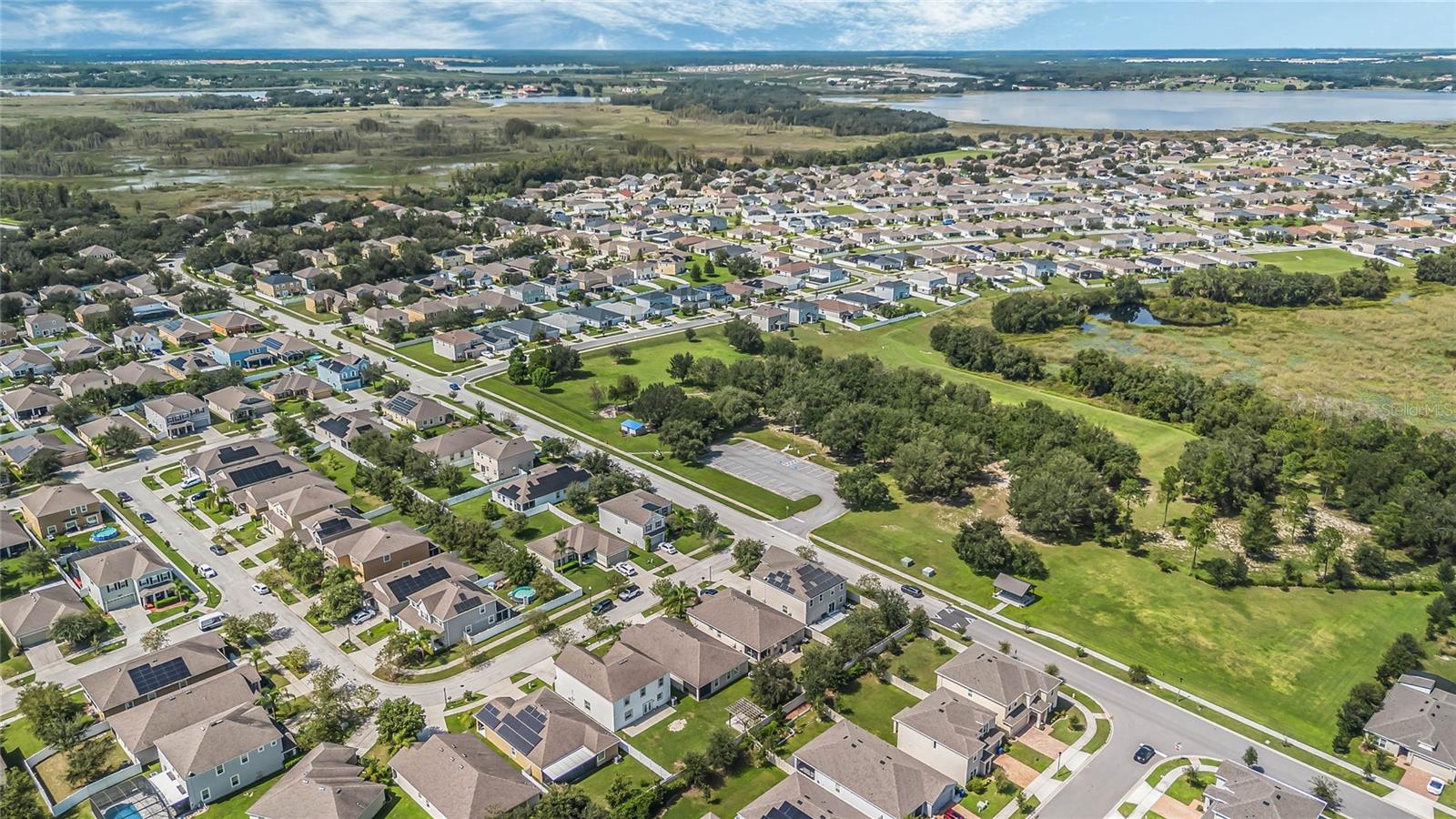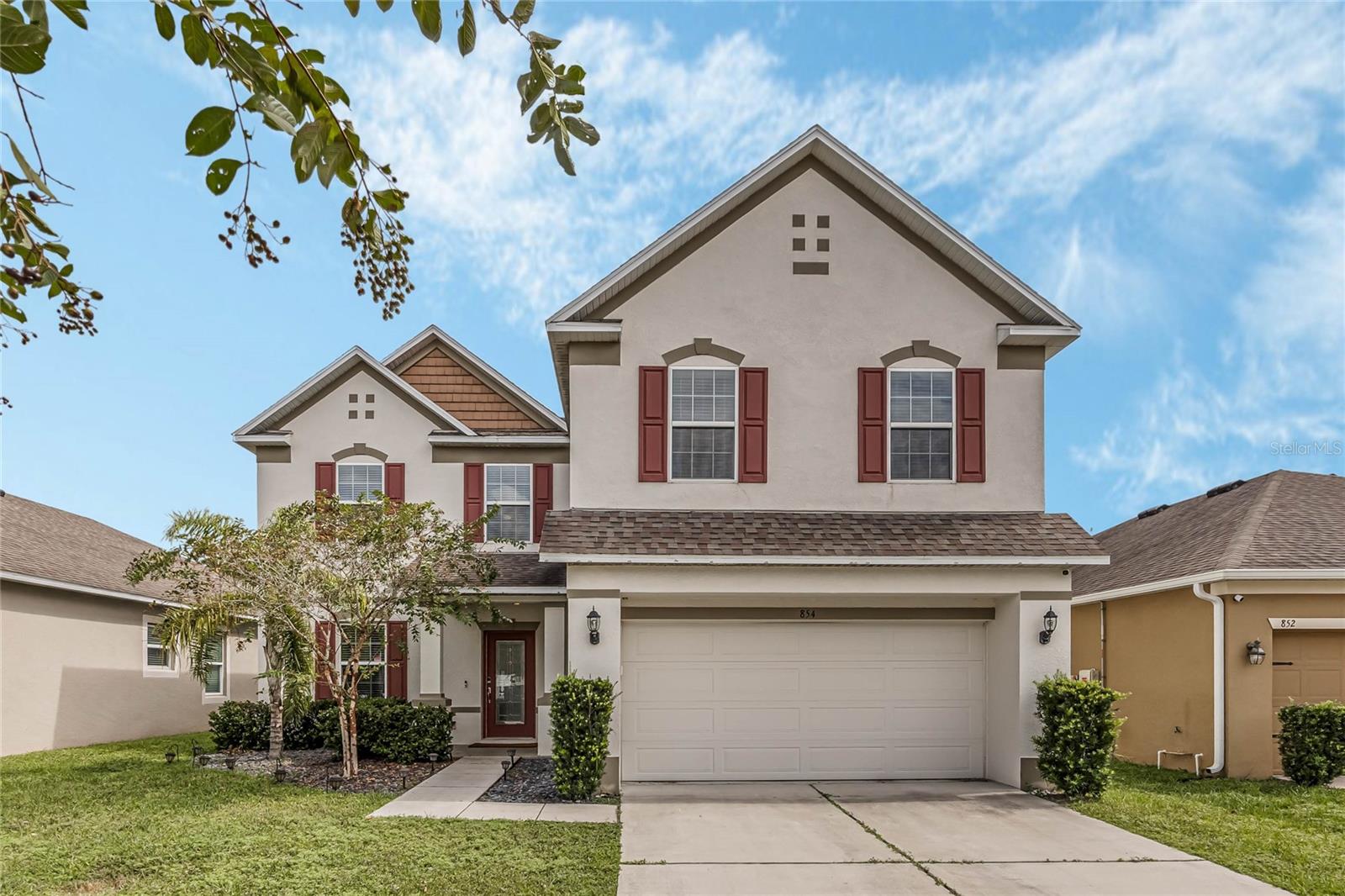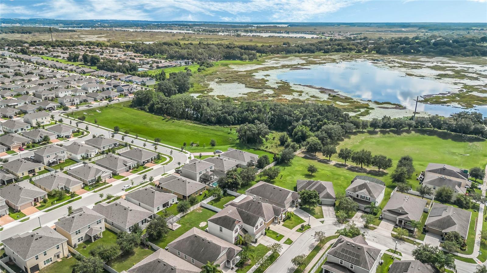 One or more photo(s) has been virtually staged. Welcome home to this spacious 5-bedroom, 3-bath home with 3,040 sq. ft. and a 2-car garage in the Marina Del Rey community! Inside, you will find a functional floor plan with room for everyone. Stepping through the front door, you will be greeted by a formal dining room on the left. The huge family room with a surround sound and a TV mount already installed is an ideal gathering spot for a movie or game night in. Chefs will love the modern kitchen, equipped with granite countertops, stainless steel appliances, 42" cabinets with crown molding, an island with room for seating, and ample storage. The kitchen is also pre-wired for 3 pendant lights and recessed lighting for a bright and refreshing setting. A large bedroom with a walk-in closet and full bath are conveniently located downstairs. Head upstairs to find an open loft space that would make a great theater room, play room, exercise room, and more. The luxurious primary suite is also located upstairs and features a spacious bedroom with a tray ceiling, large walk-in closet, and en suite bath with a double vanity with a granite countertop and a walk-in shower. The three additional upstairs bedrooms are all generously sized, and two had new carpet installed in 2023. All bedrooms feature matching ceiling fans with dual wall switches. All doors have a keyless entry, including a keypad for the garage door. You’ll love being across the street from the public park with a walking trail and dog park and just minutes from nearby shopping and dining and walking, biking, and running on the South Lake/Lake Apopka Trail. This home checks off all of the boxes on your wish list- don’t wait to make it yours! *Aerial photo boundary lines are an estimate and to be verified by buyer.