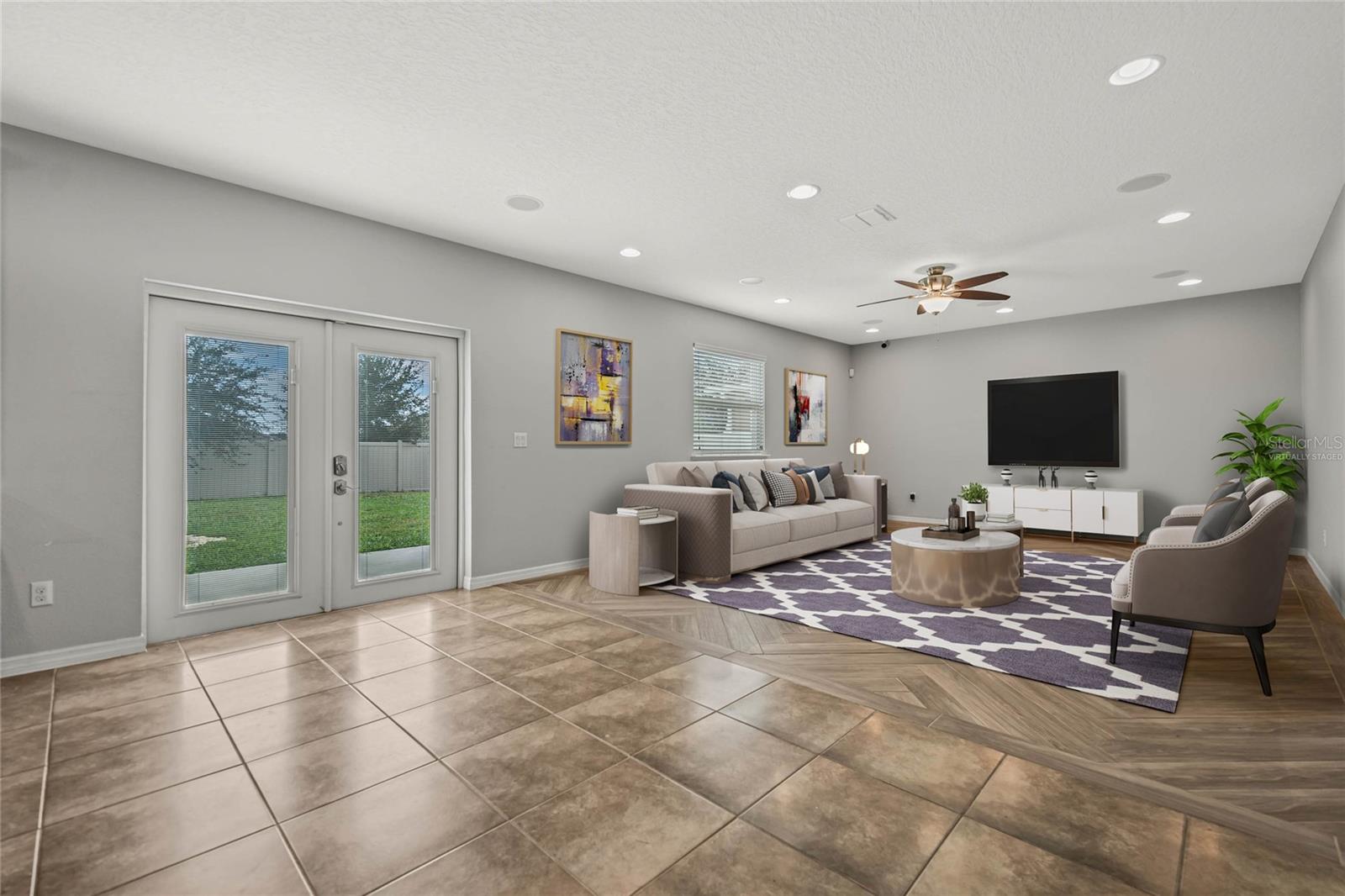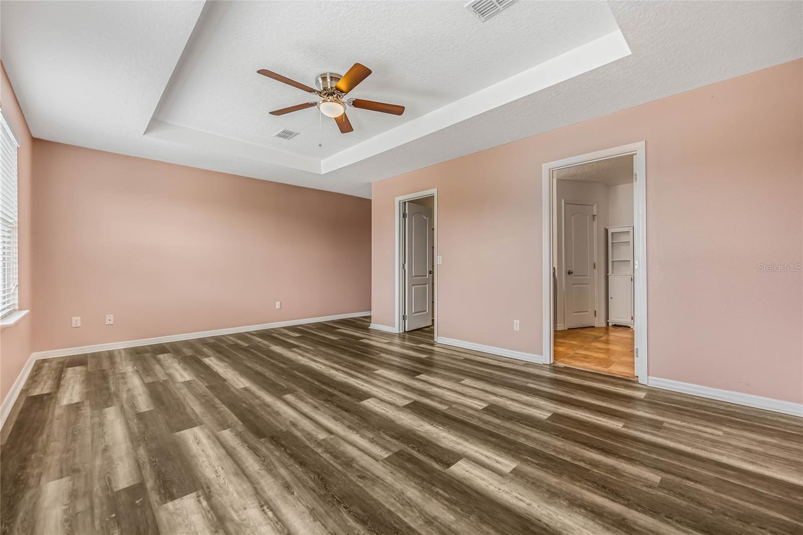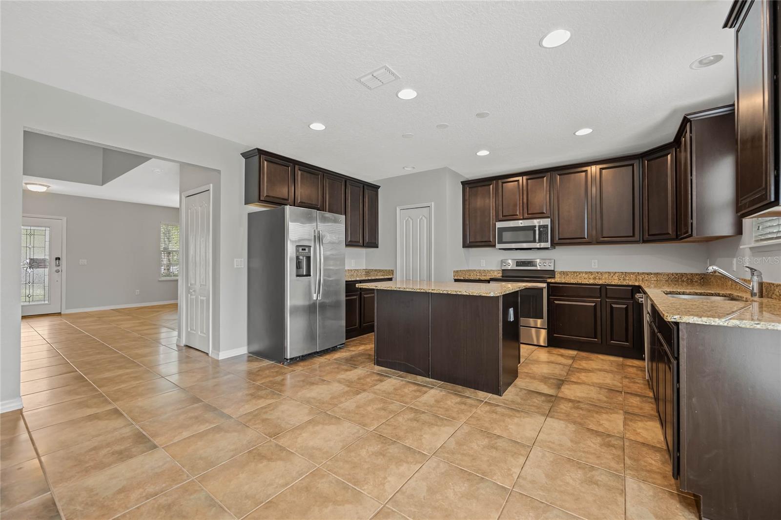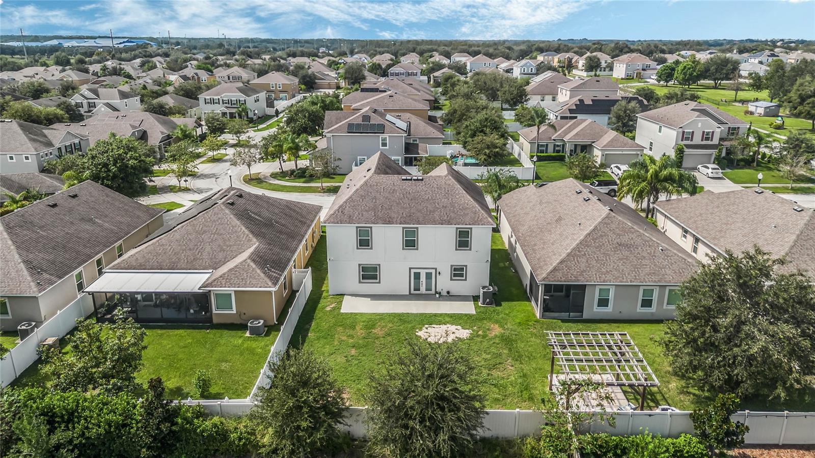 One or more photo(s) has been virtually staged. Welcome home to this spacious 5-bedroom, 3-bath home with 3,040 sq. ft. and a 2-car garage in the Marina Del Rey community! Inside, you will find a functional floor plan with room for everyone. Stepping through the front door, you will be greeted by a formal dining room on the left. The huge family room with a surround sound and a TV mount already installed is an ideal gathering spot for a movie or game night in. Chefs will love the modern kitchen, equipped with granite countertops, stainless steel appliances, 42" cabinets with crown molding, an island with room for seating, and ample storage. The kitchen is also pre-wired for 3 pendant lights and recessed lighting for a bright and refreshing setting. A large bedroom with a walk-in closet and full bath are conveniently located downstairs. Head upstairs to find an open loft space that would make a great theater room, play room, exercise room, and more. The luxurious primary suite is also located upstairs and features a spacious bedroom with a tray ceiling, large walk-in closet, and en suite bath with a double vanity with a granite countertop and a walk-in shower. The three additional upstairs bedrooms are all generously sized, and two had new carpet installed in 2023. All bedrooms feature matching ceiling fans with dual wall switches. All doors have a keyless entry, including a keypad for the garage door. You’ll love being across the street from the public park with a walking trail and dog park and just minutes from nearby shopping and dining and walking, biking, and running on the South Lake/Lake Apopka Trail. This home checks off all of the boxes on your wish list- don’t wait to make it yours! *Aerial photo boundary lines are an estimate and to be verified by buyer.