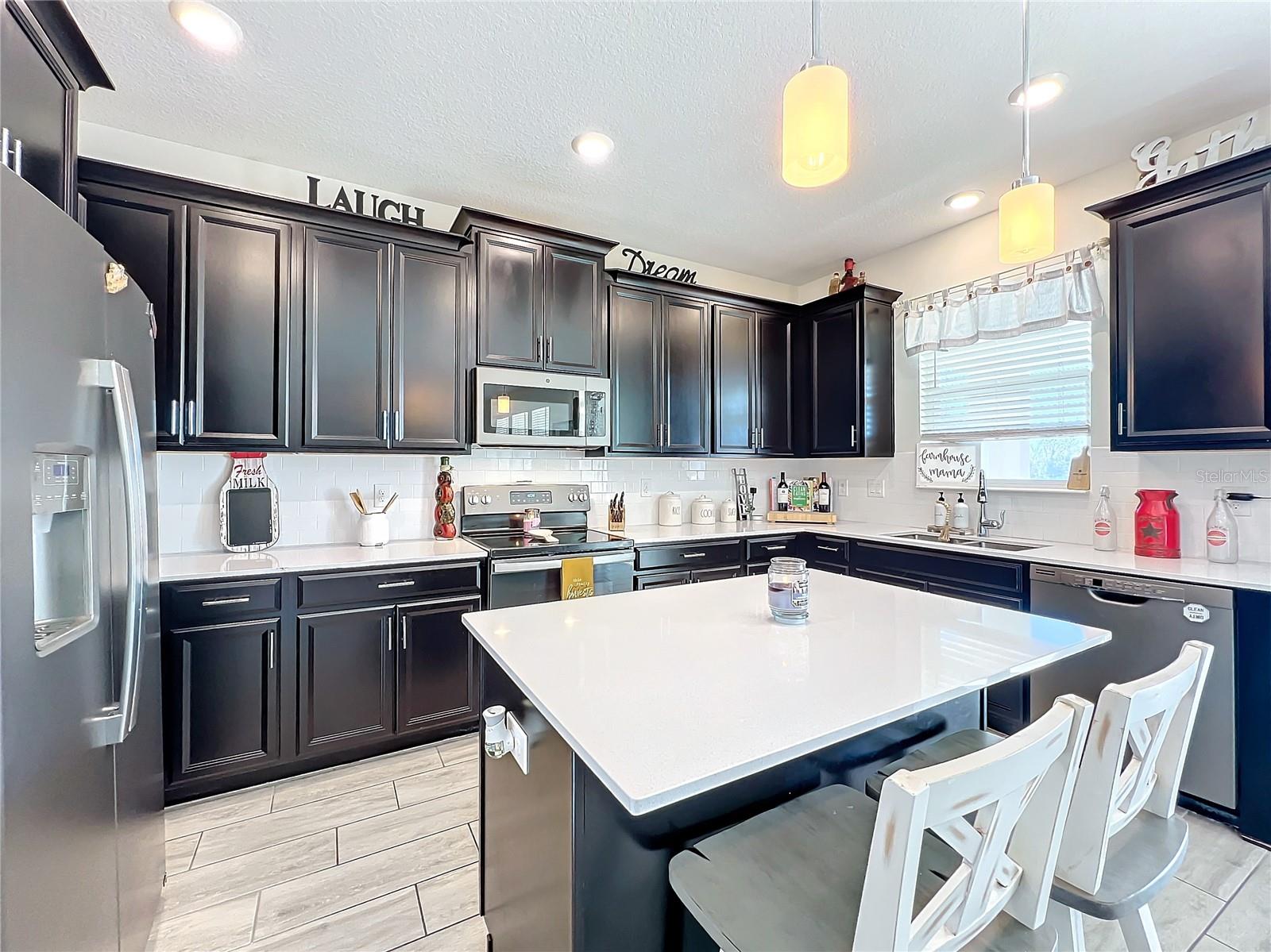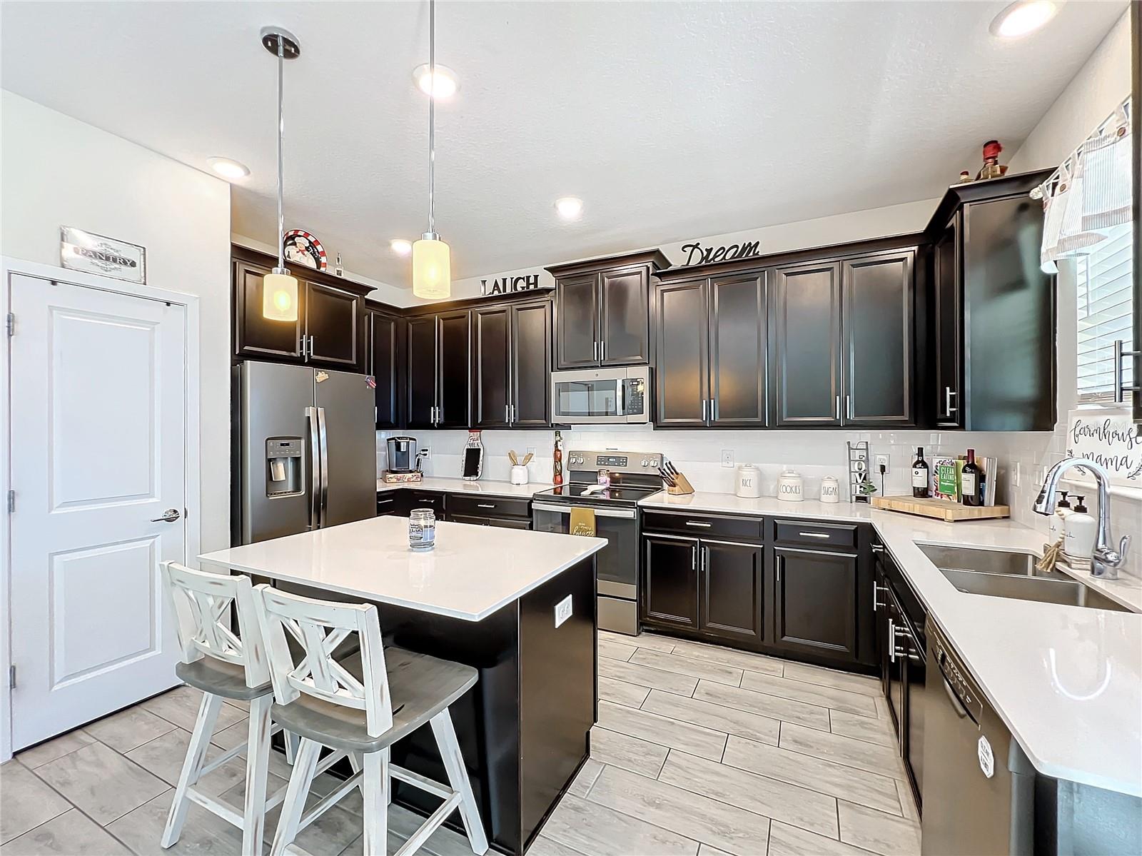 Experience modern elegance with this stunning home located in Waterside at Estates at Cherry Lake. With 4 bedrooms, 2.5 baths, a bonus room, and a flex space, this home offers room to live, work, and play. The open floor plan seamlessly connects the kitchen, dining, and family areas—perfect for entertaining. The kitchen shines with stainless steel appliances, gorgeous countertops, a spacious island, and 42-inch cabinets with crown molding. Upstairs, the expansive primary suite boasts a walk-in closet, garden tub, walk-in shower, and dual vanity. The large fenced yard and paver driveway add to it’s charm, while energy-efficient features, smart technology, and two HVAC systems make life comfortable and convenient. Enjoy serene Cherry Lake views and a little over one mile from the new Cherry Lake Park that includes trails, sports courts and picnic areas! Close to lakes, parks, and Orlando attractions, this home combines luxury and location. Schedule your showing today!