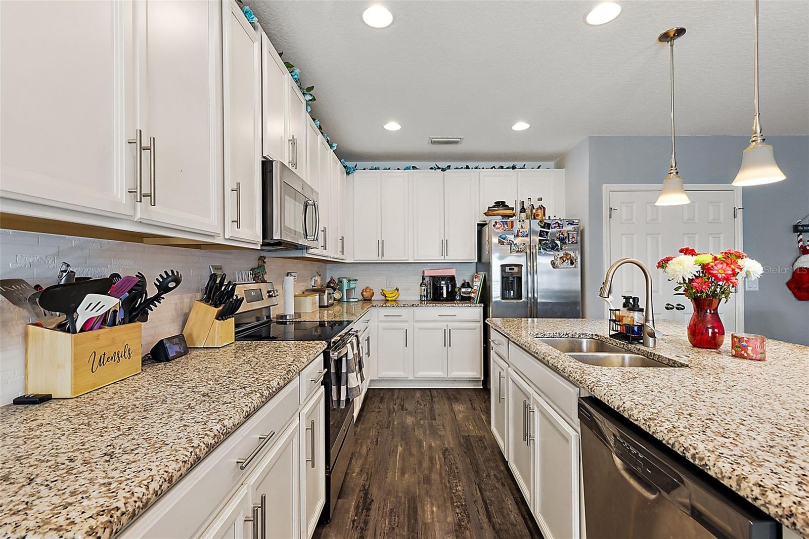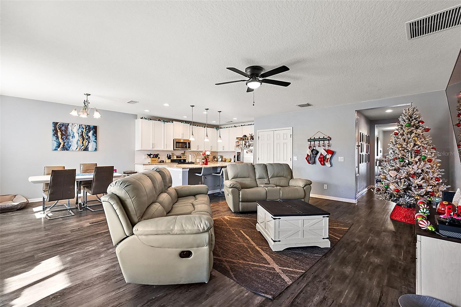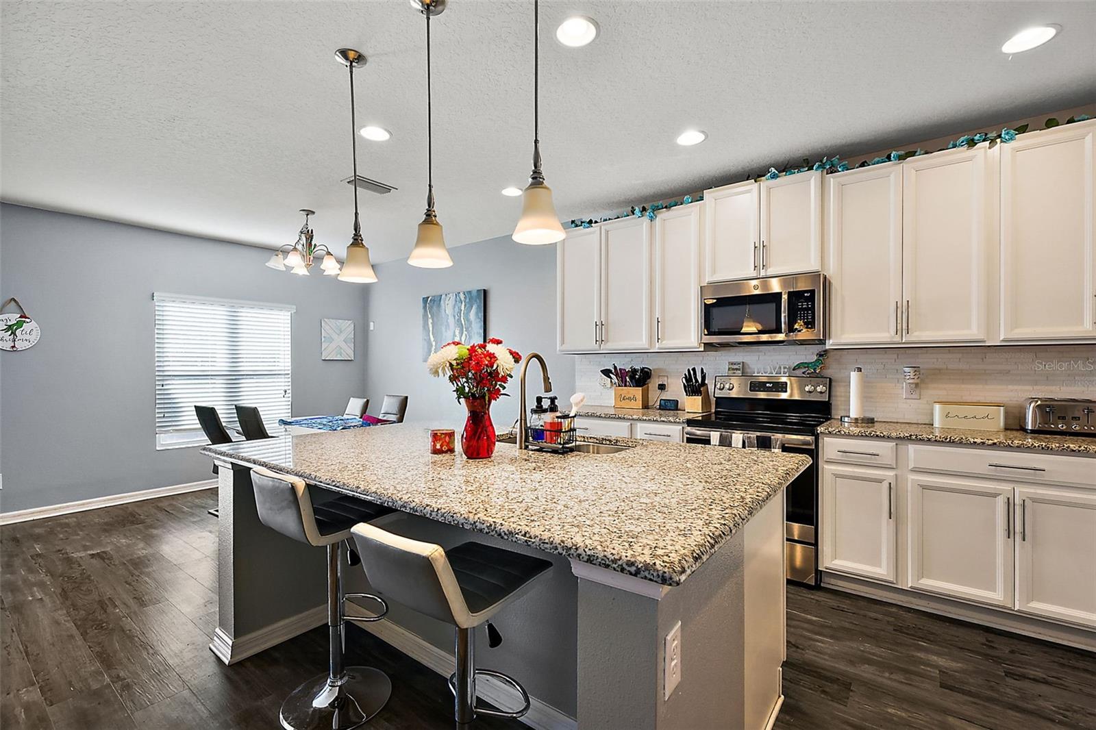 Under contract-accepting backup offers. This 4-bedroom, 2-bathroom gem is ready to welcome you home! Featuring an open floor plan, this house is perfect for anyone who loves bright, inviting spaces. The living area flows seamlessly into the kitchen and dining space. The kitchen features granite countertops with gorgeous cabinets and plenty of counter space. The primary bedroom is located towards the back of the home, complete with an en-suite bathroom and a big walk-in closet! Step outside - you’ll find a fenced-in backyard that’s perfect for keeping your privacy and a screened-in lanai that offers a great spot to enjoy the Florida weather! This neighborhood not only offers a community pool, but also two playgrounds and a fishing pier into Lake Lucy! Schedule your tour today and see why this home is the one you’ve been waiting for!