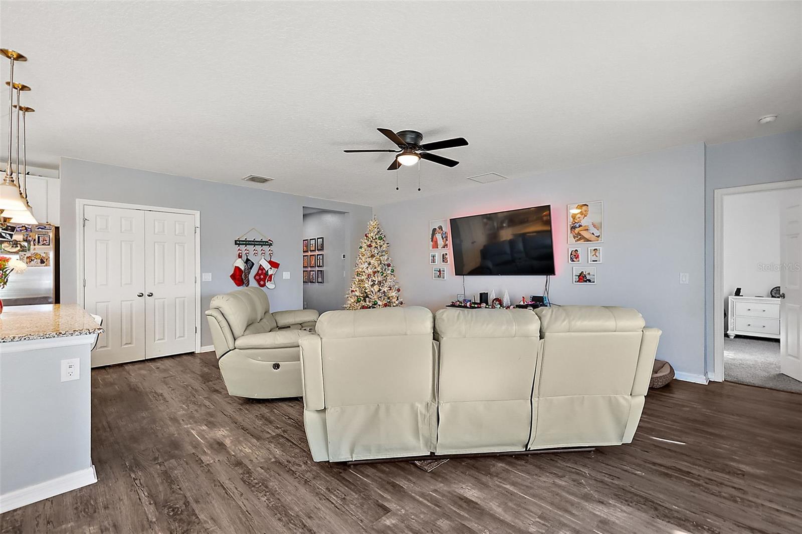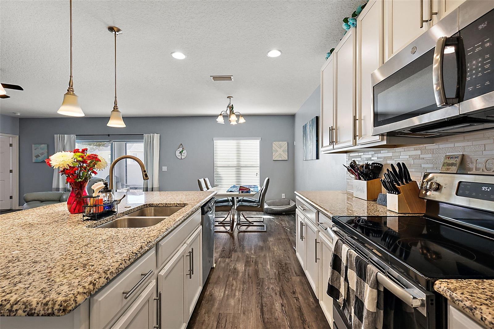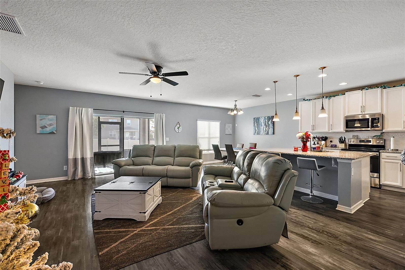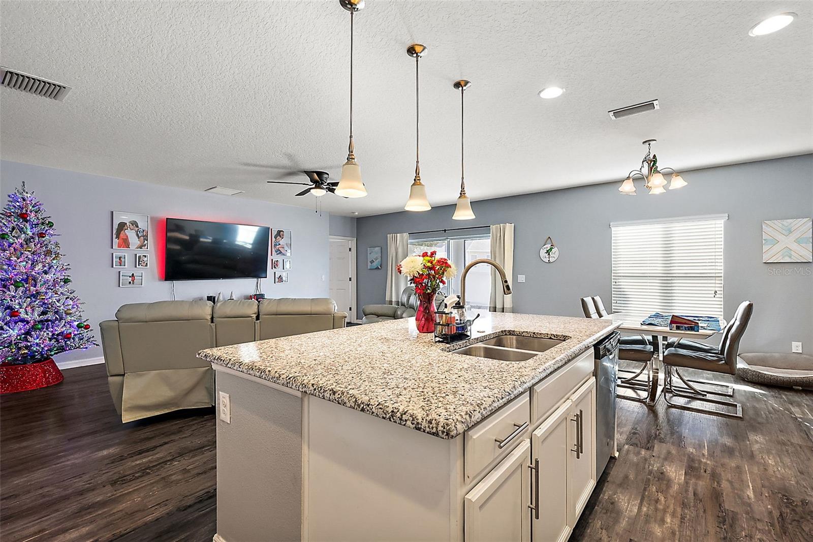 Under contract-accepting backup offers. This 4-bedroom, 2-bathroom gem is ready to welcome you home! Featuring an open floor plan, this house is perfect for anyone who loves bright, inviting spaces. The living area flows seamlessly into the kitchen and dining space. The kitchen features granite countertops with gorgeous cabinets and plenty of counter space. The primary bedroom is located towards the back of the home, complete with an en-suite bathroom and a big walk-in closet! Step outside - you’ll find a fenced-in backyard that’s perfect for keeping your privacy and a screened-in lanai that offers a great spot to enjoy the Florida weather! This neighborhood not only offers a community pool, but also two playgrounds and a fishing pier into Lake Lucy! Schedule your tour today and see why this home is the one you’ve been waiting for!