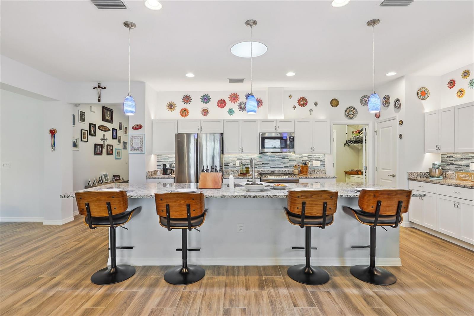 NEW PRICE! Elegant Living with Stunning Views in the Cascades of Groveland Welcome to this exceptional 3-bedroom, 2-bath home in the highly sought-after 55+ community of the Cascades of Groveland. Perched atop a hill, this home offers breathtaking views, making every sunrise and sunset a picturesque experience. You'll find an open, inviting floor plan that seamlessly blends comfort and style. The tile floors throughout this lovely home make for easy cleaning and maintenance. The spacious living areas are perfect for entertaining, while the well-appointed kitchen makes meal preparation a delight with stainless steel appliances, quartz countertops, and an oversized island. The primary suite features a tranquil retreat with a spa-like bath, ensuring relaxation at the end of the day. The Golf Cart does convey with the purchase. Step outside to enjoy the serene surroundings, with an oversized screen patio perfect for morning coffee or evening gatherings. The Cascades of Groveland is a lifestyle-rich community with many amenities, including cable, internet, home security, and a gate-guarded entrance for peace of mind. The impressive clubhouse offers something for everyone: • Artist studio to unleash your creativity • Billiards and poker rooms for socializing and friendly competition • On-site restaurant and bar for dining and drinks close to home • A large entertainment venue for events and gatherings • Beautiful pool and workout facility Enjoy a vibrant lifestyle with access to this thriving community, all while basking in the beauty and charm of this remarkable home. Don’t miss the chance to make this exceptional property your own—schedule your private tour today!