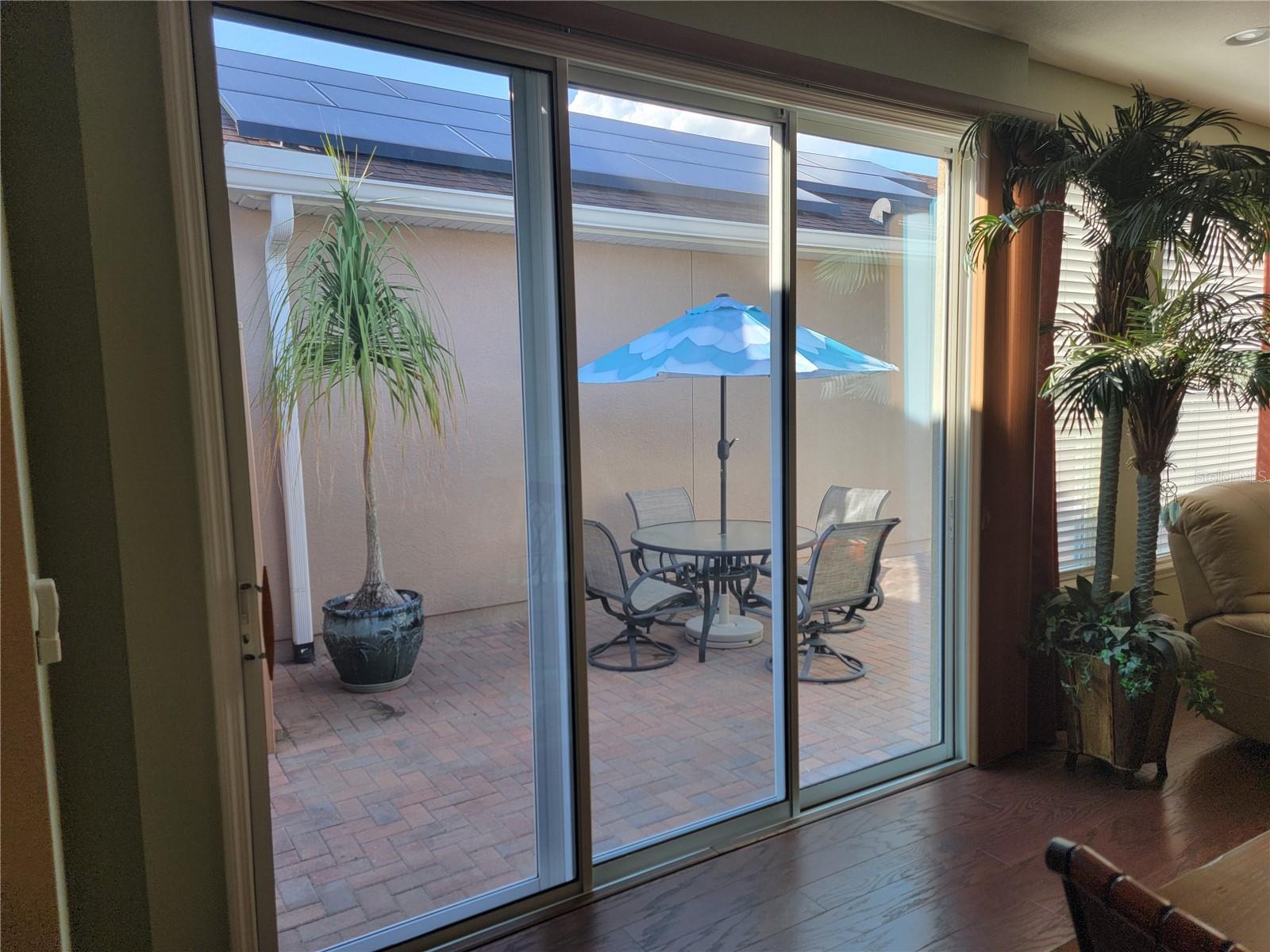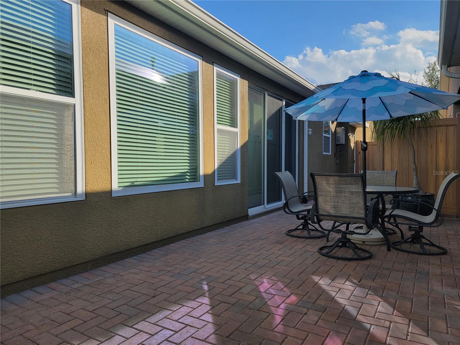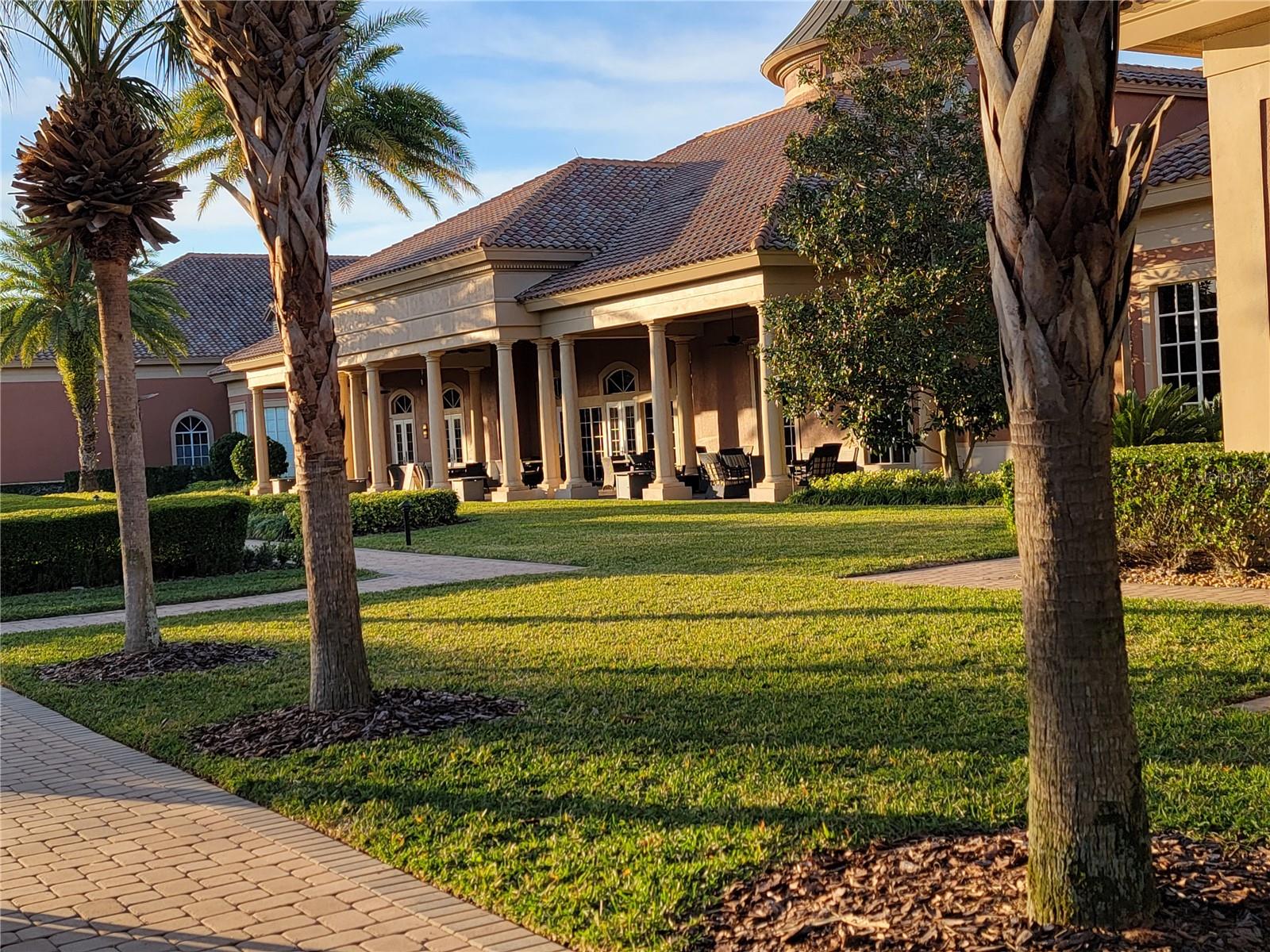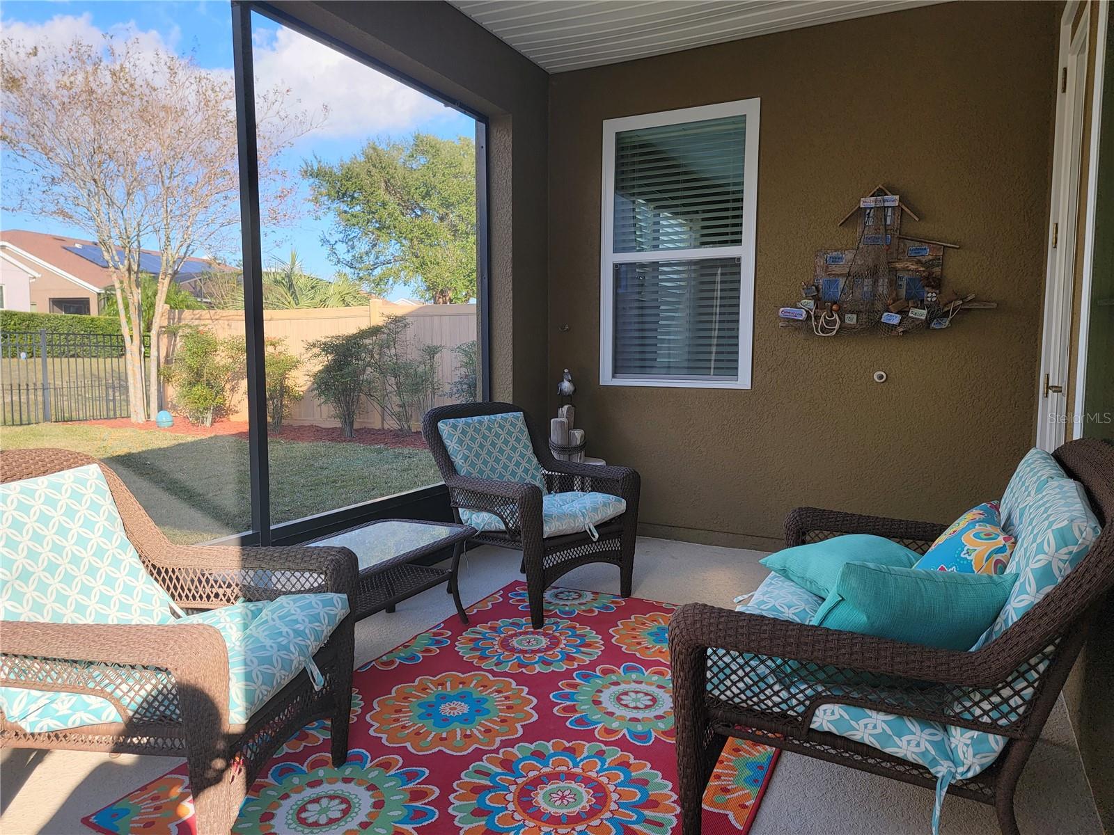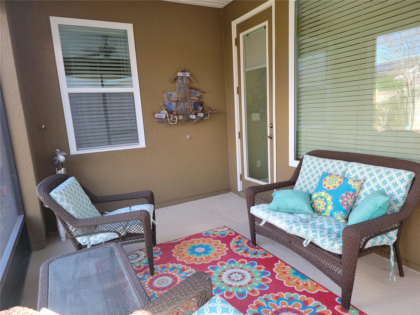 Welcome to resort living in Trilogy of Orlando! This Villa is perfect for care-free living full time, or for those who want to Winter in Florida. This two bedroom, two bath home and a den, is the perfect size for just that. Plus, you have a great outdoor space with screened lanai and wrap around side private courtyard as well. Loaded with upgrades including solar, wood floors, tankless water heater, upgraded kitchen cabinets with under counter lighting, stainless steel appliances, new microwave, and 5 burner gas range with griddle. And, if you don't feel like cooking in that fabulous kitchen, you can enjoy a meal Wednesday-Sunday at the Grille Restaurant & Bar, located in the 57,000 square foot state-of-the-art Clubhouse. Amenities include an Athletic Club with top-of-the-line equipment, resort-style indoor/outdoor pool, heated spa, ladies & men's locker rooms with lockers, showers, etc., pickleball and tennis courts, bocce ball, billiard room, poker room, craft room, and so much more. There is always some type of entertainment, concerts, and fun entertainment planned for the community. You will feel like you are always on vacation!! Come live the good life at this tropical oasis!