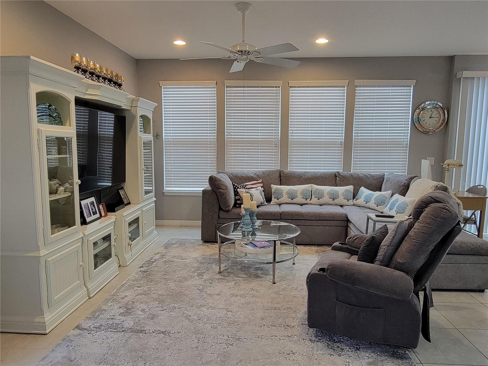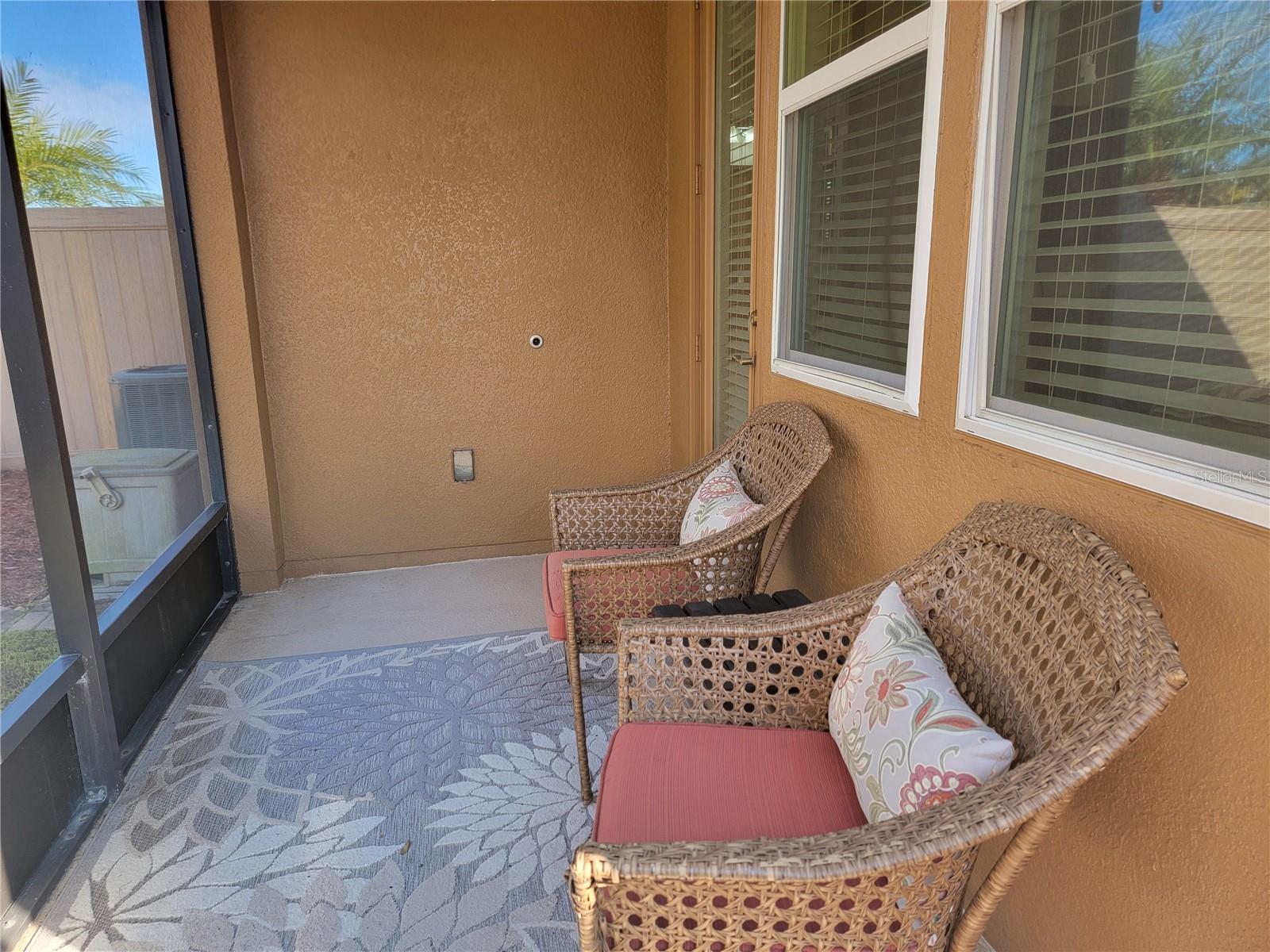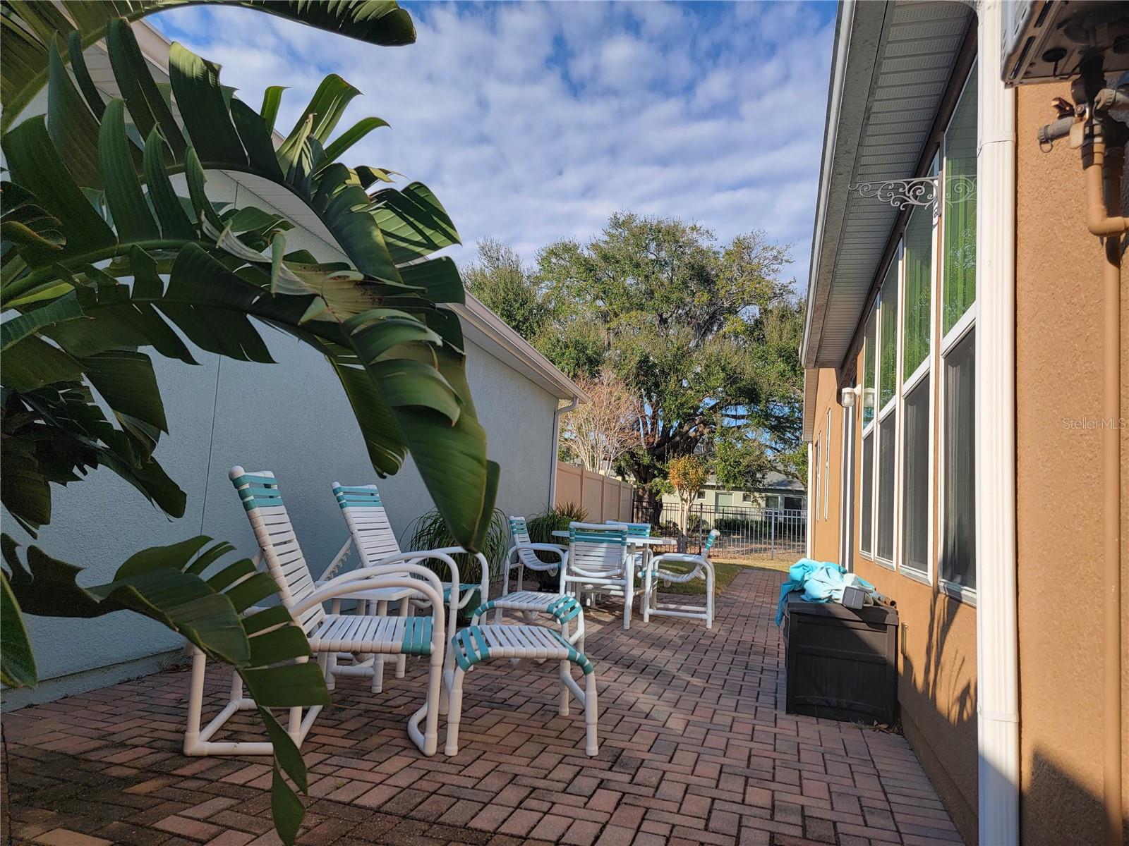 Beautiful Villa in resort-style community available now! Enter this two bedroom, two bath home through a beautiful, beveled glass front door into an attractive open floor plan. The Villa has lovely upgrades, attractive 18" tile flooring, private outdoor brick-paver courtyard patio plus a separate screened in lanai, fenced yard and a tandem 2-car garage with lots of storage. The kitchen features stainless steel appliances, granite countertops, pull-out drawers, trash/recycle cabinet, undercounter lighting, and a huge island to entertain guests. The primary ensuite bathroom has a beautiful walk-in shower, vanity with dual sinks & make up area, and a large walk-in closet. If you are not familiar with Trilogy of Orlando, you MUST SEE this fabulous, gated community. Amenities include an indoor/outdoor pool, spa, state-of-the-art fitness center, pickleball, bocci ball, and tennis courts, and billiard, poker, & craft rooms, and so much more. The 57,000 sq. ft. Magnolia House also has a ballroom for concerts, special events & dances, and best of all, The Grille Restaurant & Bar with great food! HOA fee includes basic cable, internet and land-line phone, lawncare, security system monitoring, all amenities, gated entry. Come live in this fabulous community with so much to do and enjoy life!!