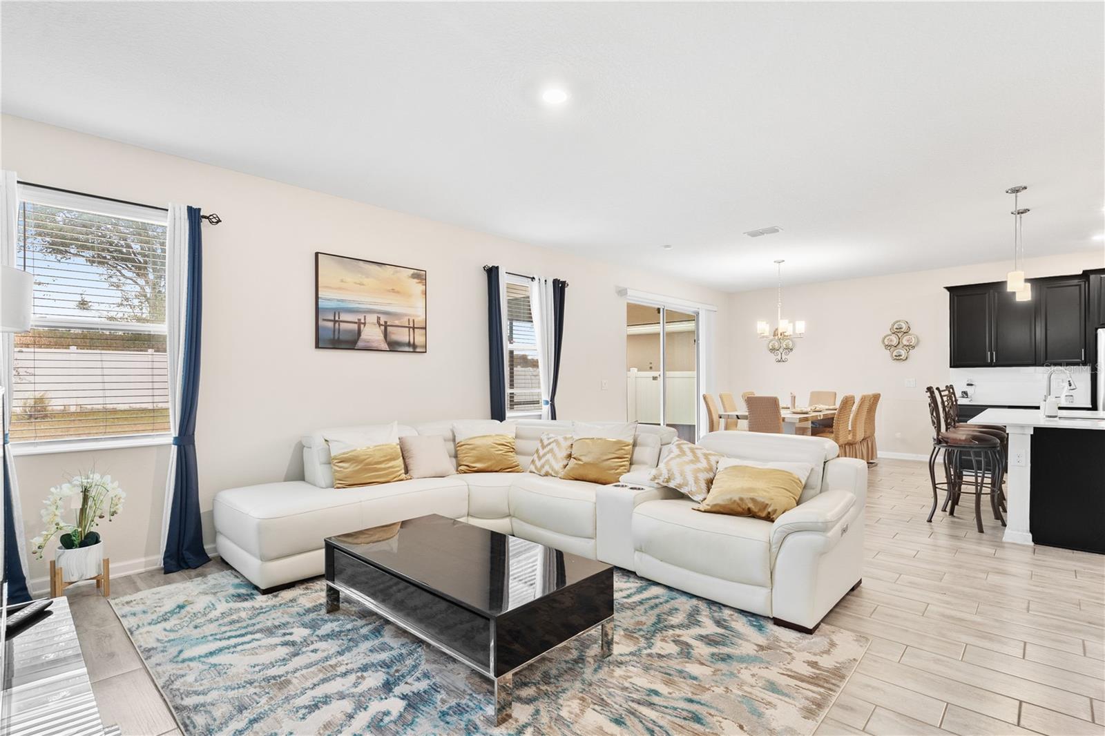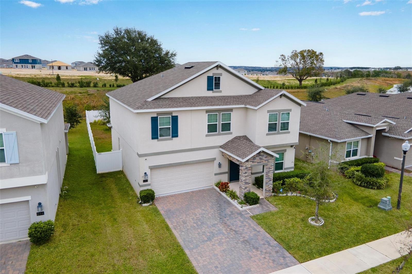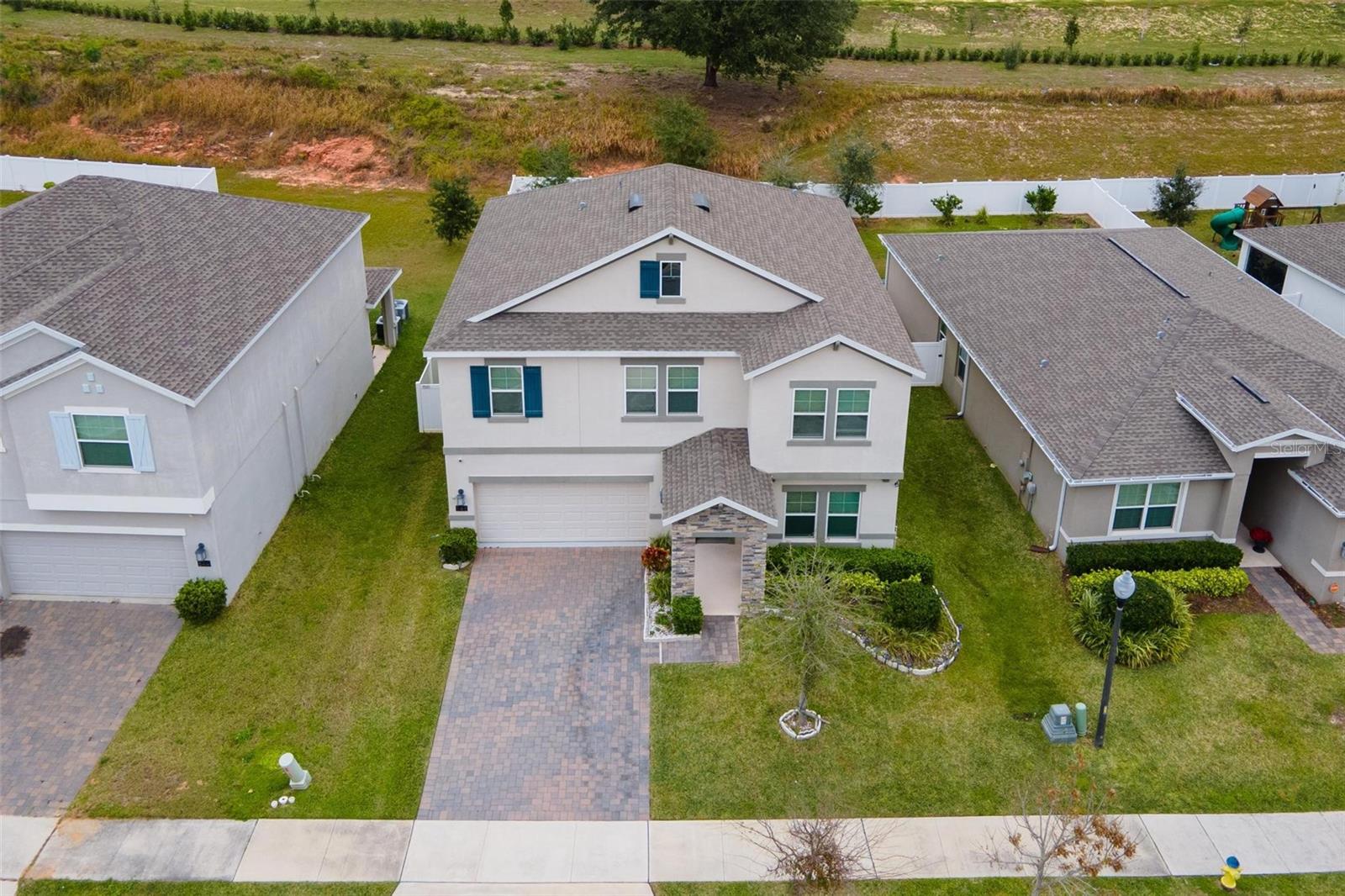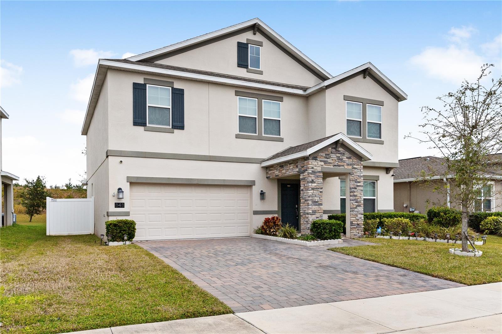 Big. Open. Convenient. Three virtues of a truly remarkable home! From the moment you pull into the brick paver driveway, you'll find over 3,000 reasons to say yes to this home. Offering 4 bedrooms, 2.5 baths, and over 3,000 sq. ft. of thoughtfully designed living space, this home is where comfort meets convenience in the best way possible. Step inside and prepare to be floored—literally! The open-concept layout is designed for effortless everyday living and entertaining. A dedicated office/den greets you at the entrance, leading seamlessly into the heart of the home. The kitchen is an entertainer’s dream, featuring a huge center island, stunning quartz countertops, abundant cabinet and counter space, a large walk-in pantry, and stainless steel appliances—including a brand-new refrigerator. Overlooking the dining and family room, this space invites gatherings of all sizes. The wood plank tile flooring throughout the entire first floor adds a touch of warmth and durability, and the dining area opens to a screened-in lanai—perfect for enjoying Florida’s beautiful weather. Thinking about adding a pool? You’ll love the conveniently placed half bath with direct backyard access, making future pool days even easier. Head upstairs to discover a versatile bonus room, ideal as a second living area, game room, or even a home gym. The spacious primary suite is a true retreat, complete with dual vanities, quartz countertops, a luxurious garden tub, a walk-in shower, and an oversized walk-in closet that connects directly to the laundry room. Bedrooms 2, 3, and 4 are generously sized with cozy carpeting, and the guest bath is smartly designed with dual vanities and a separate tub/shower area for added convenience.Outside, the fully fenced backyard offers privacy and plenty of room to play, garden, or just unwind. All furniture available for purchase. And when it comes to location, this home has connections! Just minutes from Cherry Lake Park, with its scenic trails, playgrounds, and picnic areas, as well as downtown Clermont, the Turnpike, and Lakeridge Winery. A home like this doesn’t just check the boxes—it sets the standard. Don’t settle for less! Call today to schedule your private tour and make this incredible home yours.