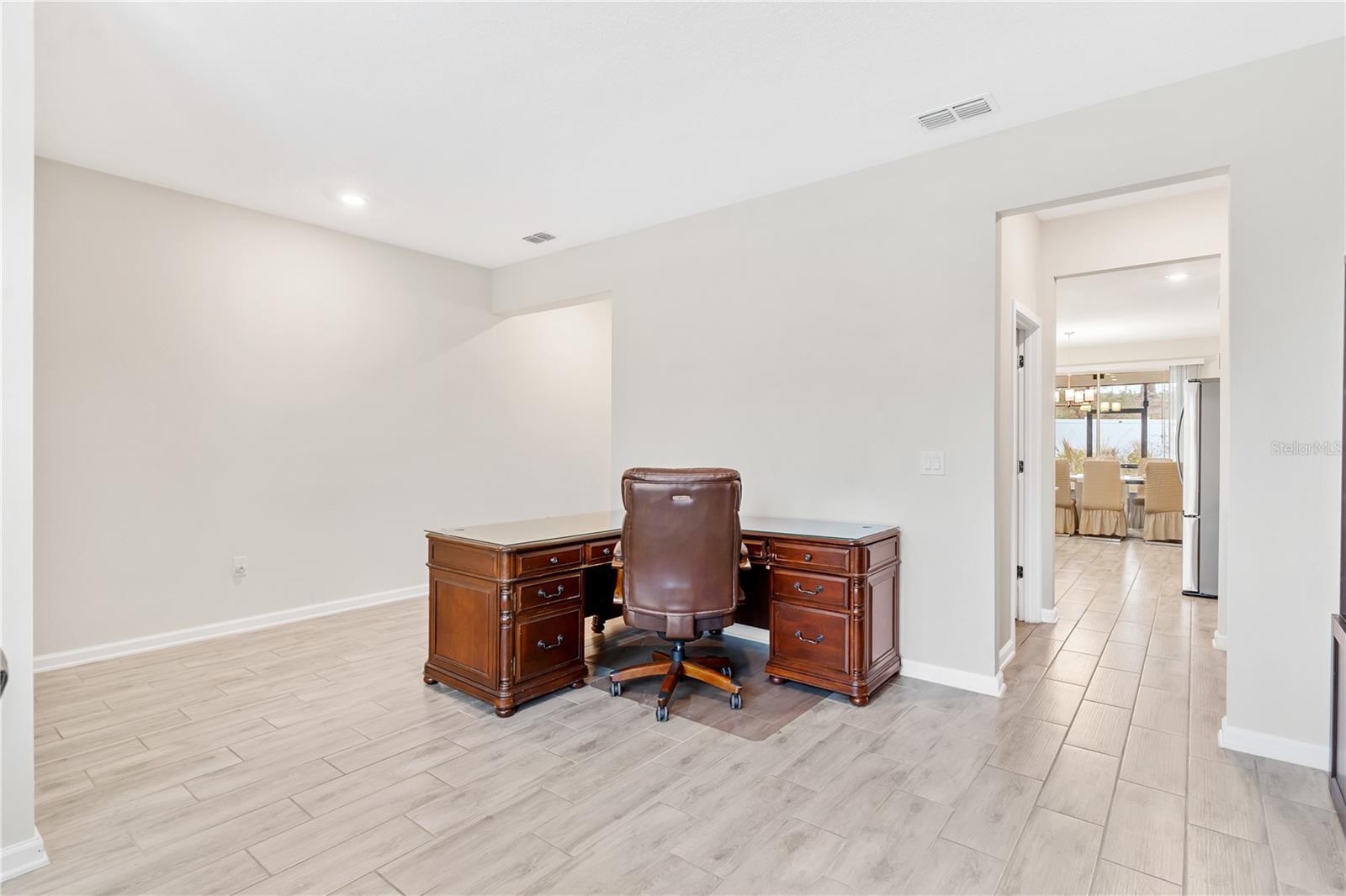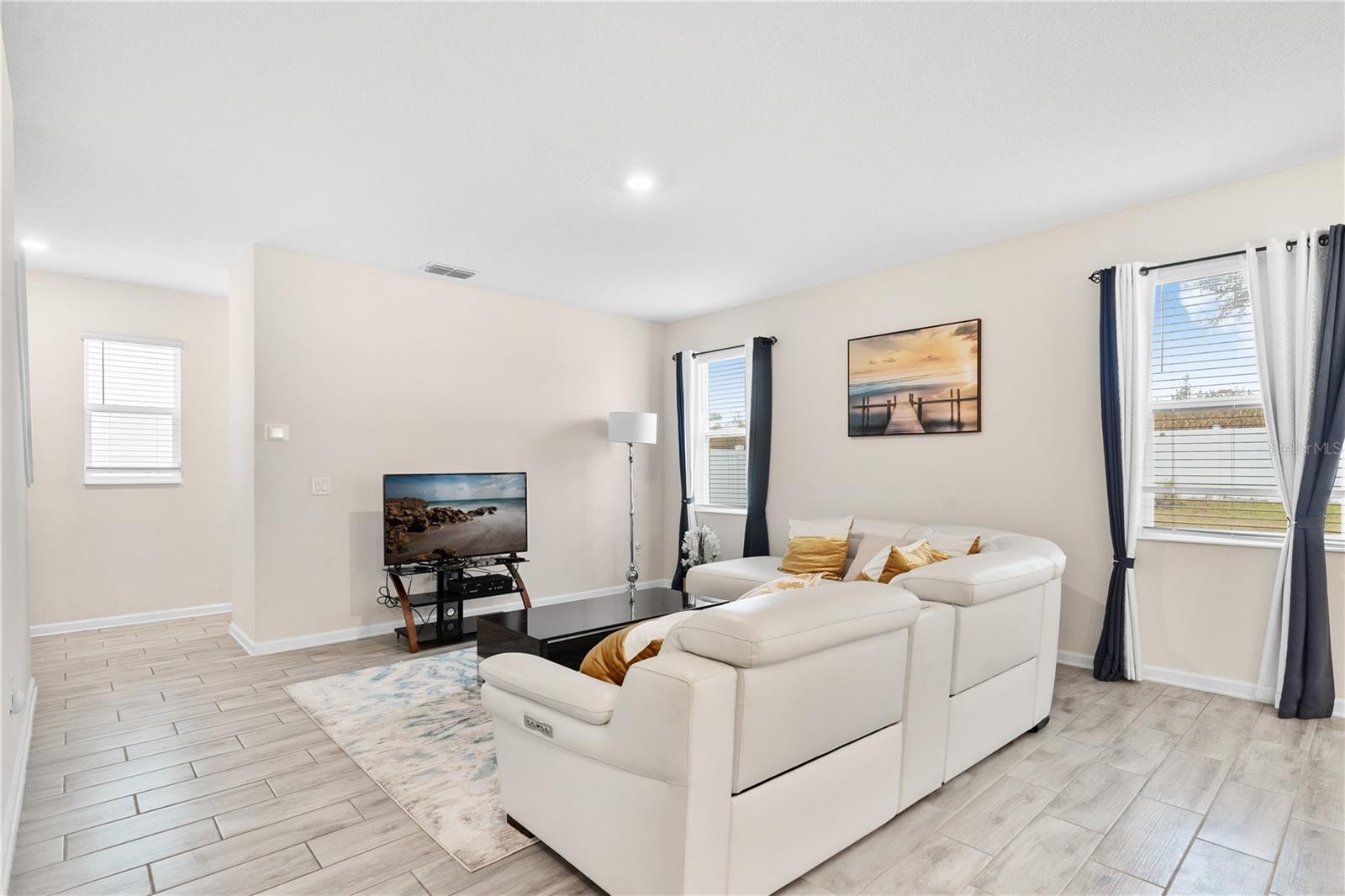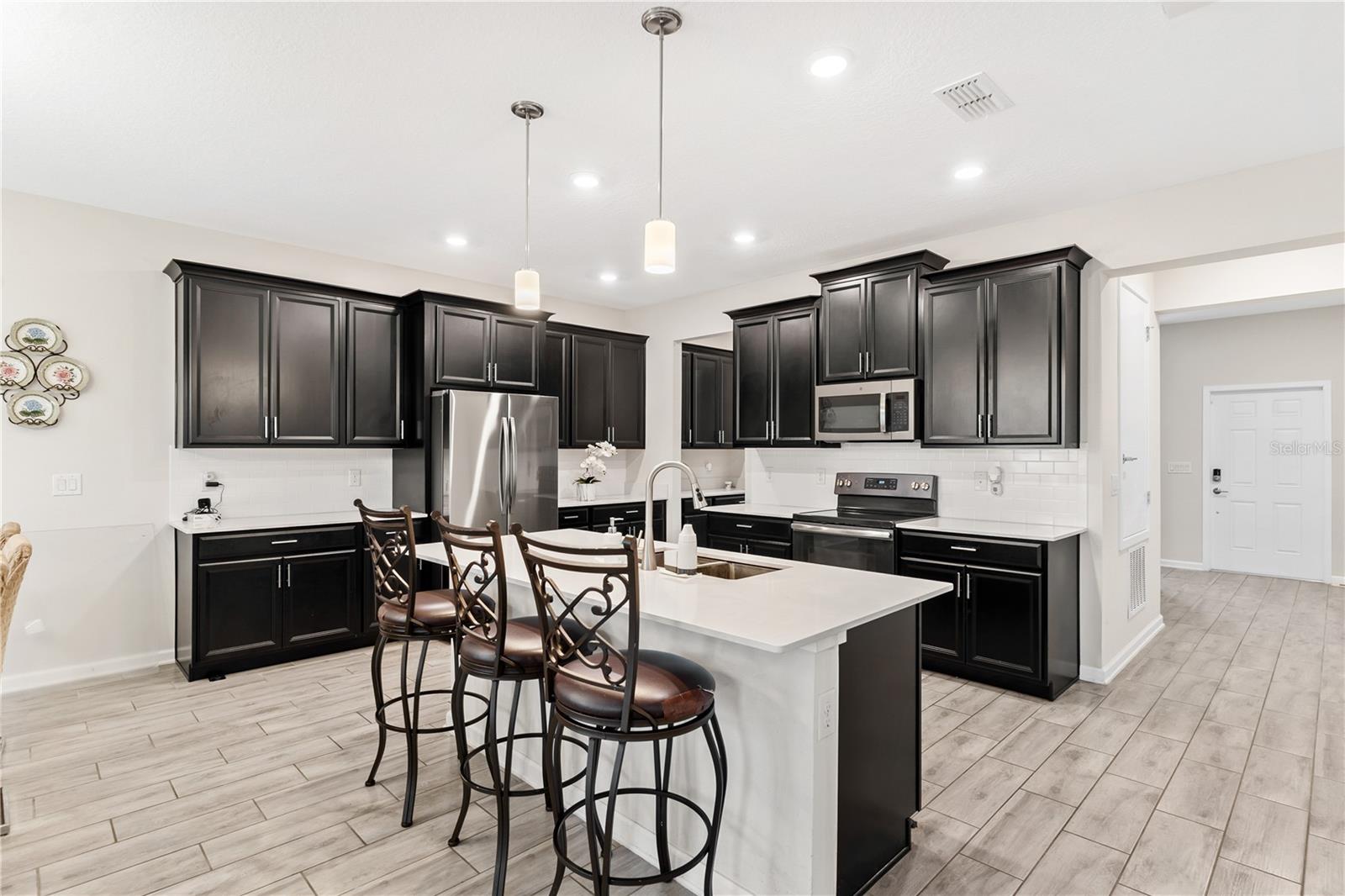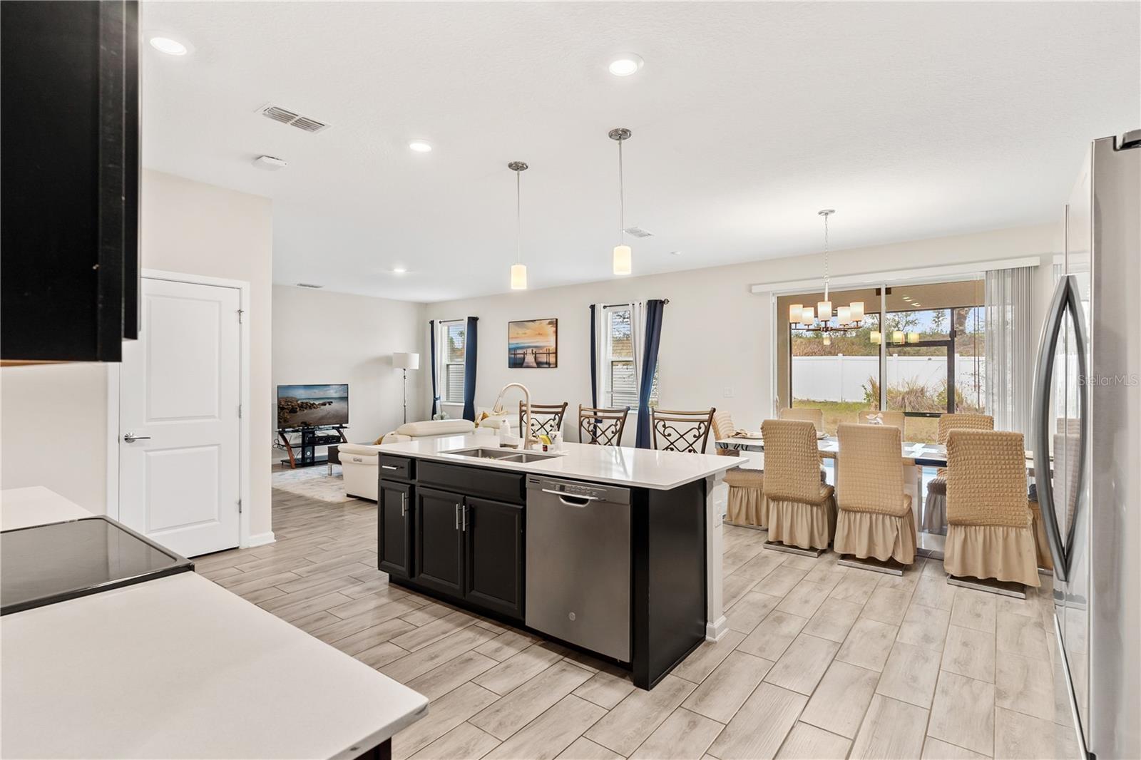 Big. Open. Convenient. Three virtues of a truly remarkable home! From the moment you pull into the brick paver driveway, you'll find over 3,000 reasons to say yes to this home. Offering 4 bedrooms, 2.5 baths, and over 3,000 sq. ft. of thoughtfully designed living space, this home is where comfort meets convenience in the best way possible. Step inside and prepare to be floored—literally! The open-concept layout is designed for effortless everyday living and entertaining. A dedicated office/den greets you at the entrance, leading seamlessly into the heart of the home. The kitchen is an entertainer’s dream, featuring a huge center island, stunning quartz countertops, abundant cabinet and counter space, a large walk-in pantry, and stainless steel appliances—including a brand-new refrigerator. Overlooking the dining and family room, this space invites gatherings of all sizes. The wood plank tile flooring throughout the entire first floor adds a touch of warmth and durability, and the dining area opens to a screened-in lanai—perfect for enjoying Florida’s beautiful weather. Thinking about adding a pool? You’ll love the conveniently placed half bath with direct backyard access, making future pool days even easier. Head upstairs to discover a versatile bonus room, ideal as a second living area, game room, or even a home gym. The spacious primary suite is a true retreat, complete with dual vanities, quartz countertops, a luxurious garden tub, a walk-in shower, and an oversized walk-in closet that connects directly to the laundry room. Bedrooms 2, 3, and 4 are generously sized with cozy carpeting, and the guest bath is smartly designed with dual vanities and a separate tub/shower area for added convenience.Outside, the fully fenced backyard offers privacy and plenty of room to play, garden, or just unwind. All furniture available for purchase. And when it comes to location, this home has connections! Just minutes from Cherry Lake Park, with its scenic trails, playgrounds, and picnic areas, as well as downtown Clermont, the Turnpike, and Lakeridge Winery. A home like this doesn’t just check the boxes—it sets the standard. Don’t settle for less! Call today to schedule your private tour and make this incredible home yours.