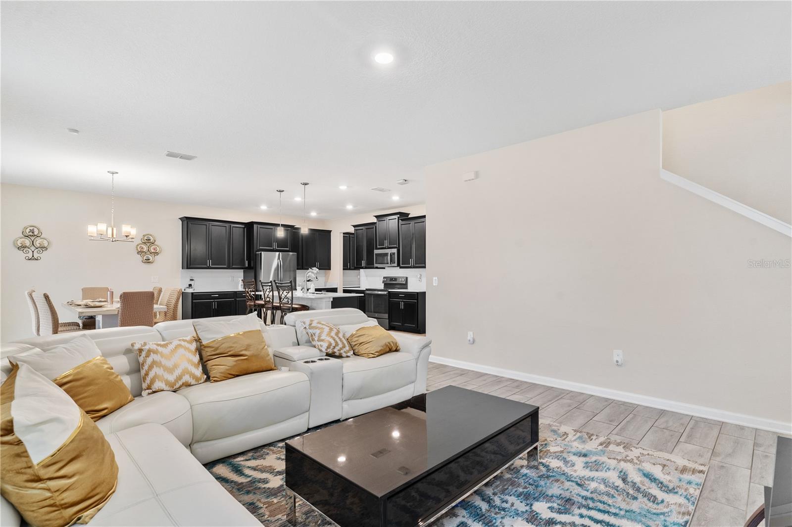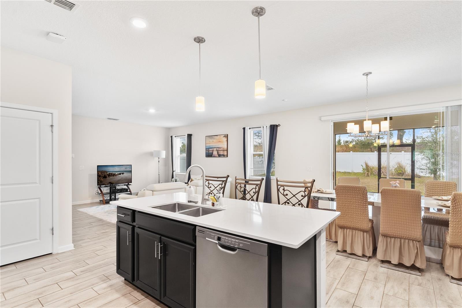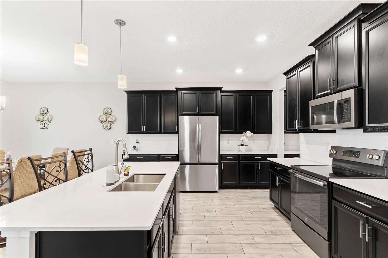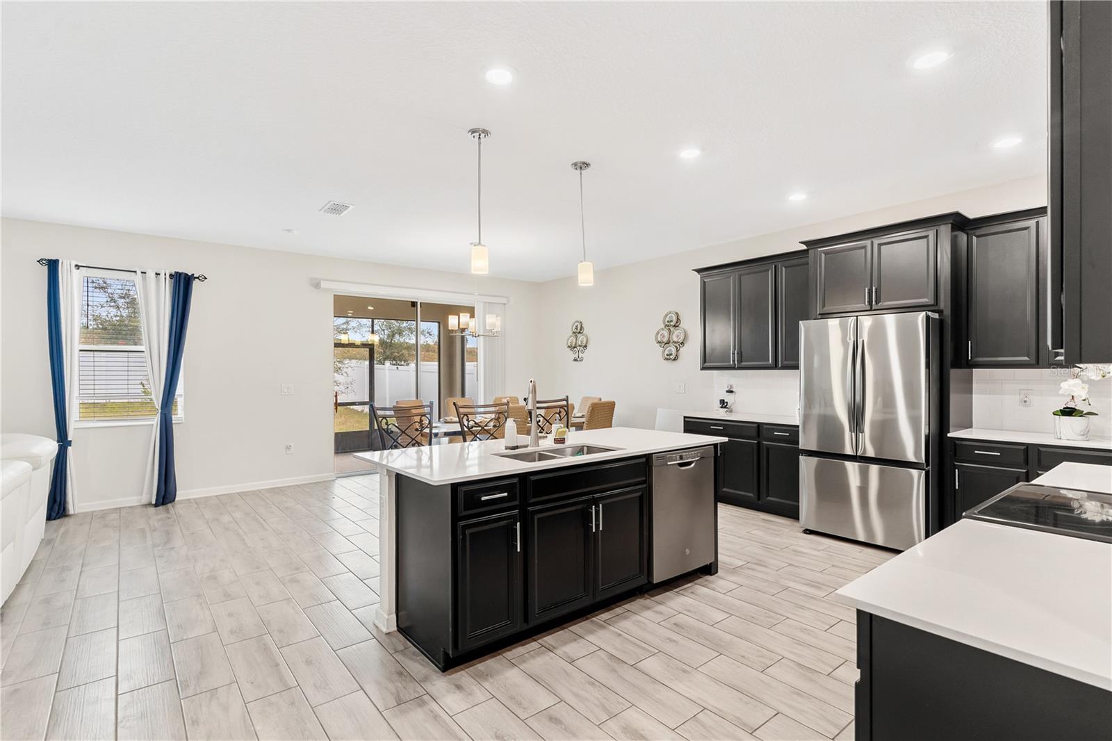 Big. Open. Convenient. Three virtues of a truly remarkable home! From the moment you pull into the brick paver driveway, you'll find over 3,000 reasons to say yes to this home. Offering 4 bedrooms, 2.5 baths, and over 3,000 sq. ft. of thoughtfully designed living space, this home is where comfort meets convenience in the best way possible. Step inside and prepare to be floored—literally! The open-concept layout is designed for effortless everyday living and entertaining. A dedicated office/den greets you at the entrance, leading seamlessly into the heart of the home. The kitchen is an entertainer’s dream, featuring a huge center island, stunning quartz countertops, abundant cabinet and counter space, a large walk-in pantry, and stainless steel appliances—including a brand-new refrigerator. Overlooking the dining and family room, this space invites gatherings of all sizes. The wood plank tile flooring throughout the entire first floor adds a touch of warmth and durability, and the dining area opens to a screened-in lanai—perfect for enjoying Florida’s beautiful weather. Thinking about adding a pool? You’ll love the conveniently placed half bath with direct backyard access, making future pool days even easier. Head upstairs to discover a versatile bonus room, ideal as a second living area, game room, or even a home gym. The spacious primary suite is a true retreat, complete with dual vanities, quartz countertops, a luxurious garden tub, a walk-in shower, and an oversized walk-in closet that connects directly to the laundry room. Bedrooms 2, 3, and 4 are generously sized with cozy carpeting, and the guest bath is smartly designed with dual vanities and a separate tub/shower area for added convenience.Outside, the fully fenced backyard offers privacy and plenty of room to play, garden, or just unwind. All furniture available for purchase. And when it comes to location, this home has connections! Just minutes from Cherry Lake Park, with its scenic trails, playgrounds, and picnic areas, as well as downtown Clermont, the Turnpike, and Lakeridge Winery. A home like this doesn’t just check the boxes—it sets the standard. Don’t settle for less! Call today to schedule your private tour and make this incredible home yours.