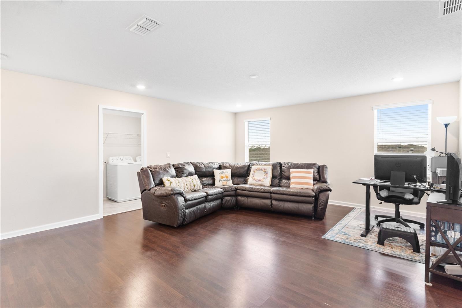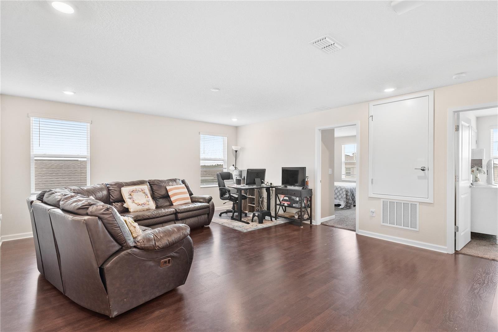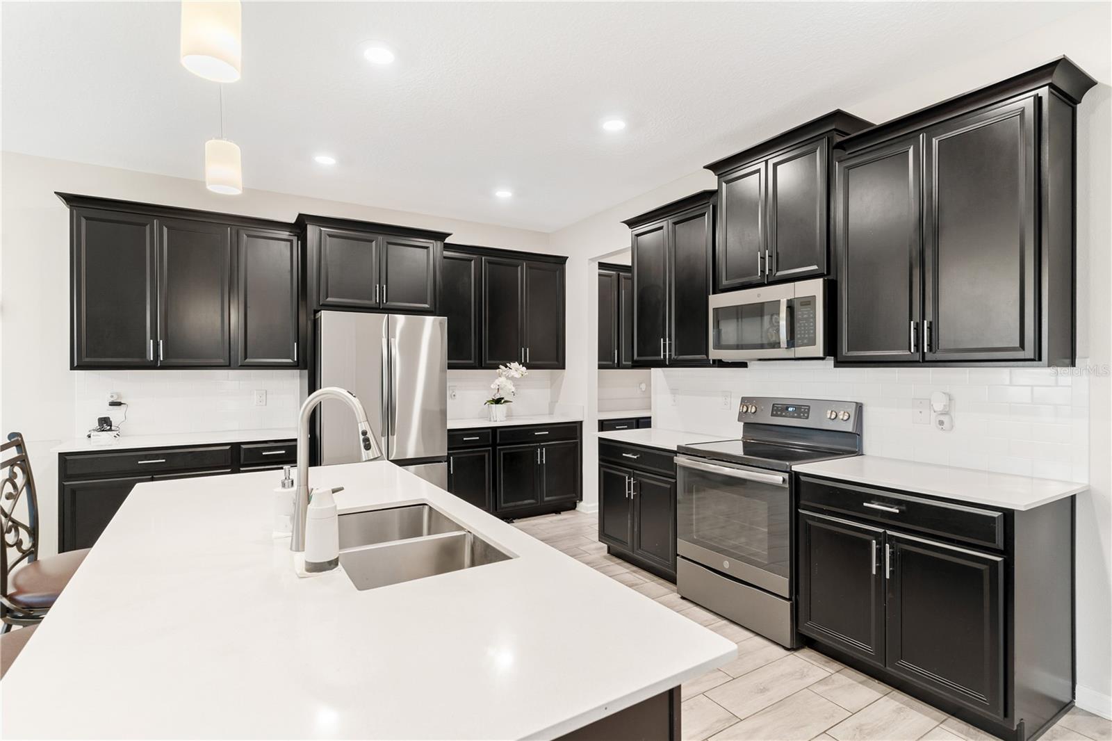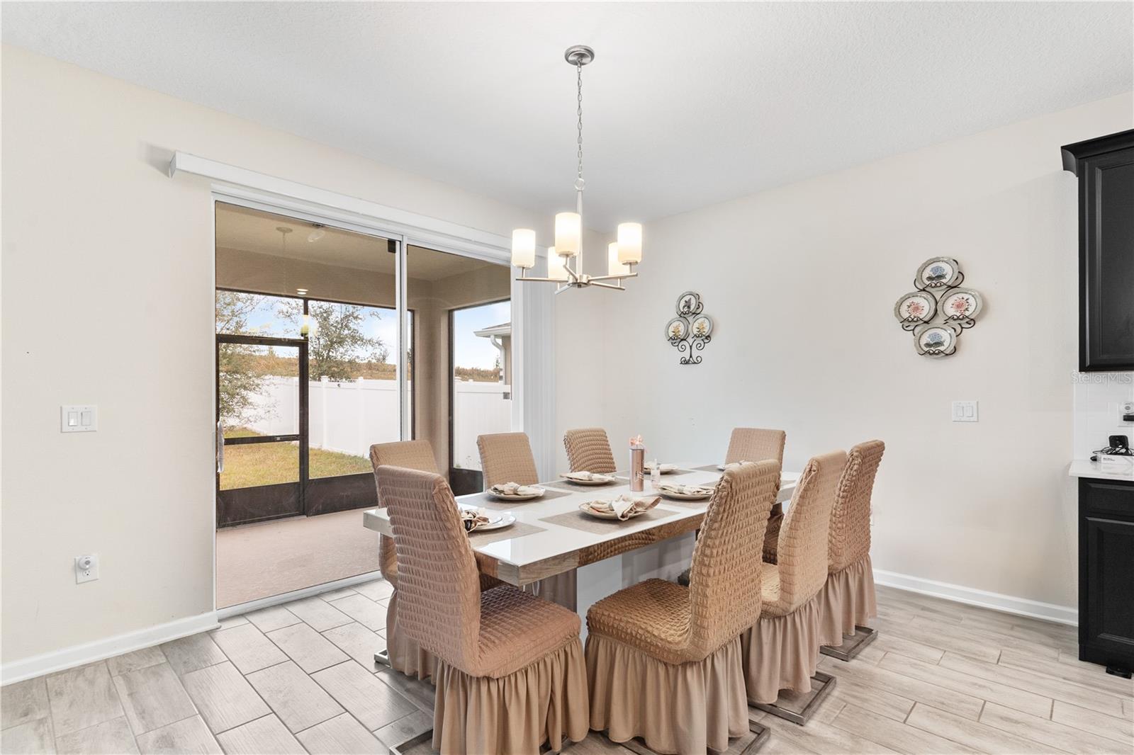 Big. Open. Convenient. Three virtues of a truly remarkable home! From the moment you pull into the brick paver driveway, you'll find over 3,000 reasons to say yes to this home. Offering 4 bedrooms, 2.5 baths, and over 3,000 sq. ft. of thoughtfully designed living space, this home is where comfort meets convenience in the best way possible. Step inside and prepare to be floored—literally! The open-concept layout is designed for effortless everyday living and entertaining. A dedicated office/den greets you at the entrance, leading seamlessly into the heart of the home. The kitchen is an entertainer’s dream, featuring a huge center island, stunning quartz countertops, abundant cabinet and counter space, a large walk-in pantry, and stainless steel appliances—including a brand-new refrigerator. Overlooking the dining and family room, this space invites gatherings of all sizes. The wood plank tile flooring throughout the entire first floor adds a touch of warmth and durability, and the dining area opens to a screened-in lanai—perfect for enjoying Florida’s beautiful weather. Thinking about adding a pool? You’ll love the conveniently placed half bath with direct backyard access, making future pool days even easier. Head upstairs to discover a versatile bonus room, ideal as a second living area, game room, or even a home gym. The spacious primary suite is a true retreat, complete with dual vanities, quartz countertops, a luxurious garden tub, a walk-in shower, and an oversized walk-in closet that connects directly to the laundry room. Bedrooms 2, 3, and 4 are generously sized with cozy carpeting, and the guest bath is smartly designed with dual vanities and a separate tub/shower area for added convenience.Outside, the fully fenced backyard offers privacy and plenty of room to play, garden, or just unwind. All furniture available for purchase. And when it comes to location, this home has connections! Just minutes from Cherry Lake Park, with its scenic trails, playgrounds, and picnic areas, as well as downtown Clermont, the Turnpike, and Lakeridge Winery. A home like this doesn’t just check the boxes—it sets the standard. Don’t settle for less! Call today to schedule your private tour and make this incredible home yours.