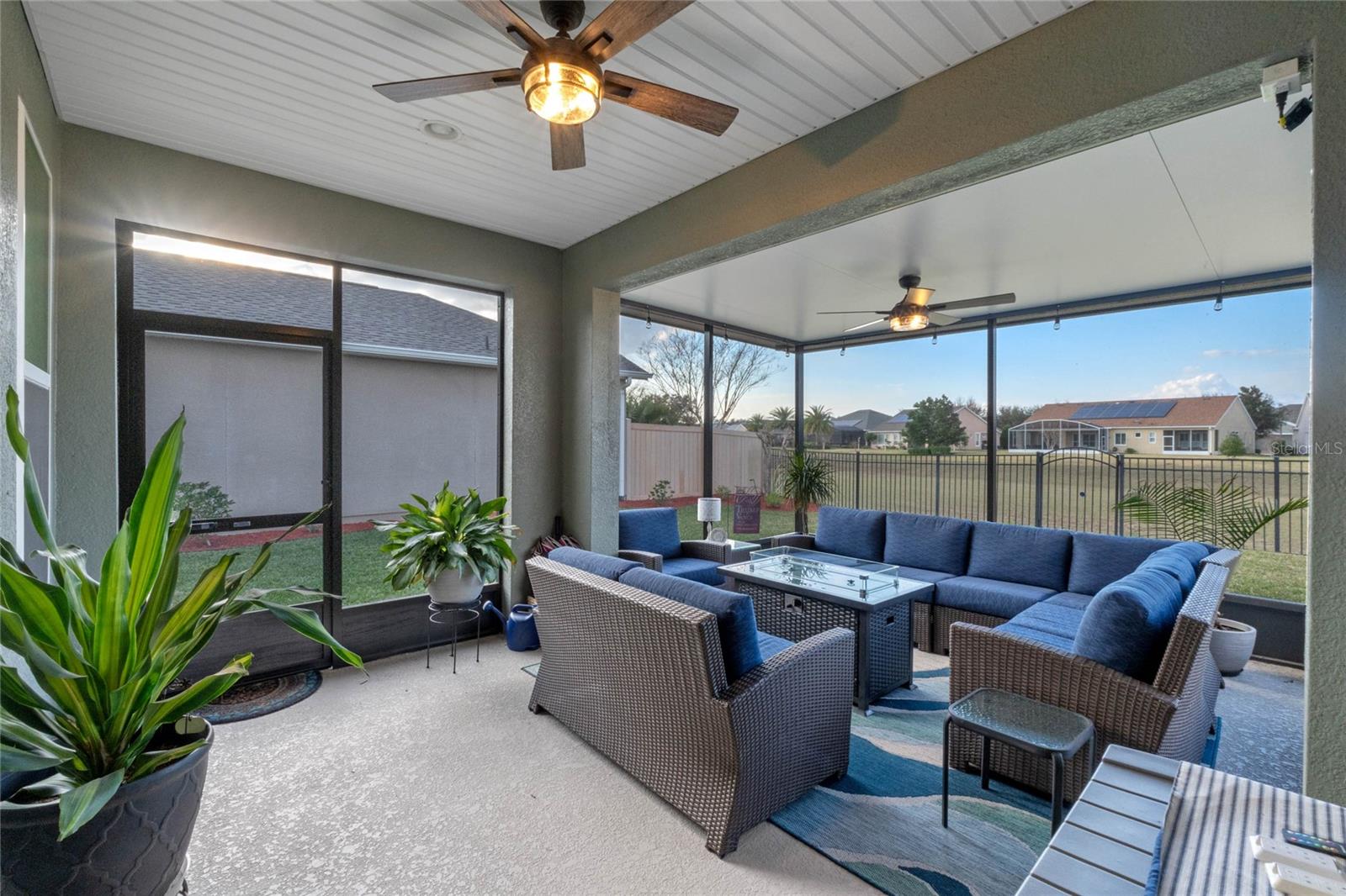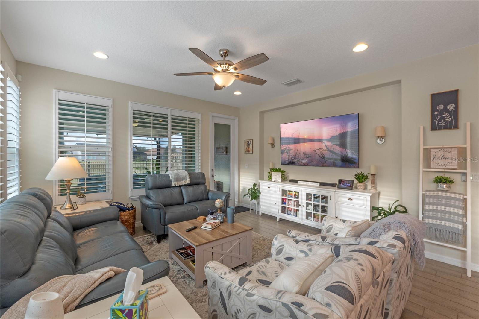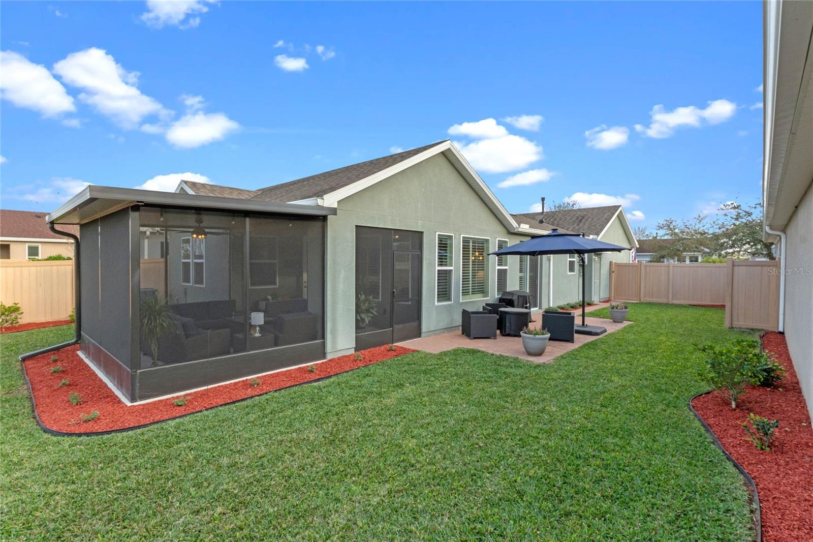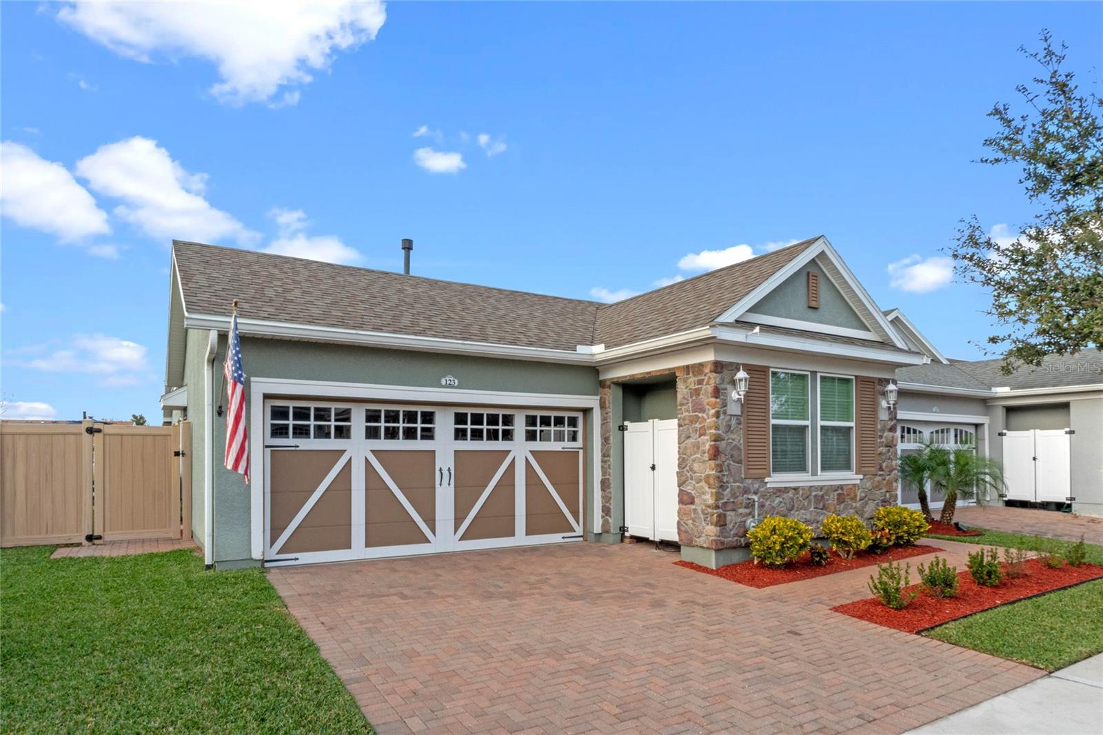 Nestled in the highly sought-after gated community of Trilogy, this stunning 2-bedroom, 2-bath home offers both comfort and style in a 55+ very active community. The spacious kitchen boasts a large breakfast bar and a gas stove, plus there's a tankless hot water heater, perfect for modern convenience. Plantation shutters adorn the windows, adding a touch of elegance throughout. Enjoy outdoor living with two inviting patios—one extended in December os 2023, screened, and covered for year-round enjoyment; and the other open to bask in Florida's sunshine. A fenced area overlooks a picturesque green space, providing a peaceful retreat. The primary suite is a true sanctuary, featuring an en suite bath with a luxurious walk-in shower, dual vanities, and a private water closet. For added privacy, the guest bedroom is situated on the opposite end of the home. An office space makes working from home effortless. Experience resort-style living in Trilogy, where community amenities and an active lifestyle await, including a fitness center with locker rooms, spa and massage; a fabulous restaurant and bar, heated indoor/outdoor pool, tennis/pickle ball courts, entertainment center for concerts, dances and parties; walking tracks, dog park, poker lounge, golf simulator, billiards and tons of activities. Call to schedule your private showing today!