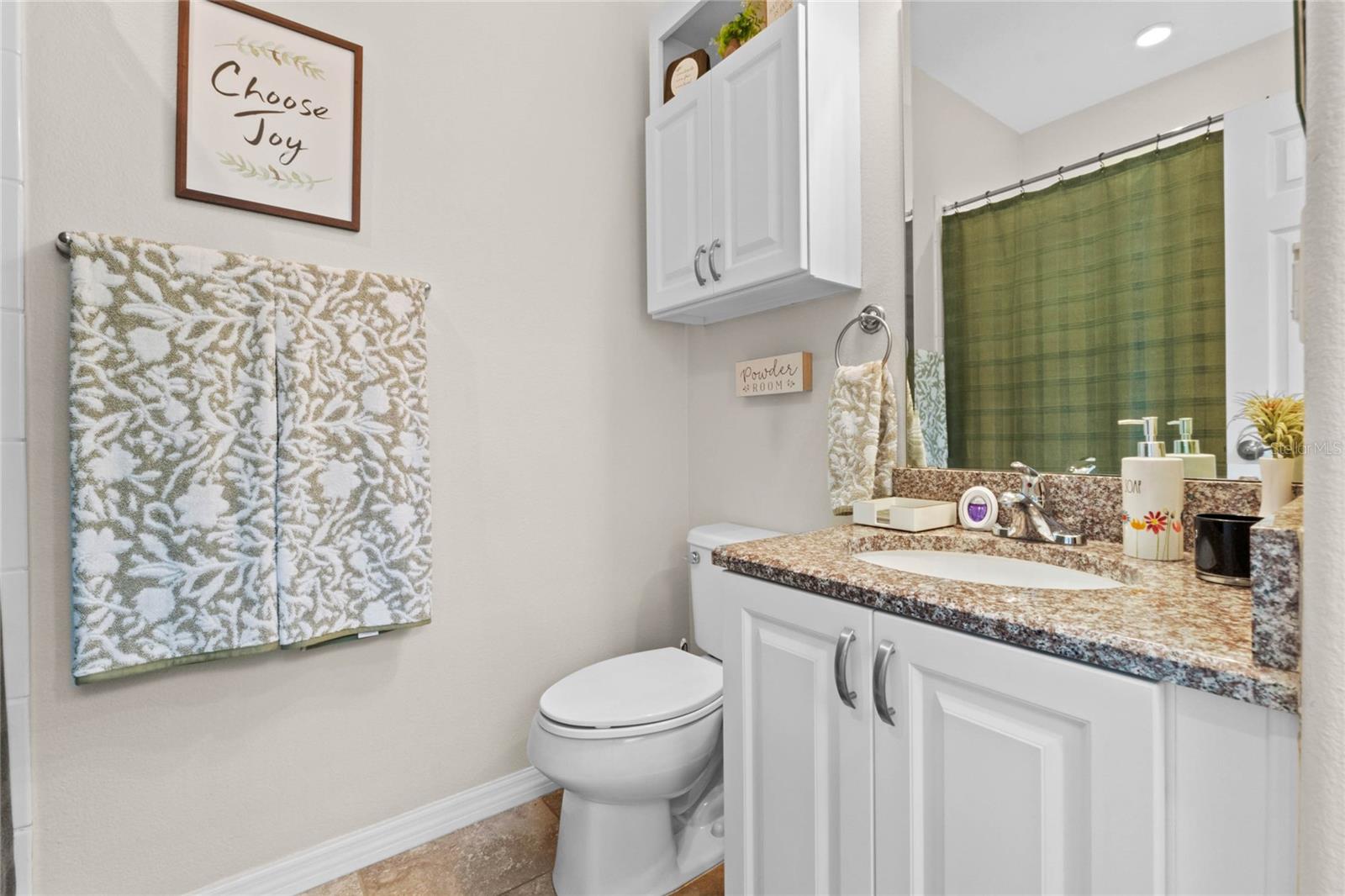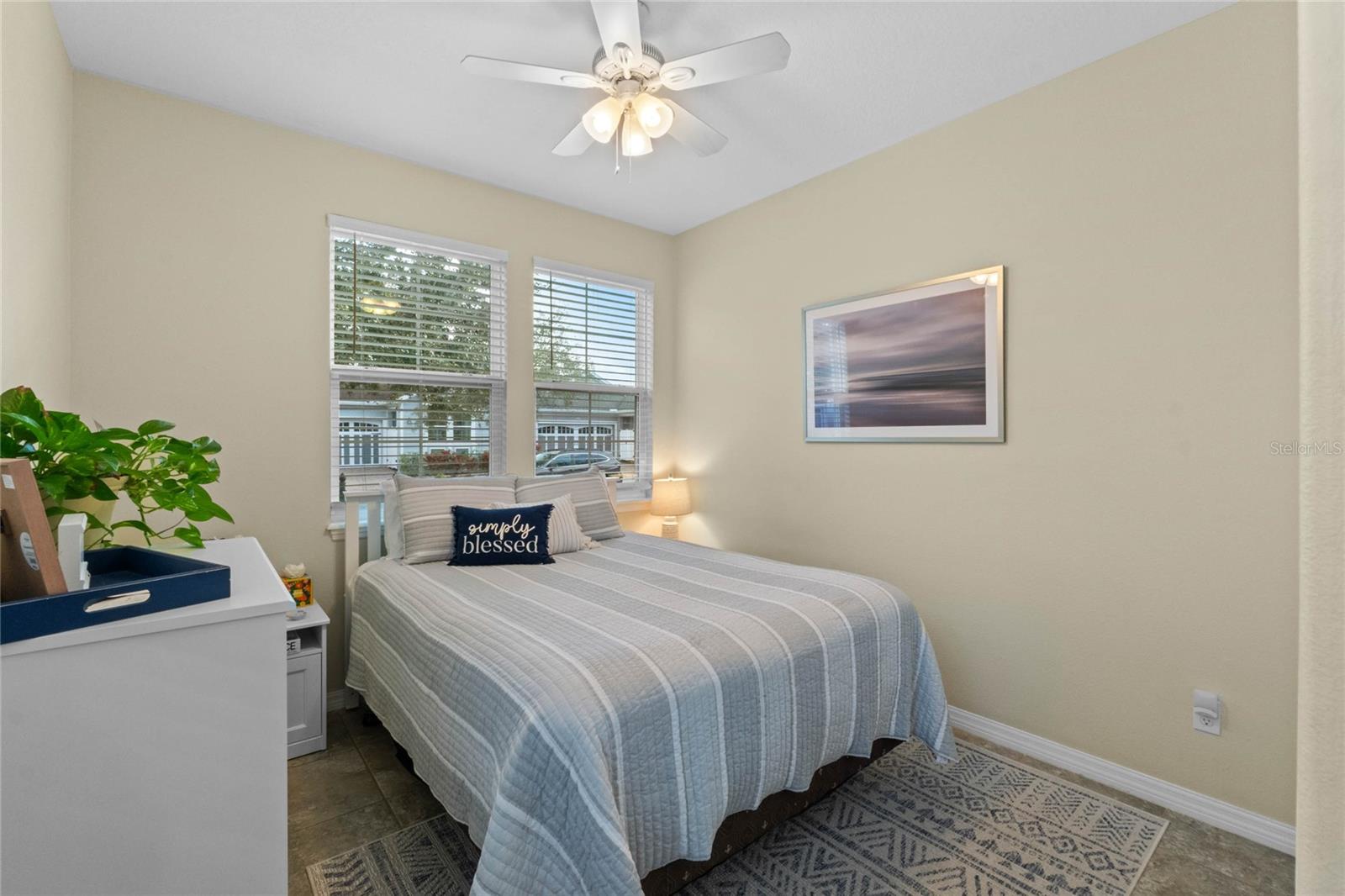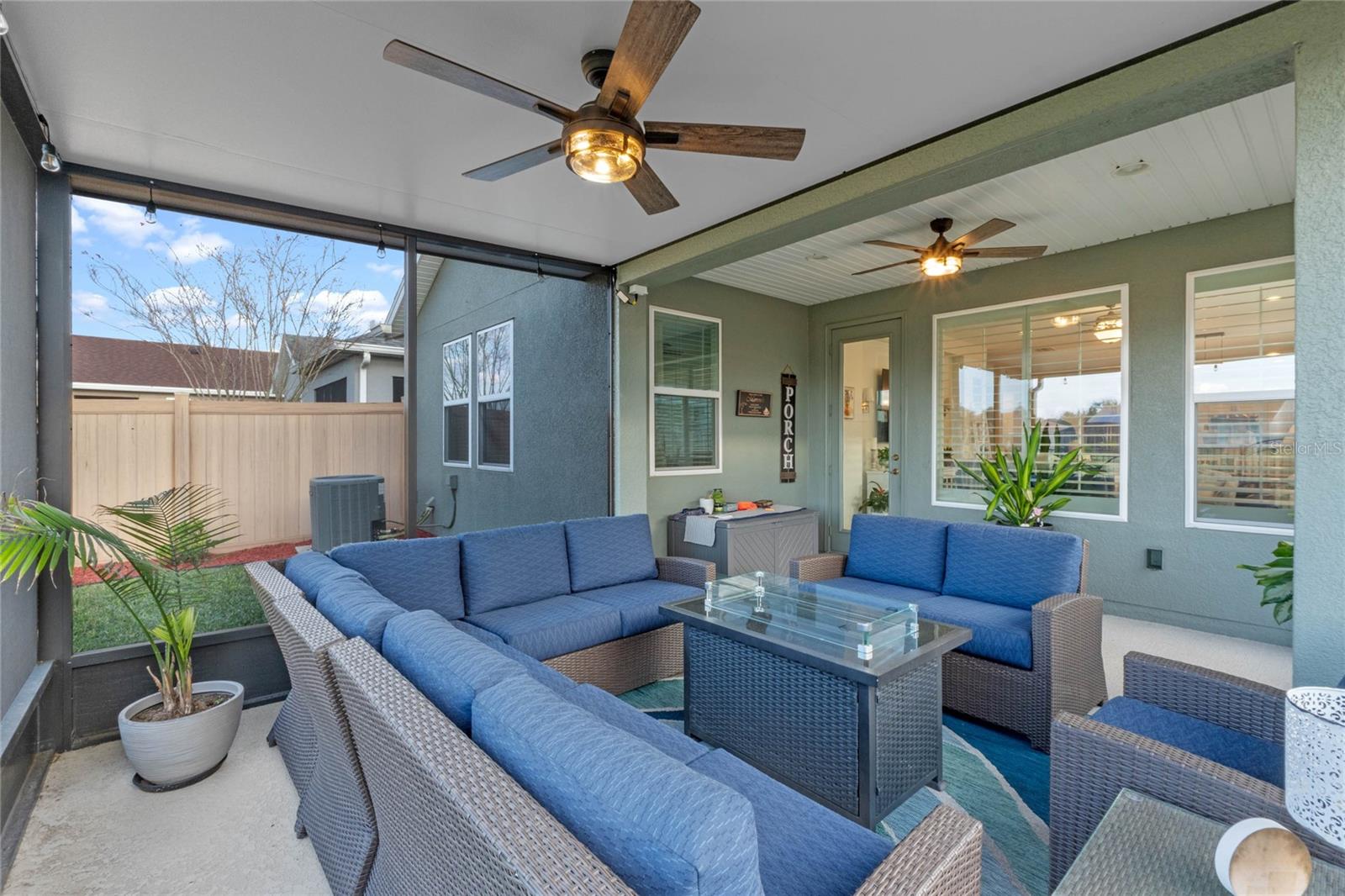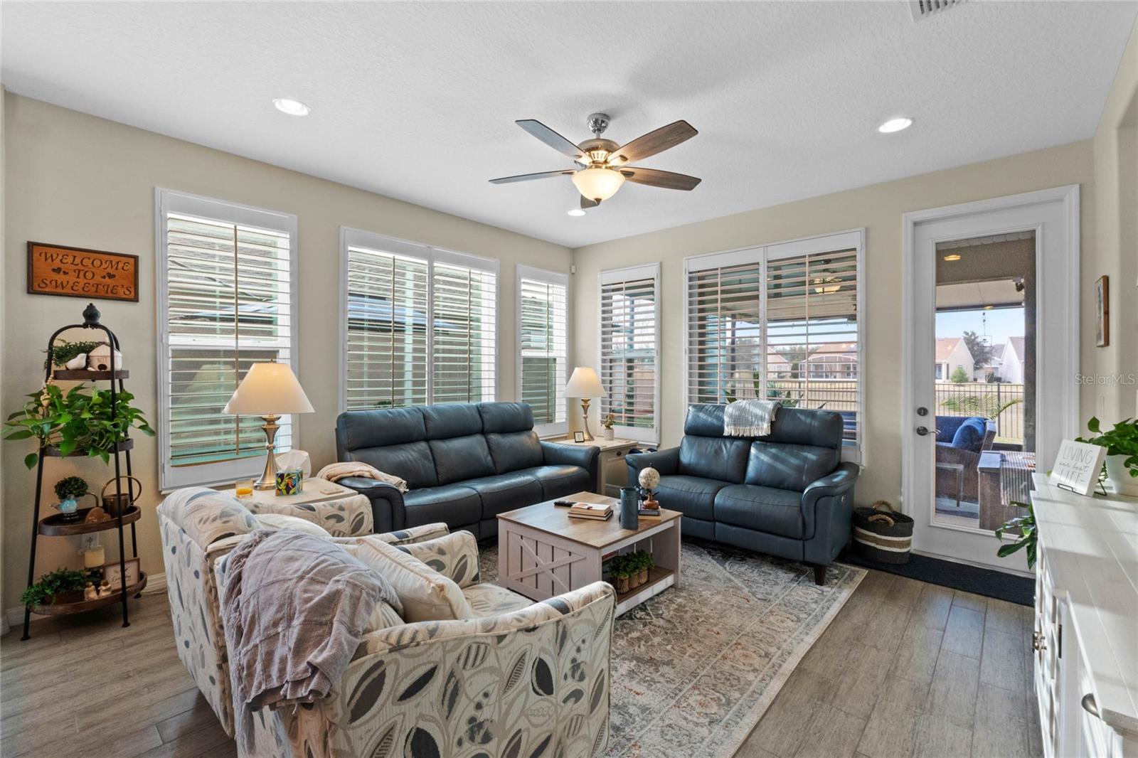 Nestled in the highly sought-after gated community of Trilogy, this stunning 2-bedroom, 2-bath home offers both comfort and style in a 55+ very active community. The spacious kitchen boasts a large breakfast bar and a gas stove, plus there's a tankless hot water heater, perfect for modern convenience. Plantation shutters adorn the windows, adding a touch of elegance throughout. Enjoy outdoor living with two inviting patios—one extended in December os 2023, screened, and covered for year-round enjoyment; and the other open to bask in Florida's sunshine. A fenced area overlooks a picturesque green space, providing a peaceful retreat. The primary suite is a true sanctuary, featuring an en suite bath with a luxurious walk-in shower, dual vanities, and a private water closet. For added privacy, the guest bedroom is situated on the opposite end of the home. An office space makes working from home effortless. Experience resort-style living in Trilogy, where community amenities and an active lifestyle await, including a fitness center with locker rooms, spa and massage; a fabulous restaurant and bar, heated indoor/outdoor pool, tennis/pickle ball courts, entertainment center for concerts, dances and parties; walking tracks, dog park, poker lounge, golf simulator, billiards and tons of activities. Call to schedule your private showing today!