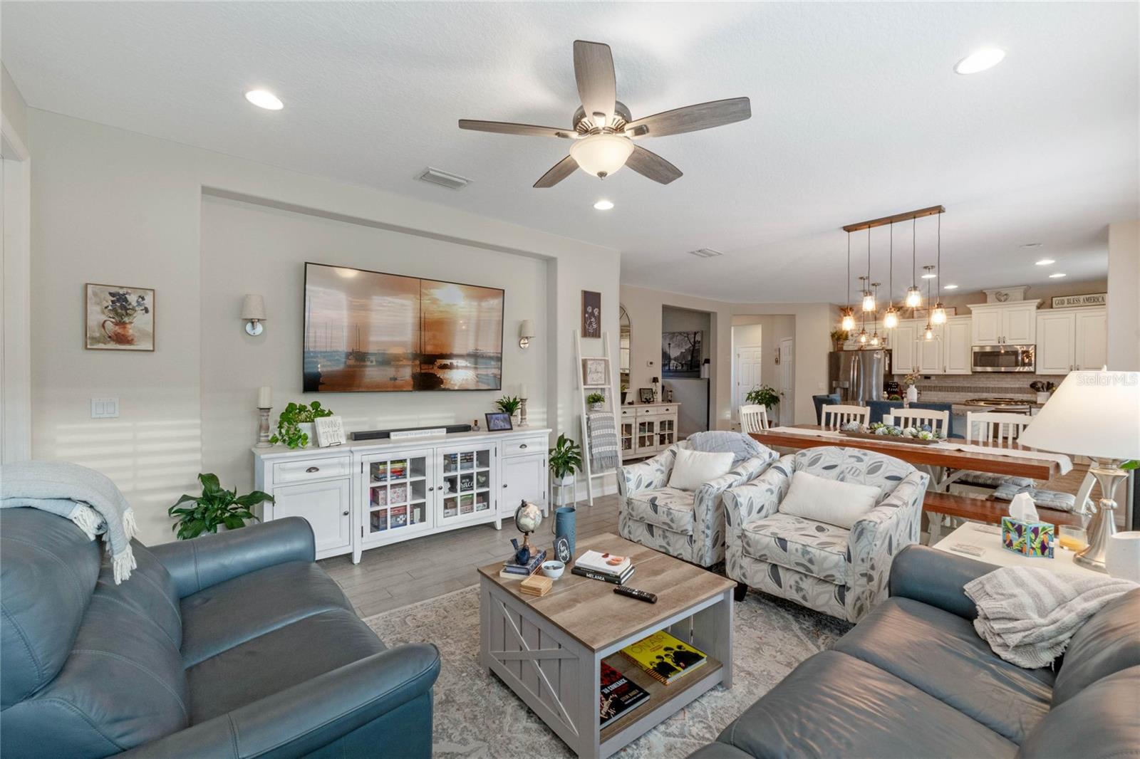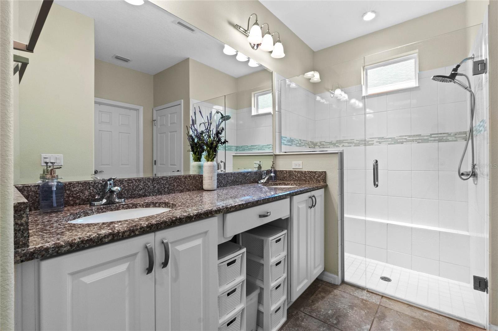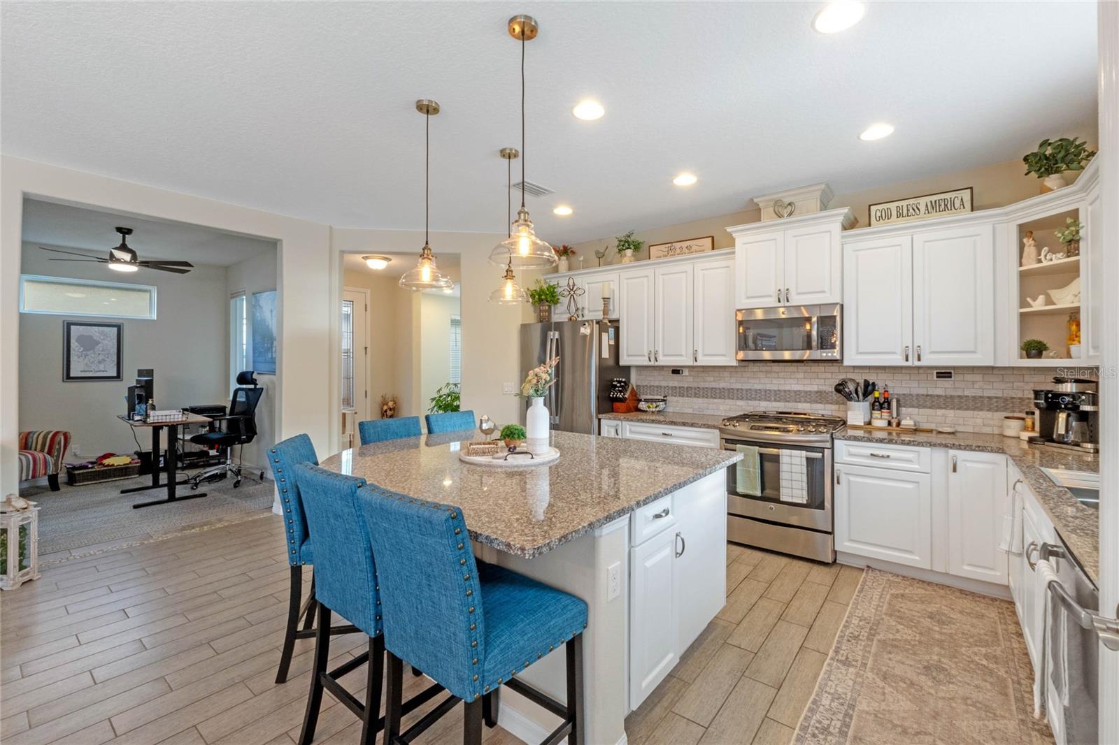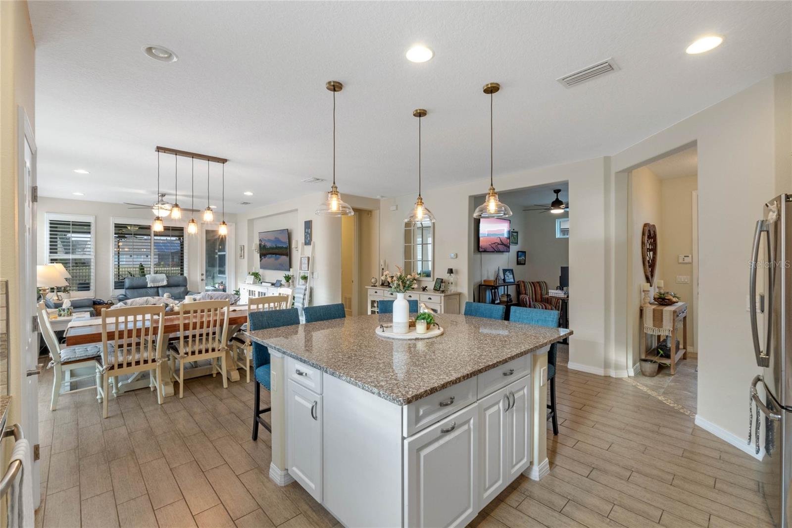 Nestled in the highly sought-after gated community of Trilogy, this stunning 2-bedroom, 2-bath home offers both comfort and style in a 55+ very active community. The spacious kitchen boasts a large breakfast bar and a gas stove, plus there's a tankless hot water heater, perfect for modern convenience. Plantation shutters adorn the windows, adding a touch of elegance throughout. Enjoy outdoor living with two inviting patios—one extended in December os 2023, screened, and covered for year-round enjoyment; and the other open to bask in Florida's sunshine. A fenced area overlooks a picturesque green space, providing a peaceful retreat. The primary suite is a true sanctuary, featuring an en suite bath with a luxurious walk-in shower, dual vanities, and a private water closet. For added privacy, the guest bedroom is situated on the opposite end of the home. An office space makes working from home effortless. Experience resort-style living in Trilogy, where community amenities and an active lifestyle await, including a fitness center with locker rooms, spa and massage; a fabulous restaurant and bar, heated indoor/outdoor pool, tennis/pickle ball courts, entertainment center for concerts, dances and parties; walking tracks, dog park, poker lounge, golf simulator, billiards and tons of activities. Call to schedule your private showing today!