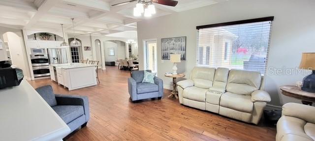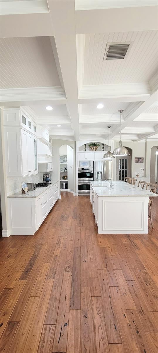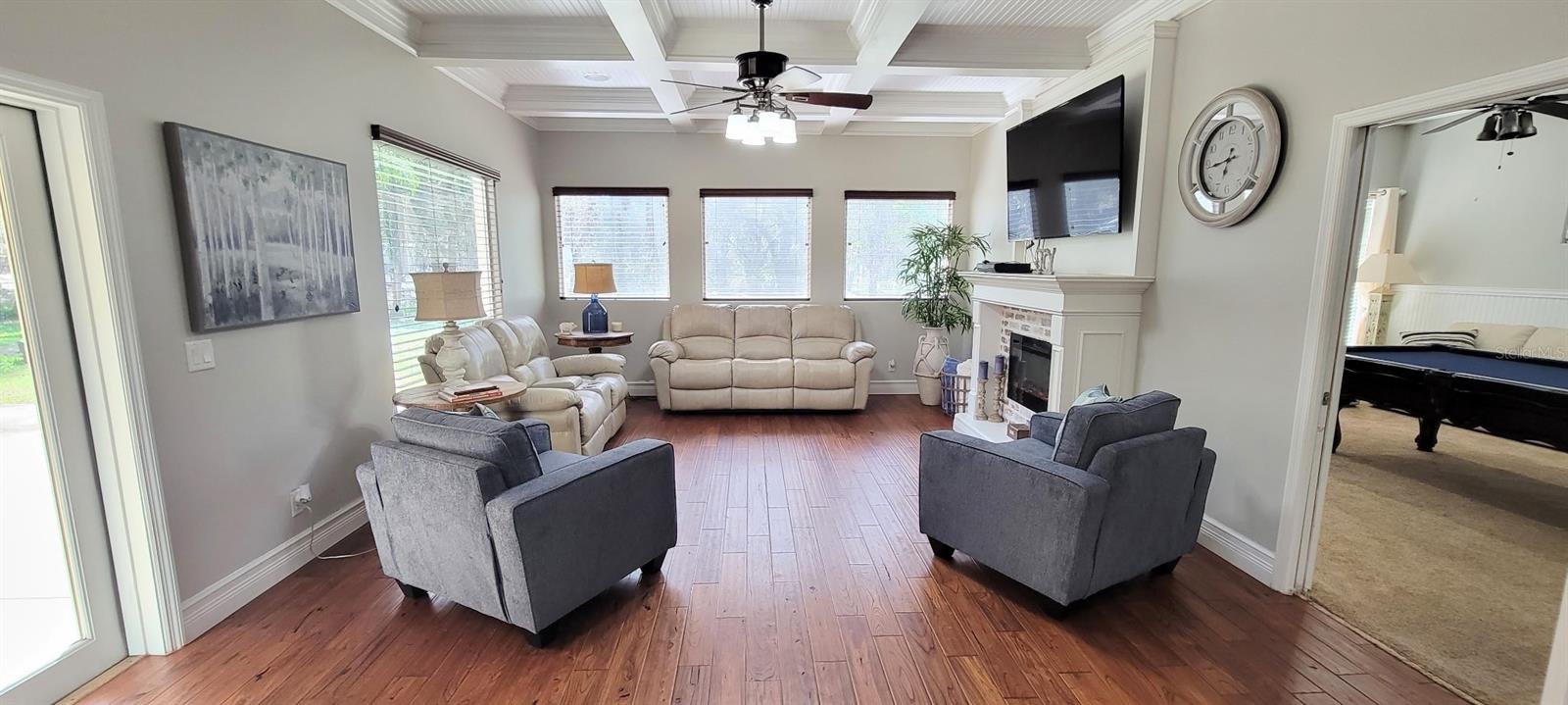 Price reduced 20K for this beautiful custom-built single-family home, constructed in 2007, is situated on a 1-acre lot in Groveland, Florida. The residence offers 3,137 square feet of living space, featuring 3 bedrooms and 3.5 bathrooms. An oversized office provides additional flexible space, potentially serving as a fourth bedroom. The property includes a spacious second living area with a half bath, ideal for entertaining or relaxation. A gourmet kitchen with custom cabinetry, large island with seating, marble counter tops & coffered ceilings. The home is also equipped with a generator hook up for emergencies and an oversized garage. An extended back porch with fire pit is a great area for entertaining. Schedule a showing today & don't miss out.
