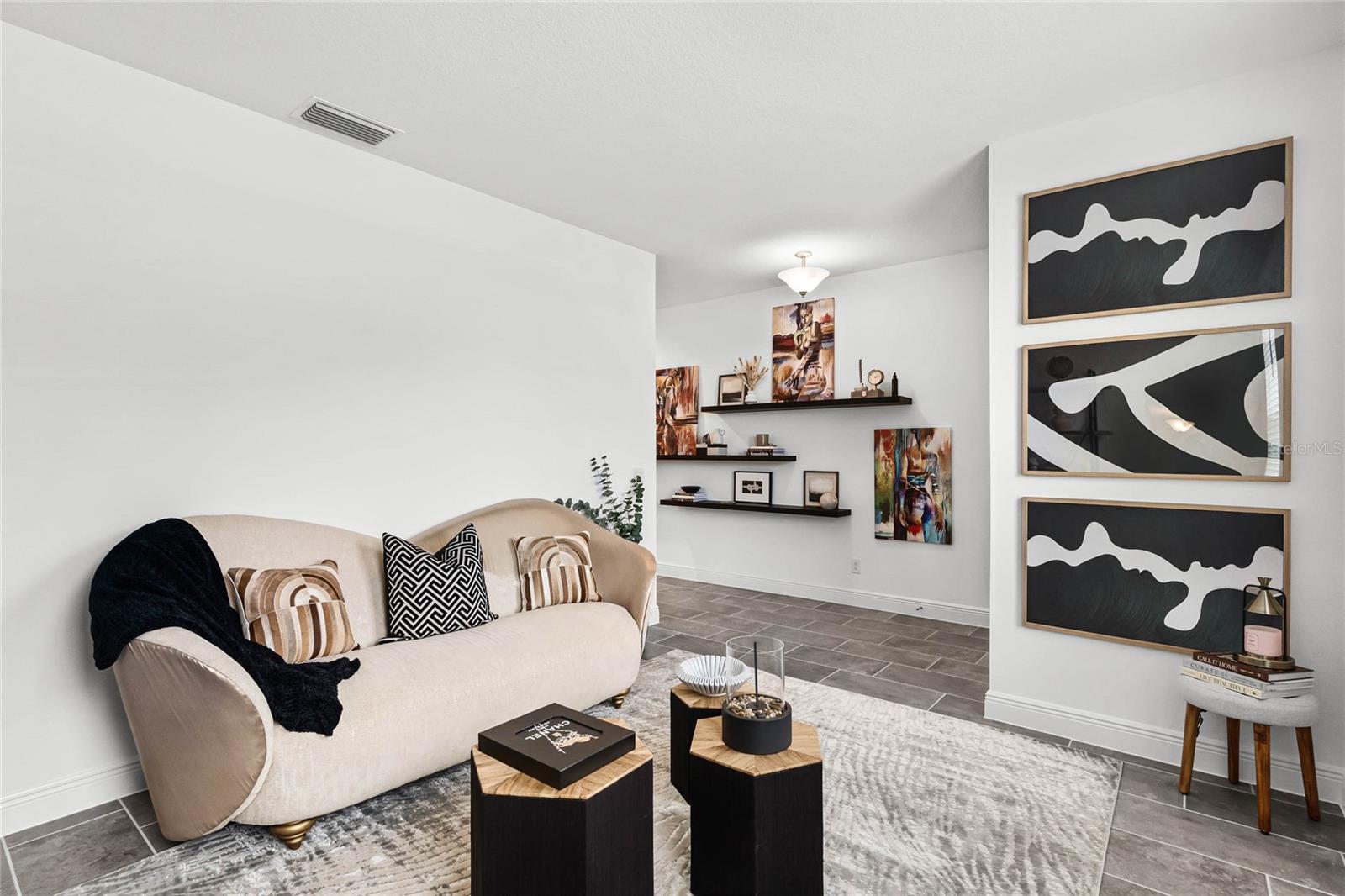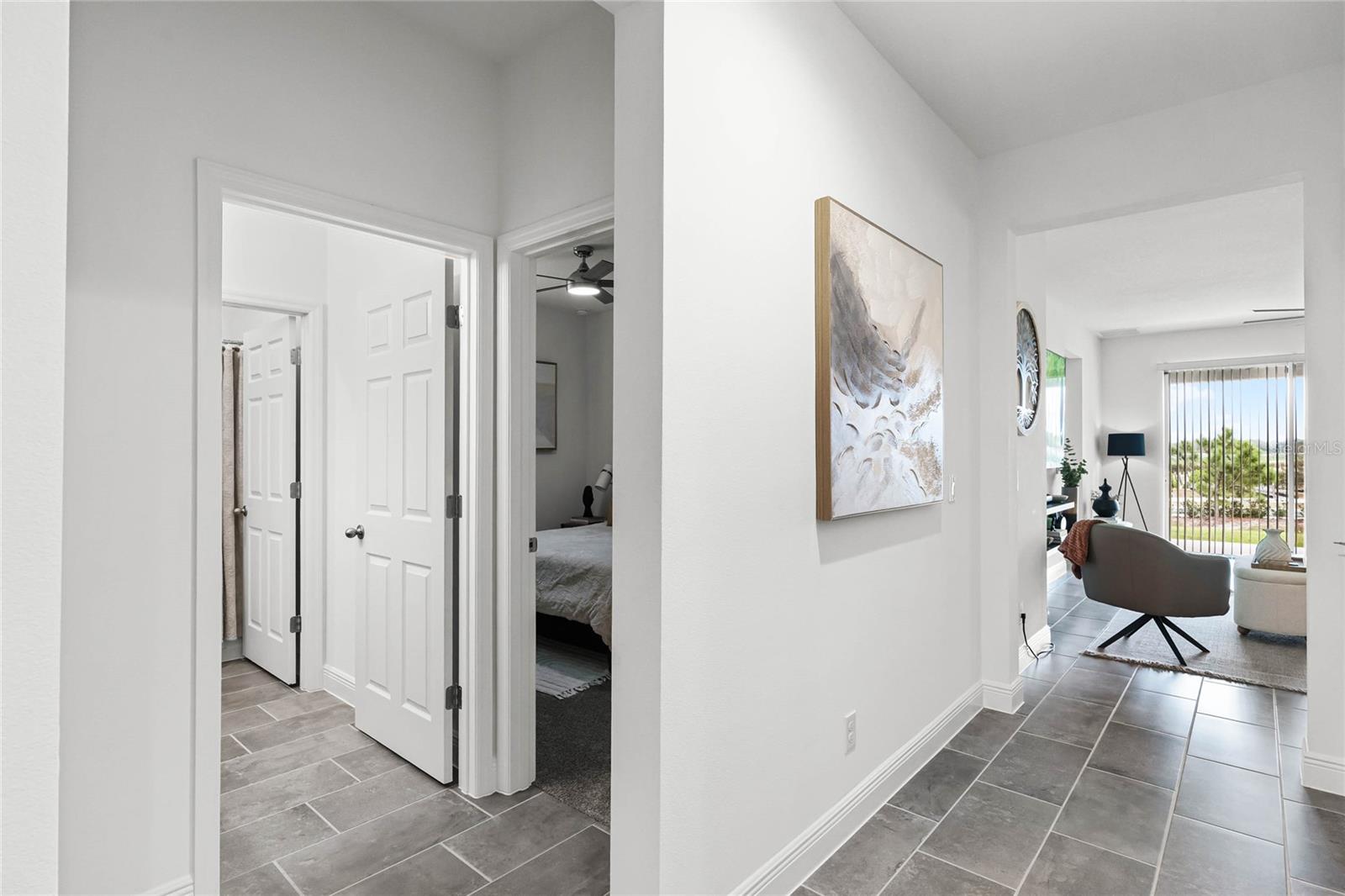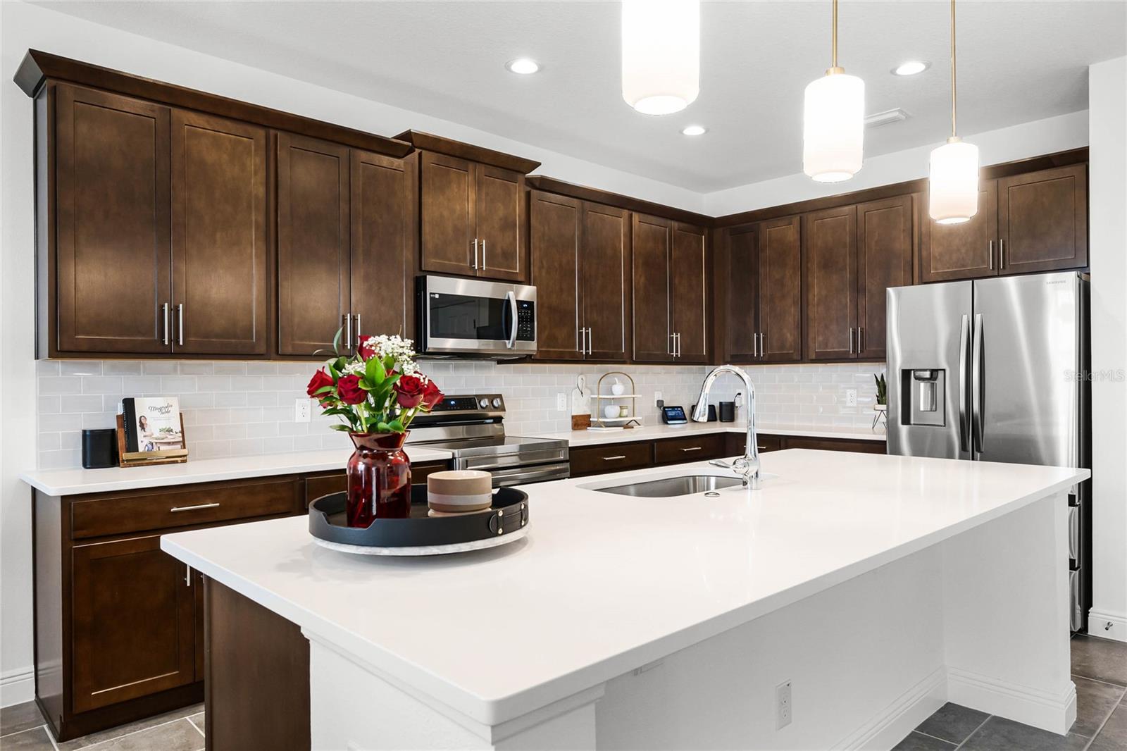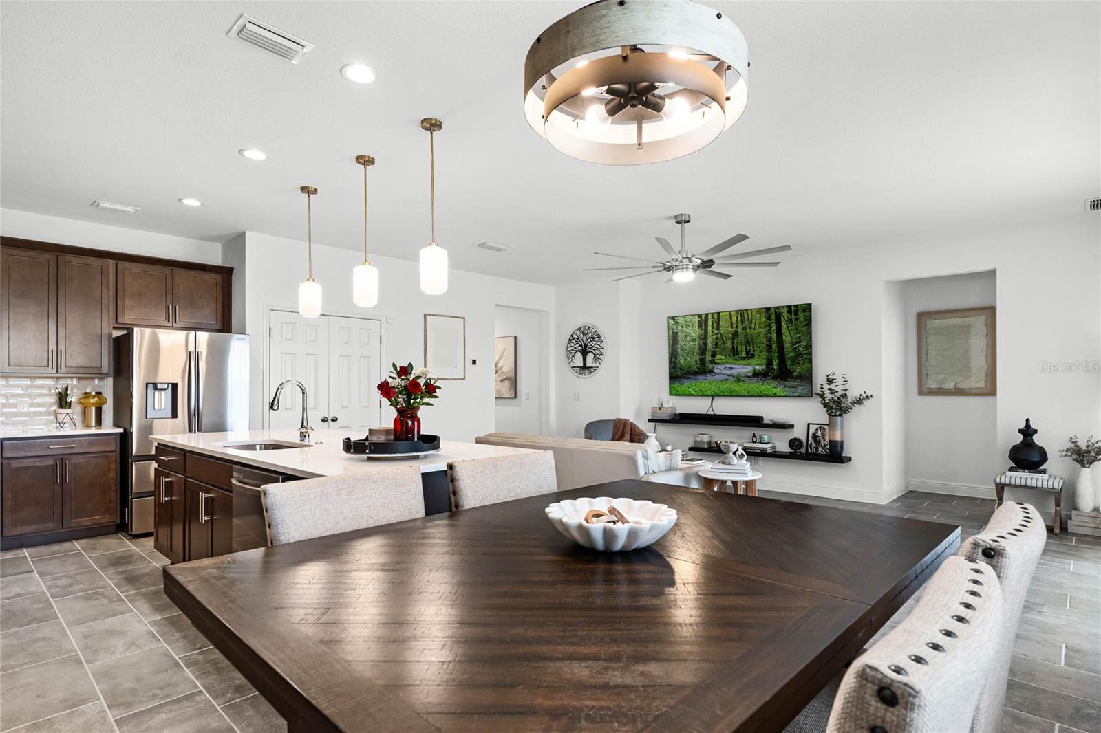 Experience the epitome of luxury living in Groveland's esteemed Trinity Lakes community! Discover a stunning 4-bedroom, 2-bathroom haven, meticulously crafted in 2024, boasting 2,103 sq. ft. of refined elegance. As you step inside, you'll be greeted by an airy open floor plan, adorned with soaring ceilings, exquisite tile flooring, and an abundance of natural light. Key Features include: • Spacious Living Area: Seamlessly blending the family room and gourmet kitchen, perfect for entertaining or relaxation. • Modern Kitchen: Equipped with sleek stainless steel appliances, quartz countertops, expansive island, and sophisticated dark cabinetry, a culinary haven awaits. • Primary Suite: Retreat to a serene oasis, complete with a spacious walk-in closet and lavish en-suite bathroom. • Outdoor Oasis: Unwind on a covered patio, overlooking a lush green backyard, perfect for alfresco dining or basking in the Florida sunshine. • 3-Car Garage: Ample space for vehicles, storage, or a home workshop. Community Amenities: Nestled within the coveted Trinity Lakes community, residents enjoy access to exceptional resort-style amenities, including a sparkling pool, fitness center, walking trails, and recreational areas. Conveniently located near major highways, this home offers effortless access to shopping, dining, and entertainment options, as well as breathtaking natural surroundings. Make 7193 Dilly Lake Avenue your dream haven—schedule a private tour today! (This home is listed UNDER appraised value).