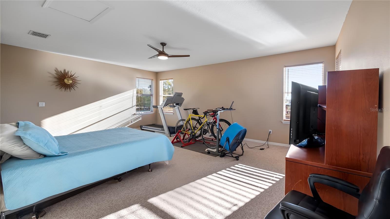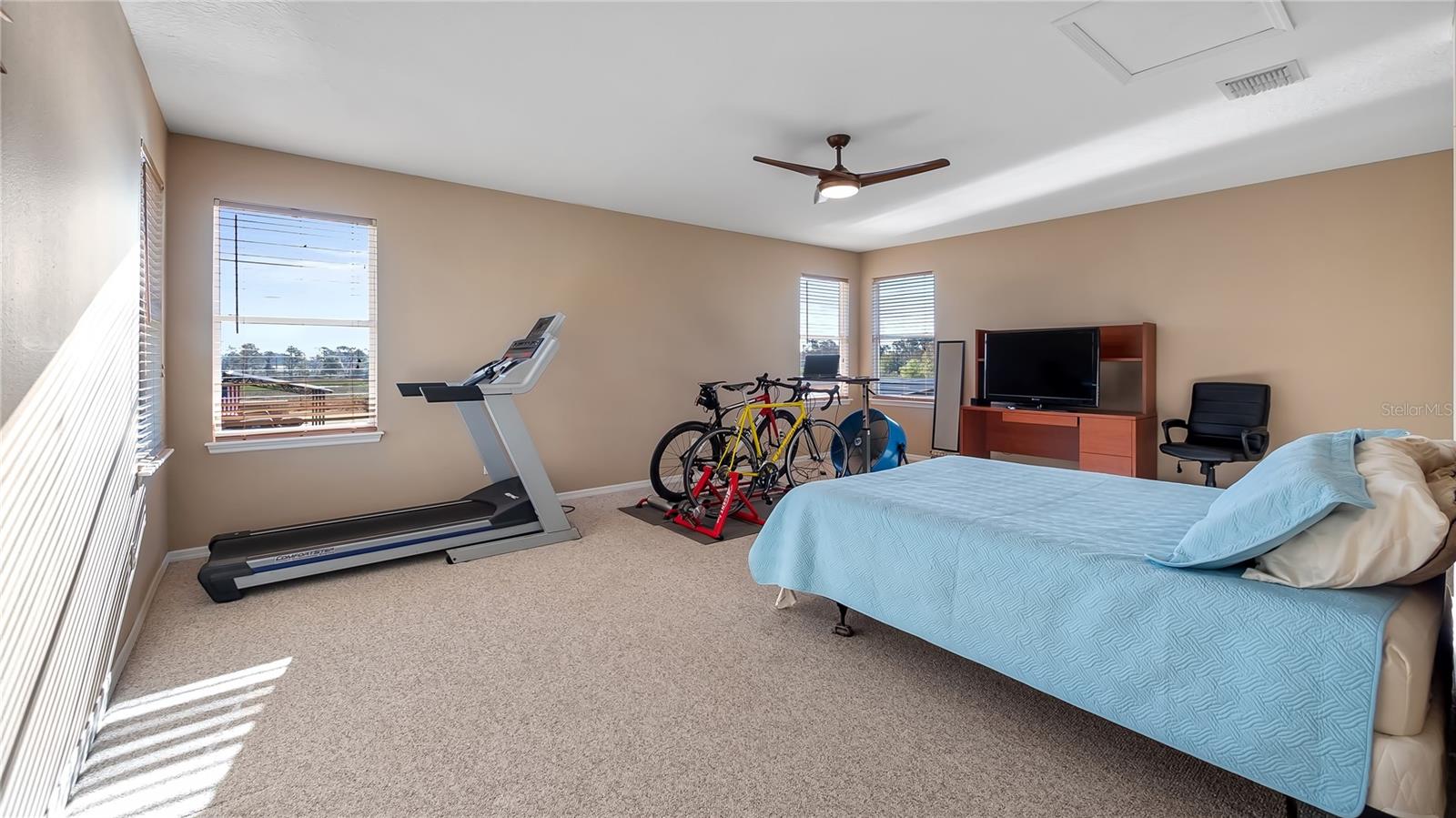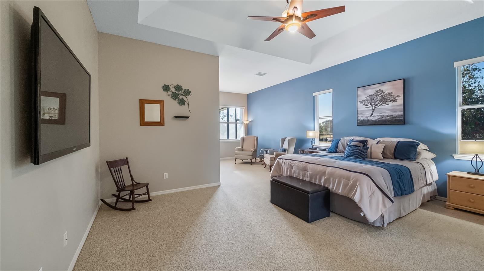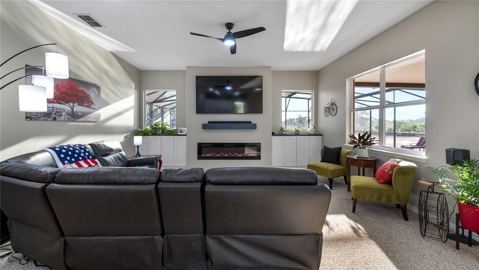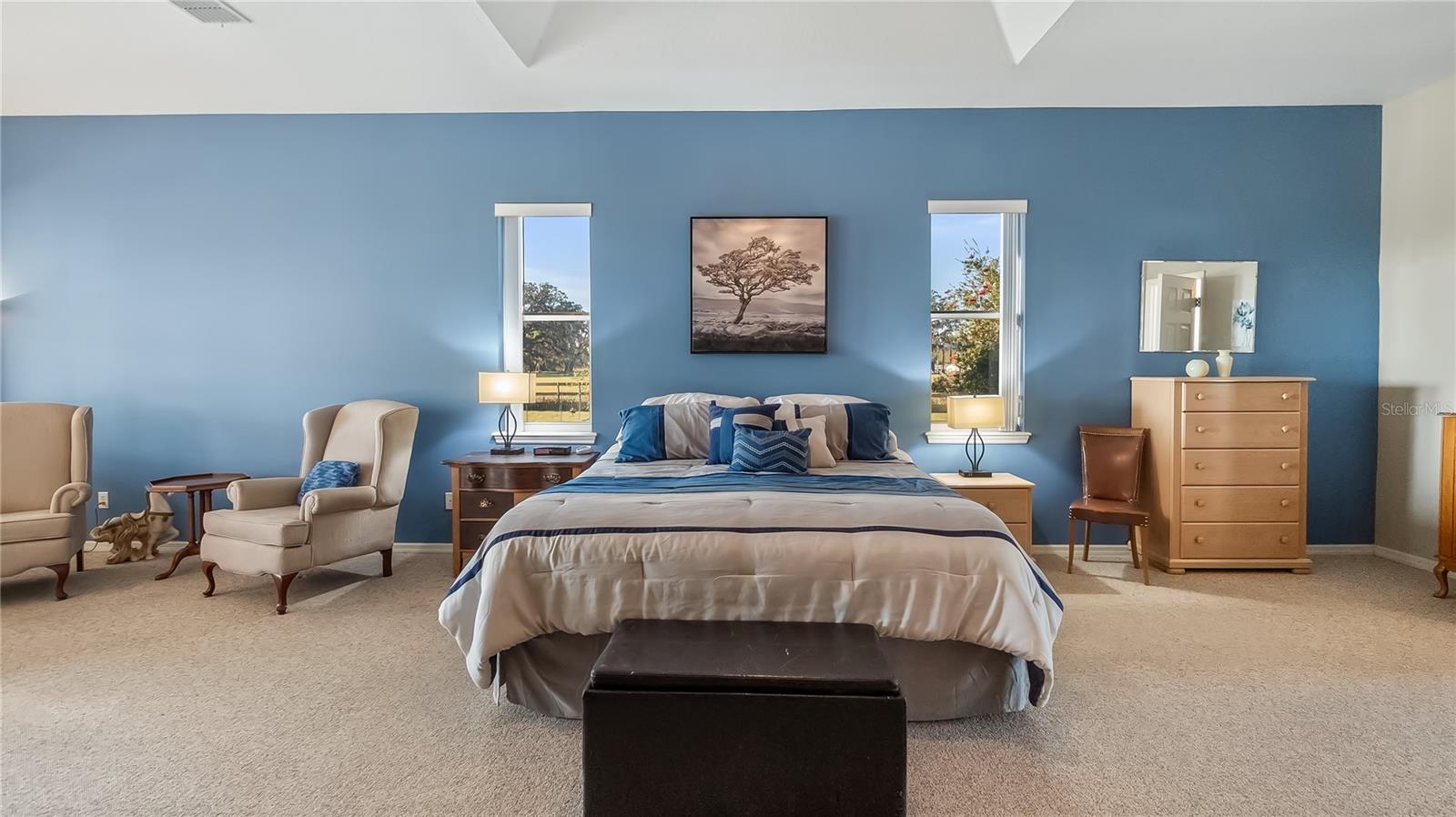 Welcome to your dream home, a stunning five-bedroom, four-bath property on five acres of beautiful land. This exceptional home offers comfort and luxury, with a fantastic floor plan that blends formal and family living spaces. The home provides a peaceful retreat while being close to all amenities you need. Upon entering, you'll be immediately impressed by the spacious layout. The main level features four large bedrooms, each with ample walk-in closet space and natural light. The oversized primary suite is a sanctuary, complete with a generous walk-in closet and a luxurious en-suite bath. For added convenience, the main level also includes two additional full baths, providing ultimate comfort for family members and guests alike. Upstairs, a huge loft offers plenty of room for a home office, entertainment area or additional living space. There is also a private bedroom and a full bath upstairs, ideal for guests or those seeking a bit more privacy. This home is equipped with modern features and upgrades, including a fiber modem installed with speeds of up to 1 gig, ensuring you’ll have fast and reliable internet for work, streaming or gaming. The air-conditioning units have recently been health-checked by Renaldi’s, ensuring the cooling system runs efficiently year-round and another air conditioner installed in garage! The garage has been recently updated with a fresh epoxy floor, providing a clean, durable surface. The roof, well pump and water heater have also been replaced, giving you peace of mind that all the major systems in the home are up to date. For those who love outdoor living, this property has it all. A 36x36x12-foot pole barn with separate 200-amp service and water offers endless possibilities for hobbies, storage or workspace. Whether you're a car enthusiast, a DIYer, or simply need extra space for your toys, this barn has you covered. Enjoy your mornings in the beautiful lanai, which provides an eastern view where you can watch stunning sunrises. On occasion, you may even be treated to the sight of a rocket launch! The lanai also offers a peaceful view of the no-bank lake, adding to the serene atmosphere of this private estate. Wildlife lovers will feel at home here, as the property is a sanctuary for numerous species of birds, including hawks, owls, cardinals, eagles, falcons, and sand cranes. It’s a nature lover’s paradise. For those who enjoy outdoor recreation, the property features an 18,000-gallon saltwater sports pool with water features and lights, all powered by a variable-speed Pentair pool pump. Whether you're swimming laps, relaxing, or hosting friends, this pool is the spot to unwind. The yard is a gardener's dream, with fertile soil that allows for year-round vegetable gardening. The garden area is ready to produce a bountiful harvest, allowing you to enjoy fresh, homegrown produce throughout the year. Additionally, a shed with air conditioning provides a comfortable space for your gardening tools and equipment. This 5-acre parcel includes 3.5 acres of dry, usable land, with no flood insurance required. With no HOA, you have the freedom to make the property your own. The lighted, gated and freshly sealed paved driveway leads to the home and ensures privacy and security. This stunning property offers the balance of seclusion, modern amenities and natural beauty, a one-of-a-kind place to call home. Don’t miss the opportunity to own this incredible estate and see it today!