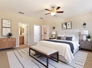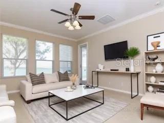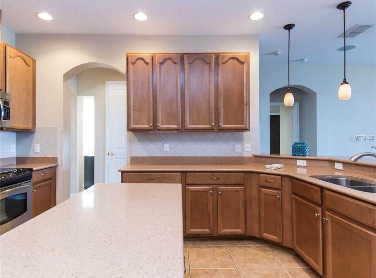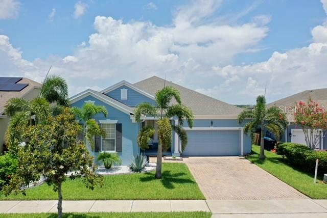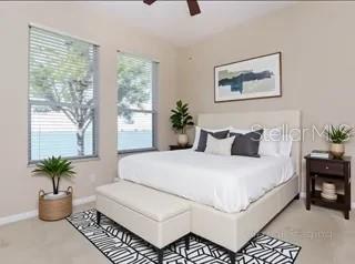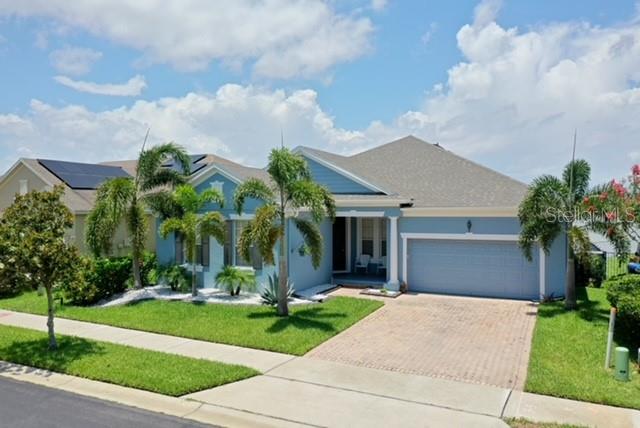 One or more photo(s) has been virtually staged. Welcome to the stunning Kipling Model, a beautifully designed one-story home nestled in a private, waterfront, gated community that offers both serenity and security. This spacious 5-bedroom, 4-bathroom residence is the perfect blend of luxury and comfort, ideal for families or those who love to entertain. Step outside and be captivated by your own backyard paradise—this home backs directly up to a peaceful lake, complete with a private beach area and a NEW SEAWALL. Enjoy breathtaking sunsets from the expansive screened-in patio, creating the perfect setting for relaxing evenings or lively gatherings. Inside, the open and flexible floor plan includes a generously sized bonus room with bathroom that can be transformed into an in-law suite, media room, or home office to suit your lifestyle. The freshly painted exterior adds crisp curb appeal, ensuring this home looks as inviting as it feels. NEW ROOF, GUTTERS AND AC, Plus New laminate flooring in bedroom by lakeside. Don’t miss the opportunity to own this lakeside gem where comfort, elegance, and outdoor living come together seamlessly. WATERSIDE POINTE IS A GATED COMMUNITY WITH MULTI-MILLION DOLLAR AMENITIES SUCH AS: CLUB HOUSE, FITNESS CENTER, PLAYGROUNDS, RESORT STYLE POOL, TENNIS COURT, BASKETBALL COURT AND A HUGE FIELD FOR SOCCER OR EVEN WEDDINGS, NOT TO MENTION THE 3.2 MILES AROUND OUR GORGEOUS LAKE AND COMMUNITY TO RIDE YOUR BIKE, TAKE A GOLF CART RIDE, RUN, OR EVEN WALK. DON'T MISS OUT ON LIVING IN THIS FABULOUS COMMUNITY AND THIS FABULOUS HOME.