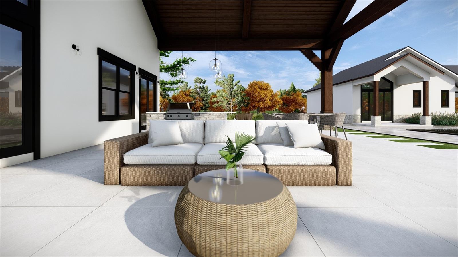 Under Construction. Welcome to a truly exceptional property that combines comfort, space, and flexibility in a well-designed single-story layout—perfect for multi-generational living. The main home features an oversized four-car garage, a private gym, a spacious media room, and a separate game room—providing dedicated areas for both relaxation and entertainment. The kitchen is a true centerpiece, offering two large islands, a walk-in custom pantry, and tall specialty windows that fill the space with natural light. Just off the kitchen, the breakfast nook is surrounded by windows, creating a sunny spot perfect for enjoying mornings with family. Outdoor living is just as impressive, with an oversized lanai at the main house that offers plenty of room to add a full outdoor kitchen—ideal for entertaining guests or enjoying weekend cookouts. The separate guest house includes a private one-bedroom suite with a full bathroom, plus a half bath that also functions as a convenient pool bath. Attached to the guest home is a large covered lanai, offering the perfect space to install a hibachi grill, pizza oven, or any custom setup for hosting family/friends. Set on 10 beautiful acres, this estate offers peaceful pasture views and plenty of room to enjoy farming, gardening, or simply the quiet of open land. Despite its tranquil setting, you’re conveniently located less than 20 minutes from downtown Clermont and under 15 minutes from local grocery stores, gas stations, and a variety of restaurants. Estimated completion date of home is September 2025