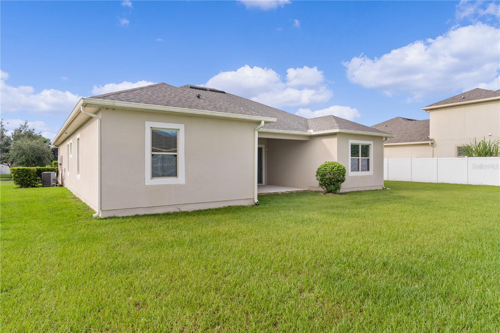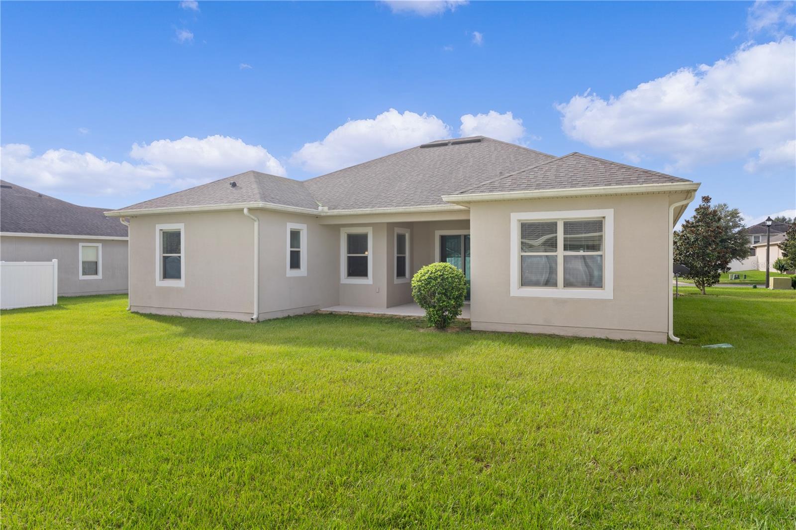 One of the largest, flattest backyards in the neighborhood - low HOA, no CDD, and room to add the pool and outdoor space buyers actually want. Set on a .27-acre oversized lot, this 4-bedroom, 3-bath home offers something most nearby homes can’t: real, usable backyard space. The lot is wide, level, and already enclosed on all sides by neighboring fencing, requiring only side gates and a few corner boards to be fully fenced - ideal for a pool, pets, play areas, or a future outdoor living setup. Inside, the layout is practical and flexible, with a split-bedroom floor plan that works for families, guests, or home office needs. The kitchen anchors the living space with granite countertops, a large island, ample cabinetry, and stainless steel appliances, making it functional for everyday use and easy entertaining. Additional highlights include a tankless water heater, covered front and rear porches, and a low annual HOA with no CDD, keeping long-term ownership costs down compared to many newer communities nearby.